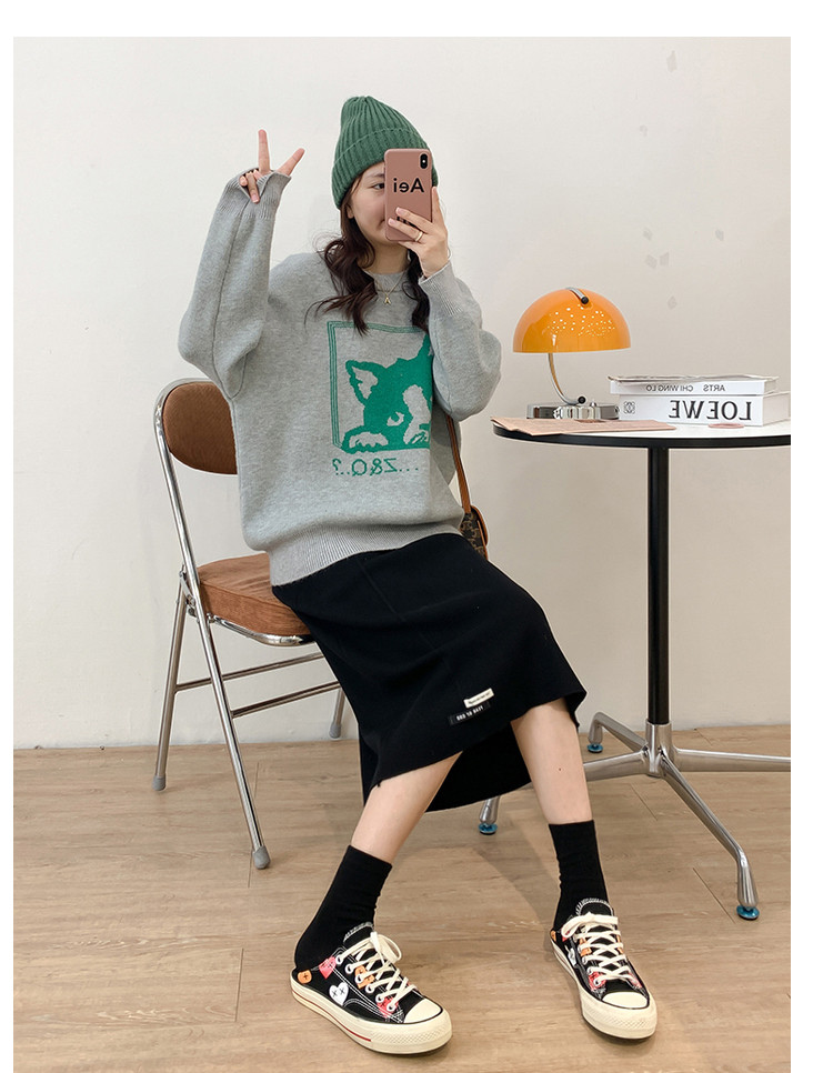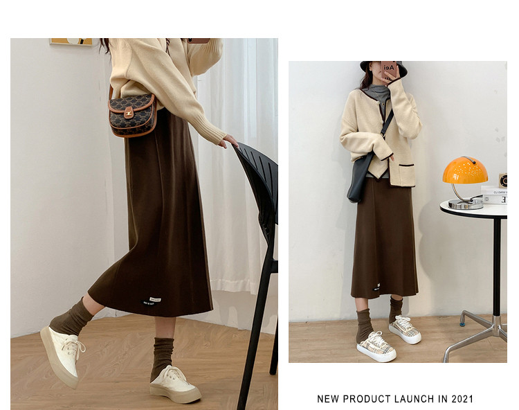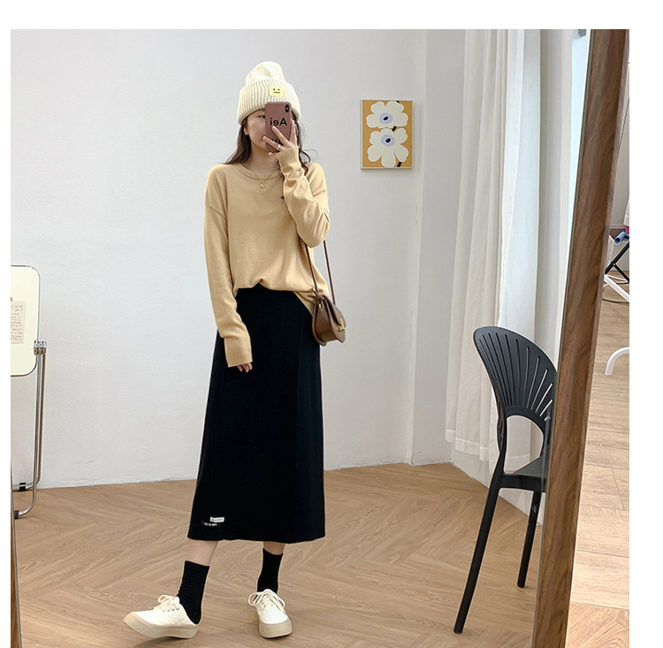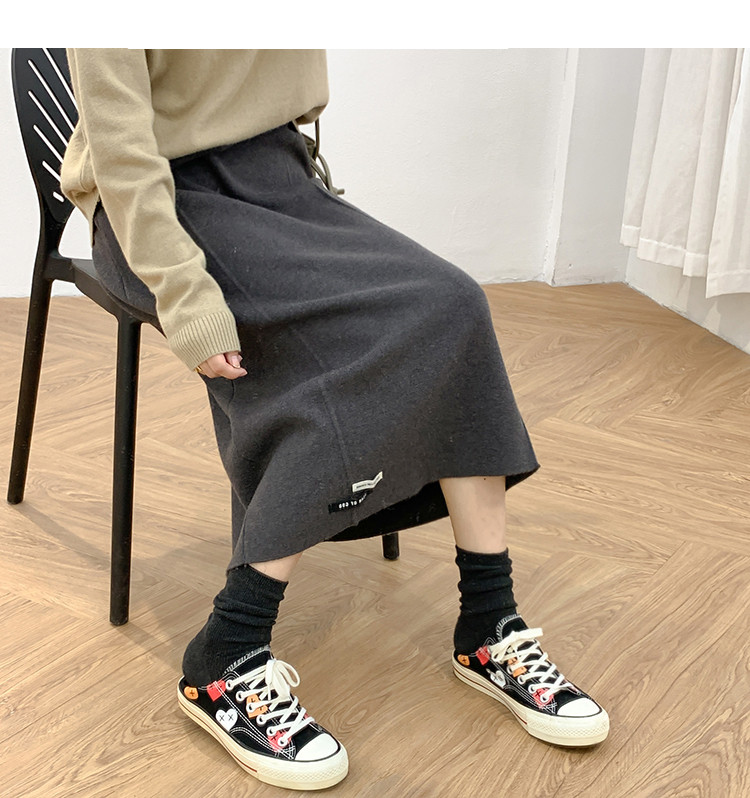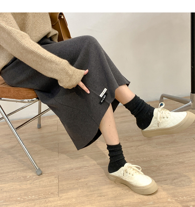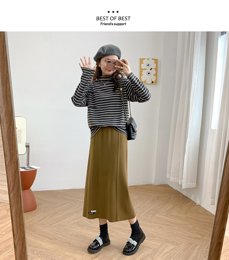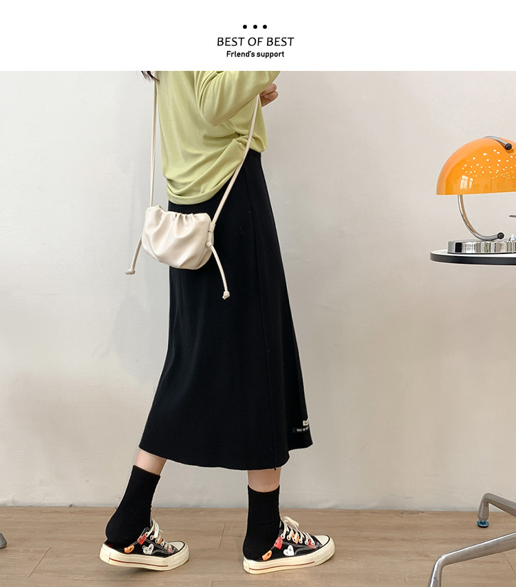 Осенняя приталенная длинная трикотажная юбка, подходит для подростков, свободный прямой крой, высокая талия, средней длины, большой размер