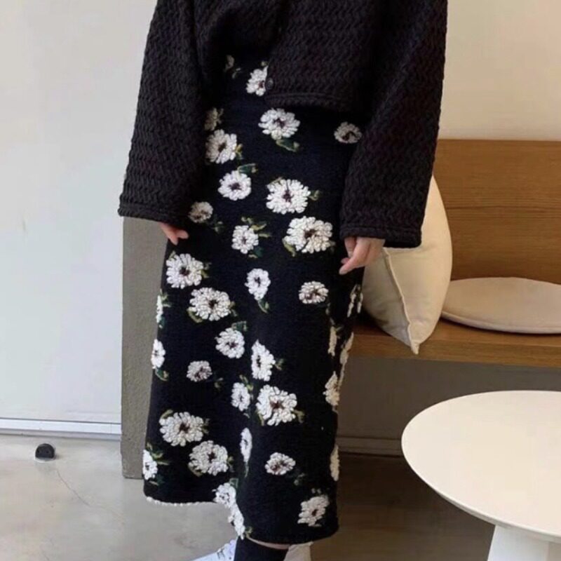 Брендовая демисезонная ретро трехмерная шерстяная длинная юбка, в западном стиле, в цветочек, увеличенная толщина, с акцентом на бедрах, длина миди