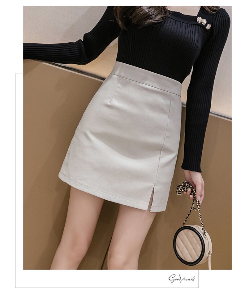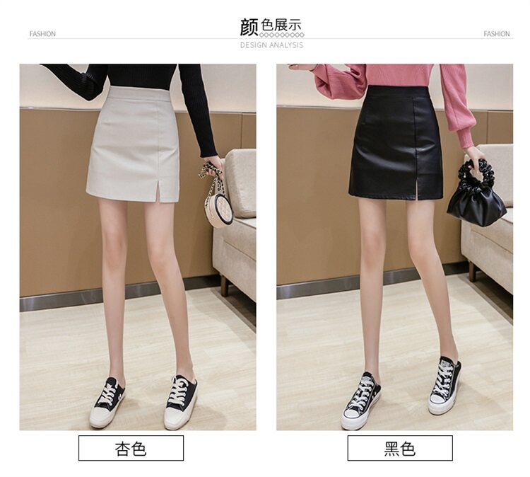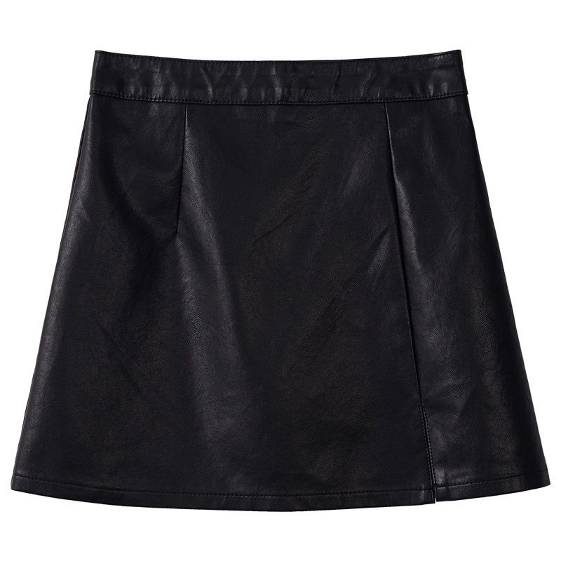 Юбка, осенняя полиуретановая мини-юбка, подходит для подростков, высокая талия, А-силуэт