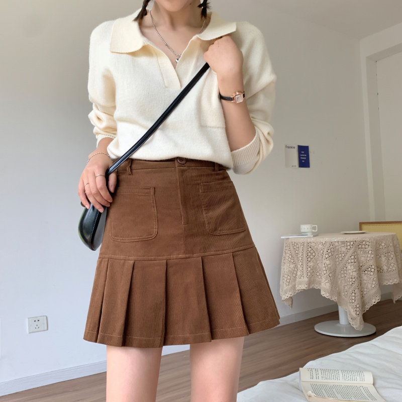 Бархатная вельветовая ретро приталенная юбка в складку, демисезонная мини-юбка, большой размер