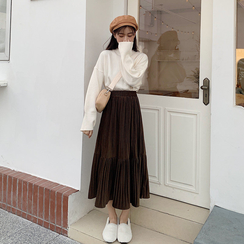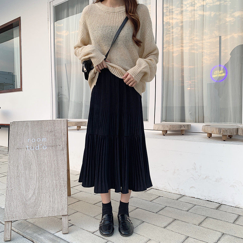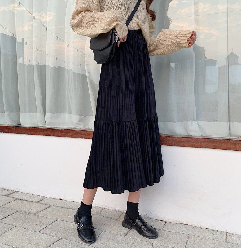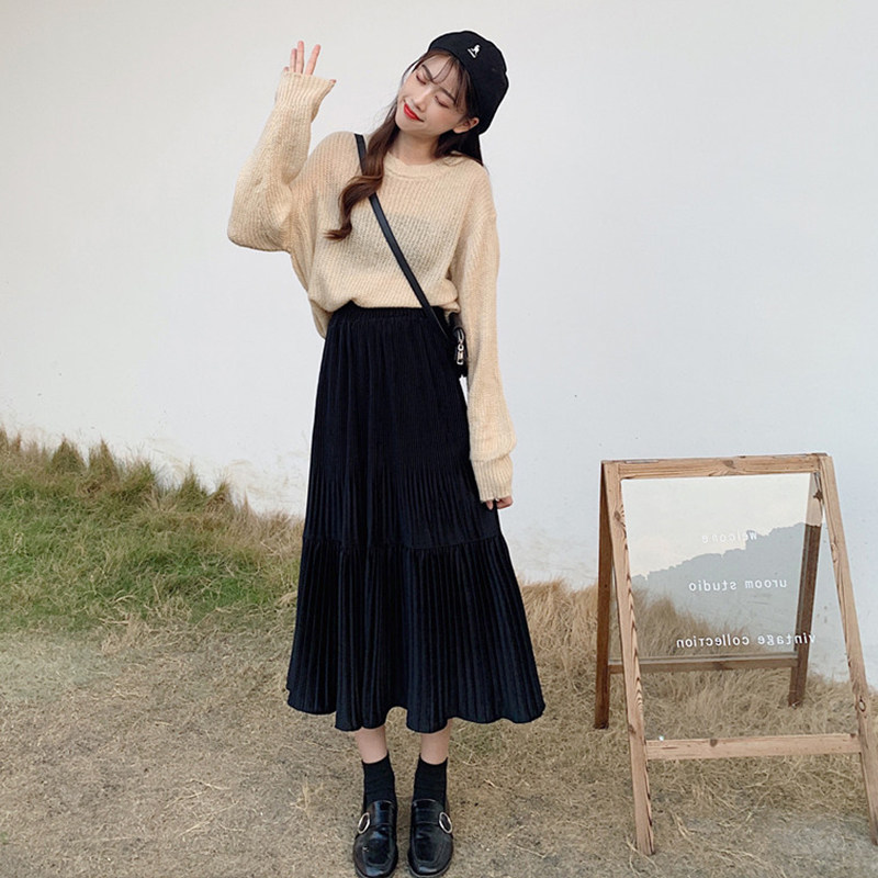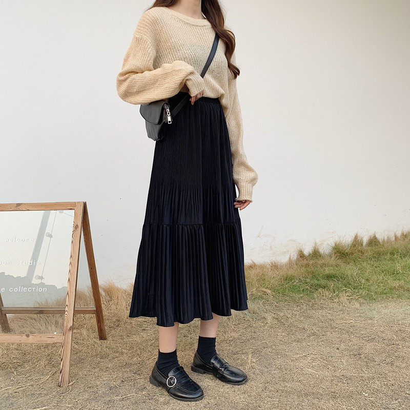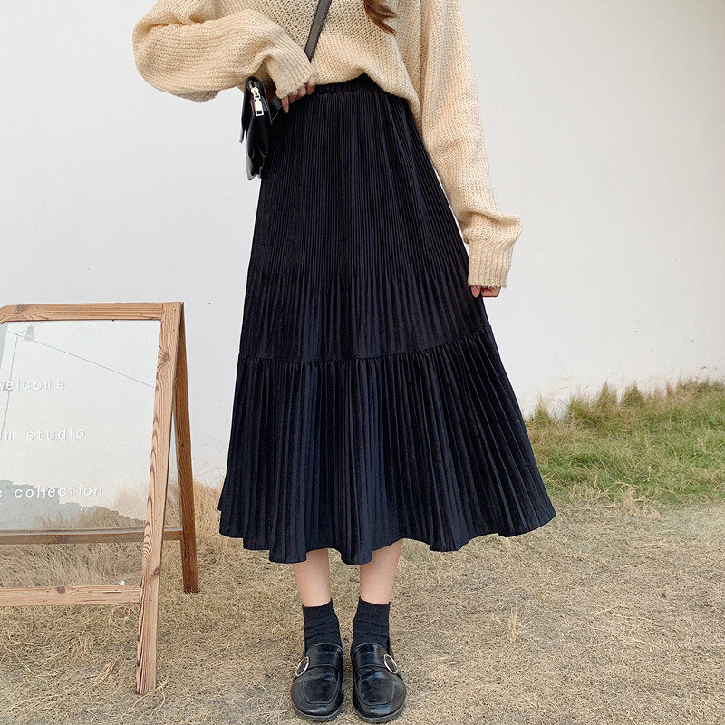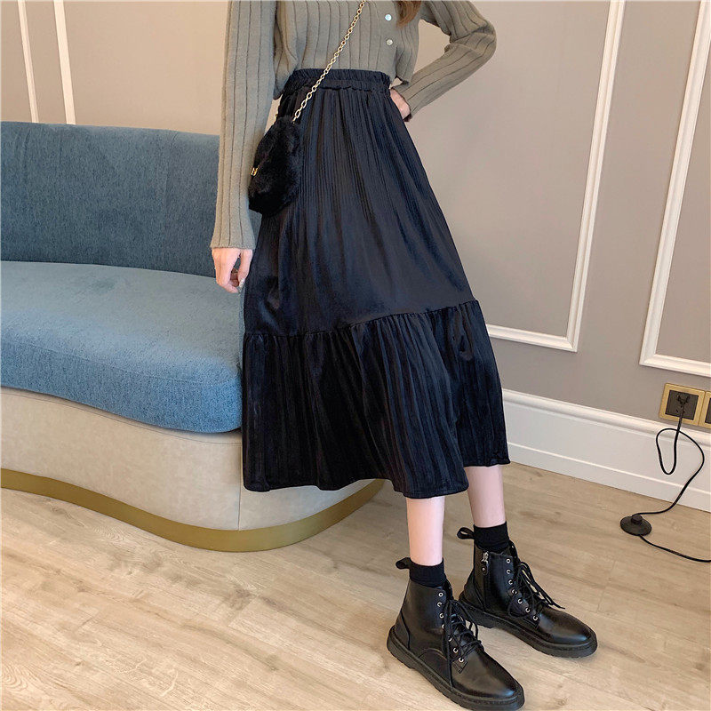 Осенняя длинная черная бархатная весенняя длинная юбка, юбка в складку, высокая талия, А-силуэт, средней длины