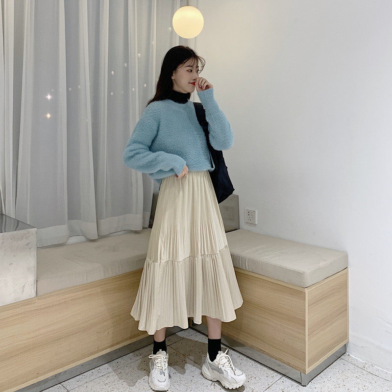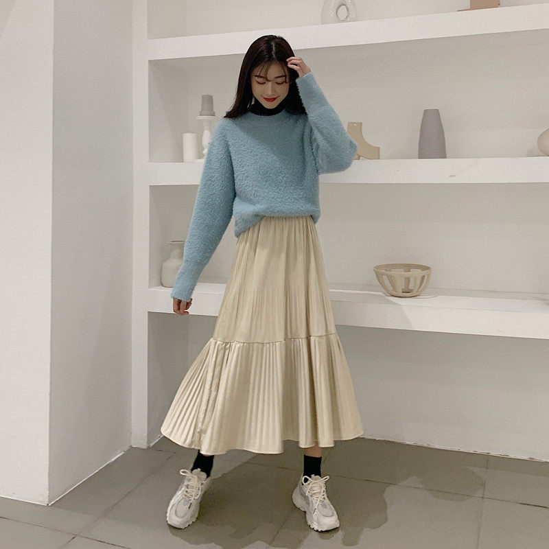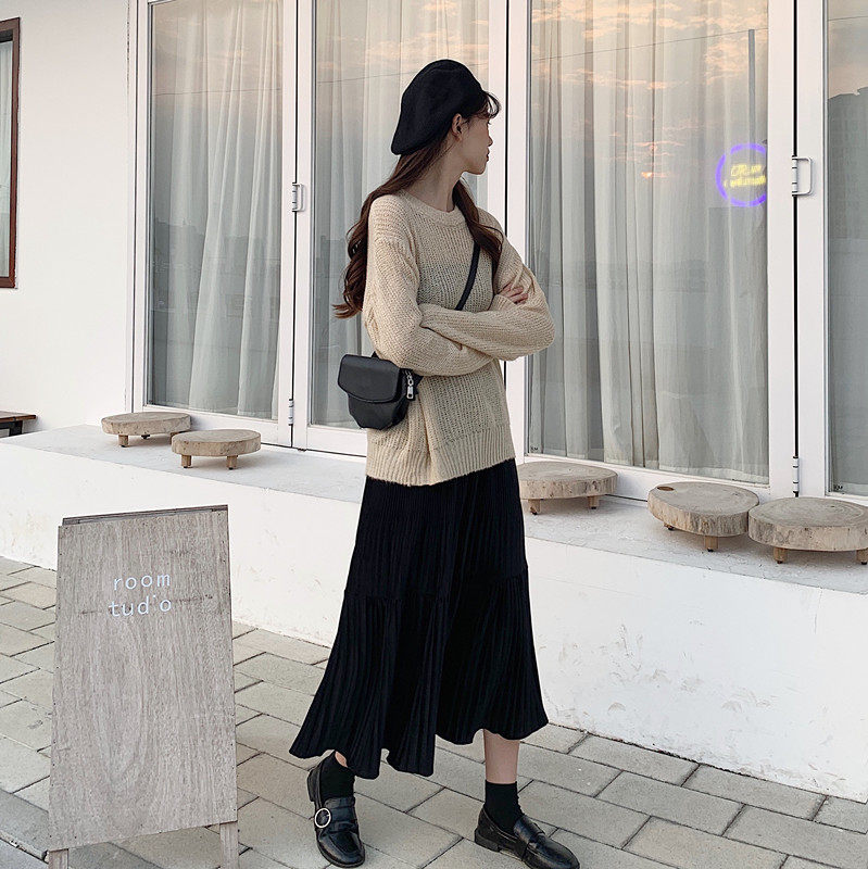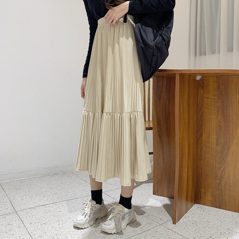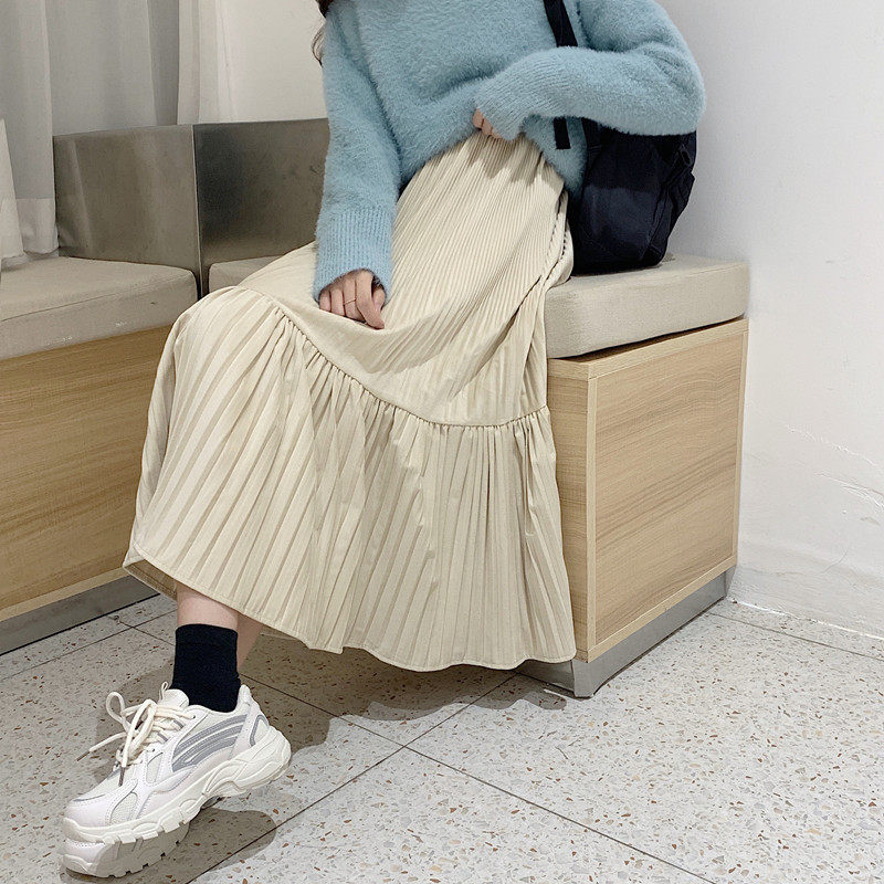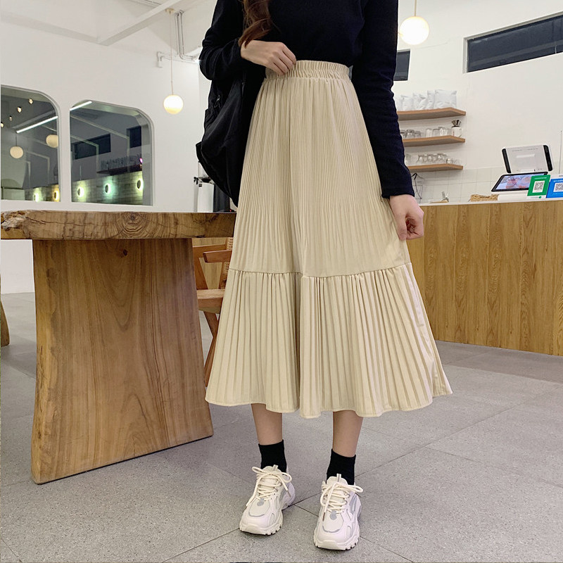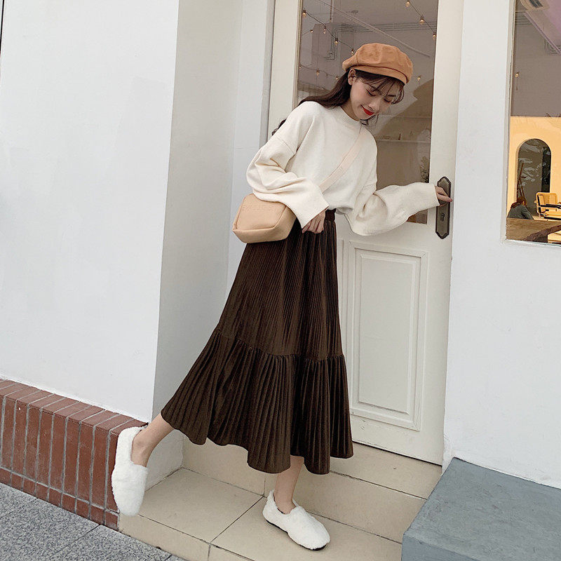 Осенняя длинная черная бархатная весенняя длинная юбка, юбка в складку, высокая талия, А-силуэт, средней длины