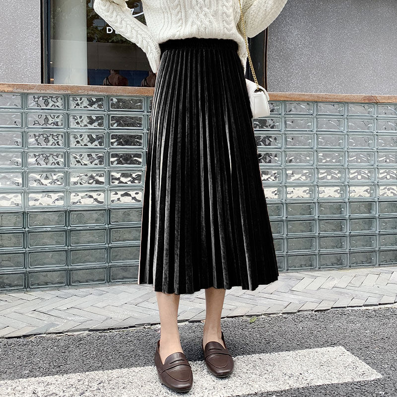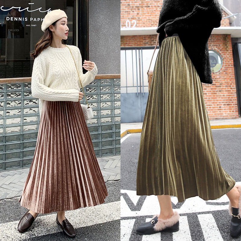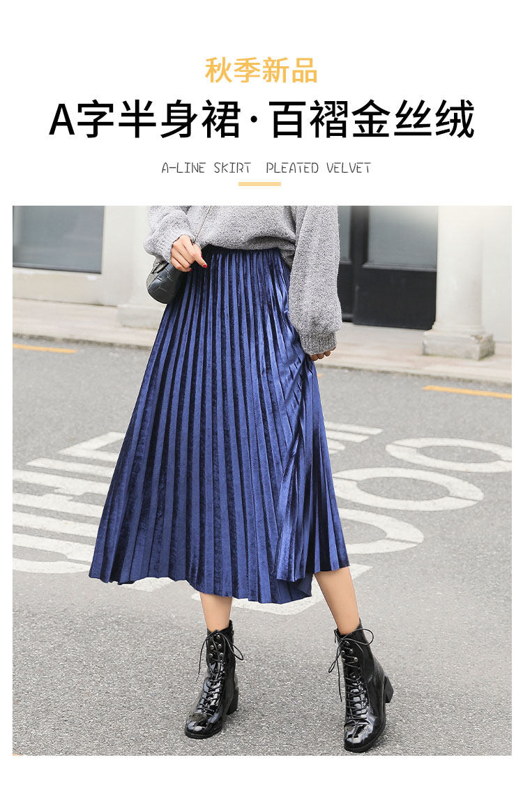 Синяя бархатная демисезонная приталенная длинная юбка, коллекция 2021, высокая талия, А-силуэт, подходит для подростков, длина макси