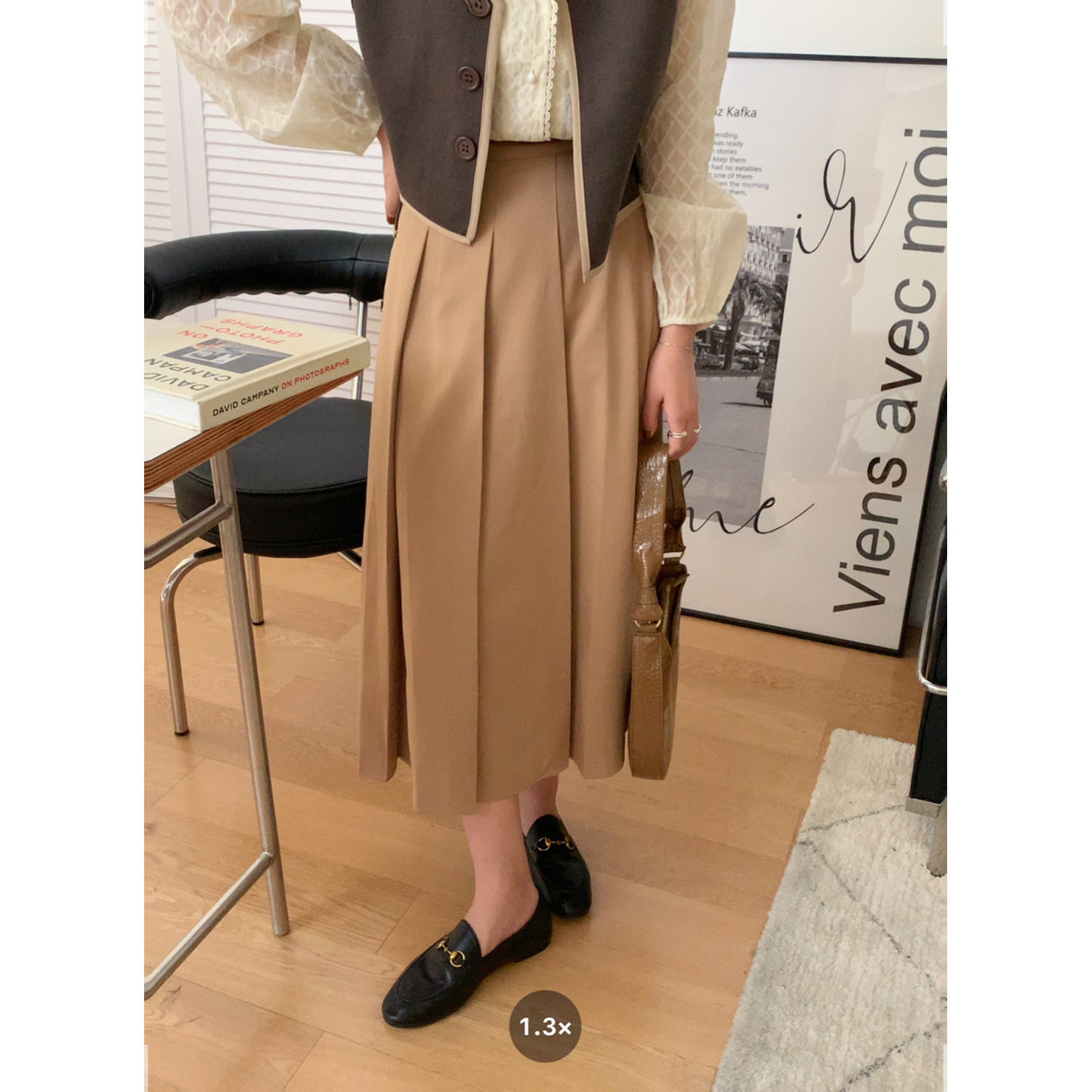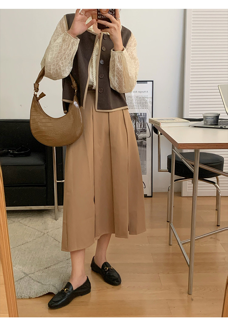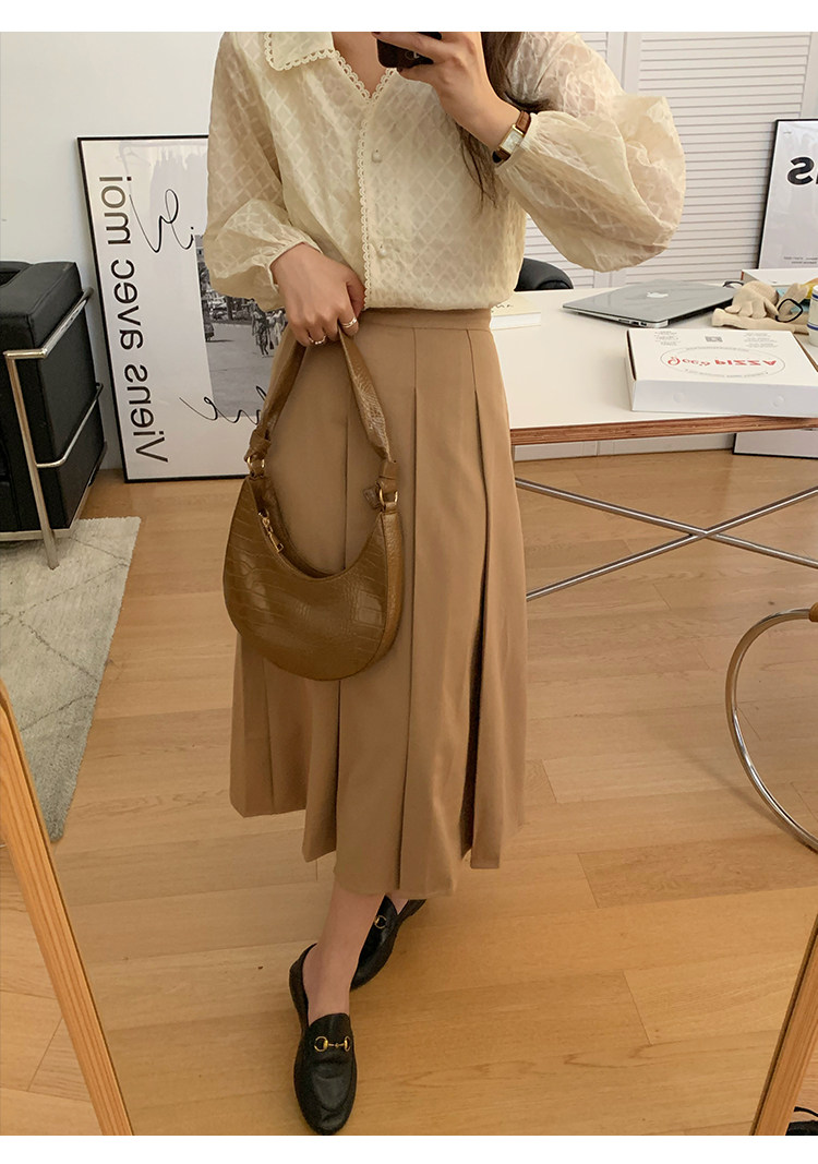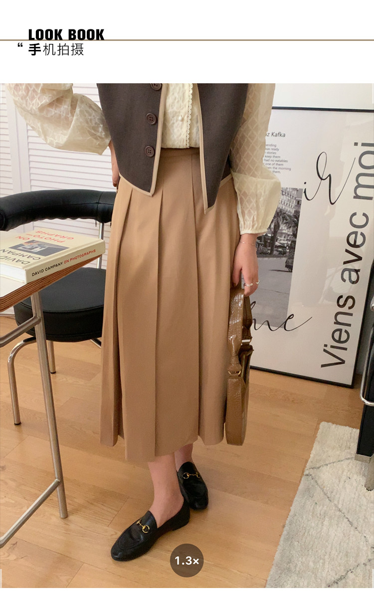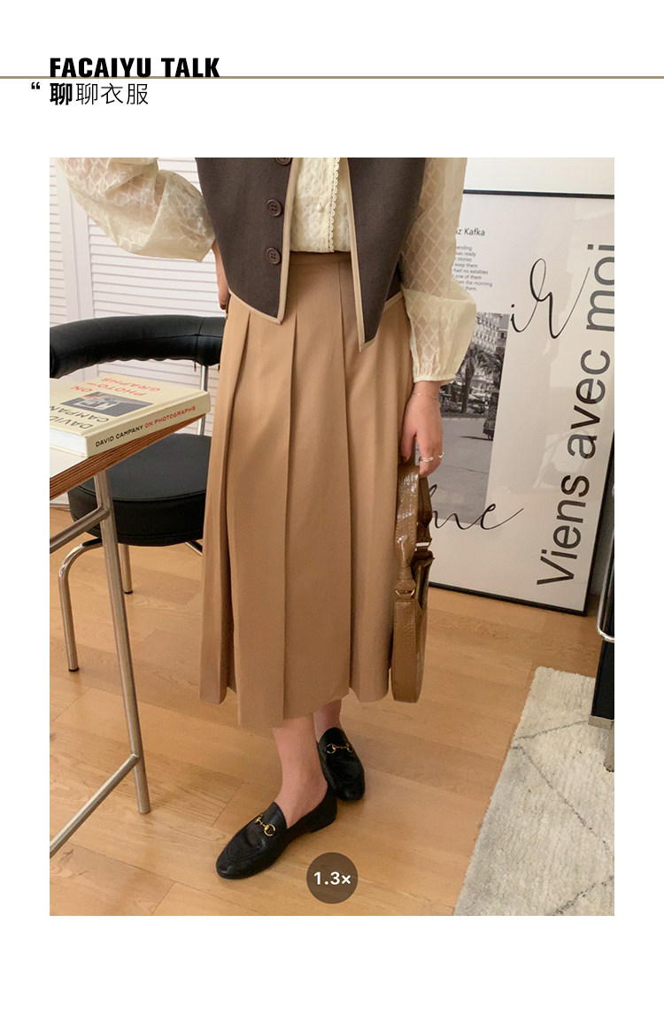 Хаки демисезонная юбка в складку, коллекция 2021, в корейском стиле, высокая талия