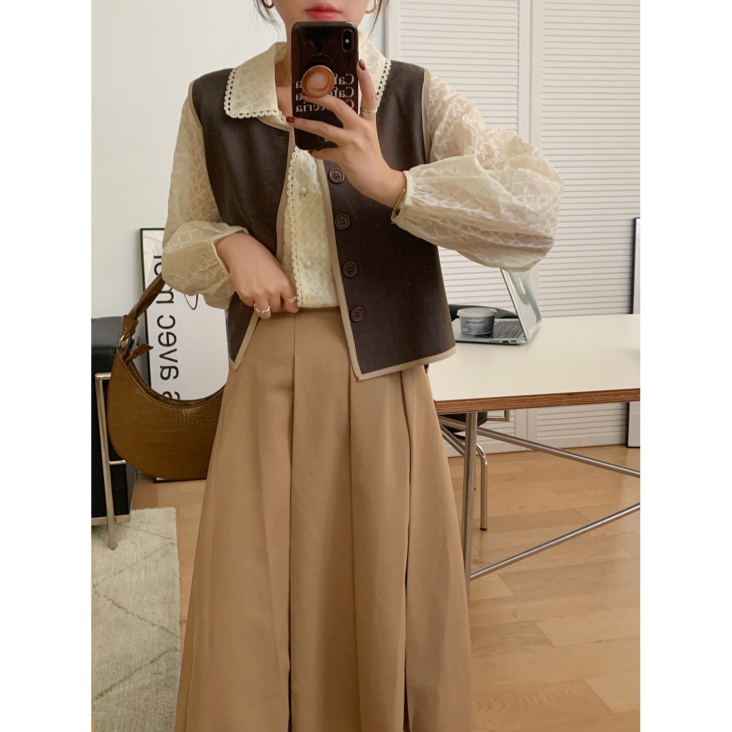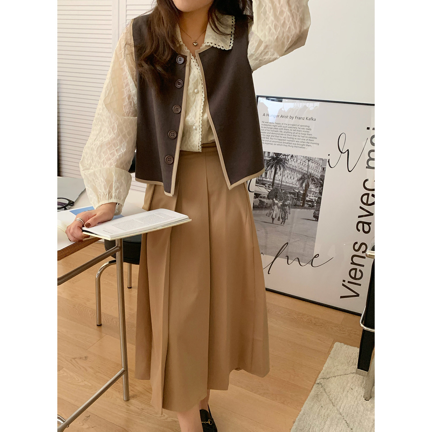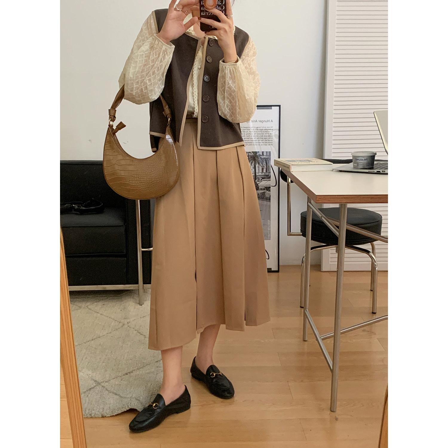Хаки демисезонная юбка в складку, коллекция 2021, в корейском стиле, высокая талия