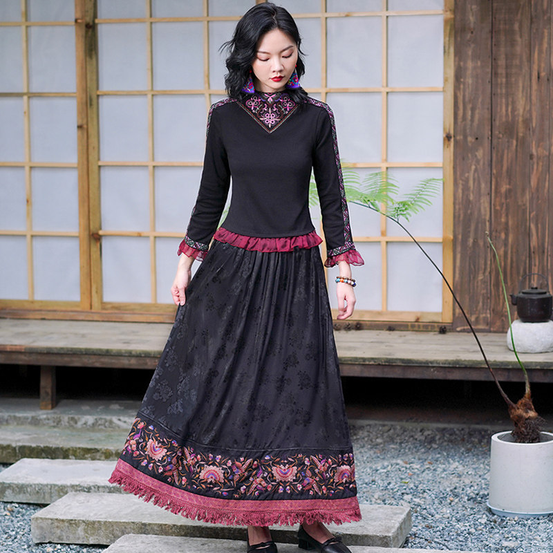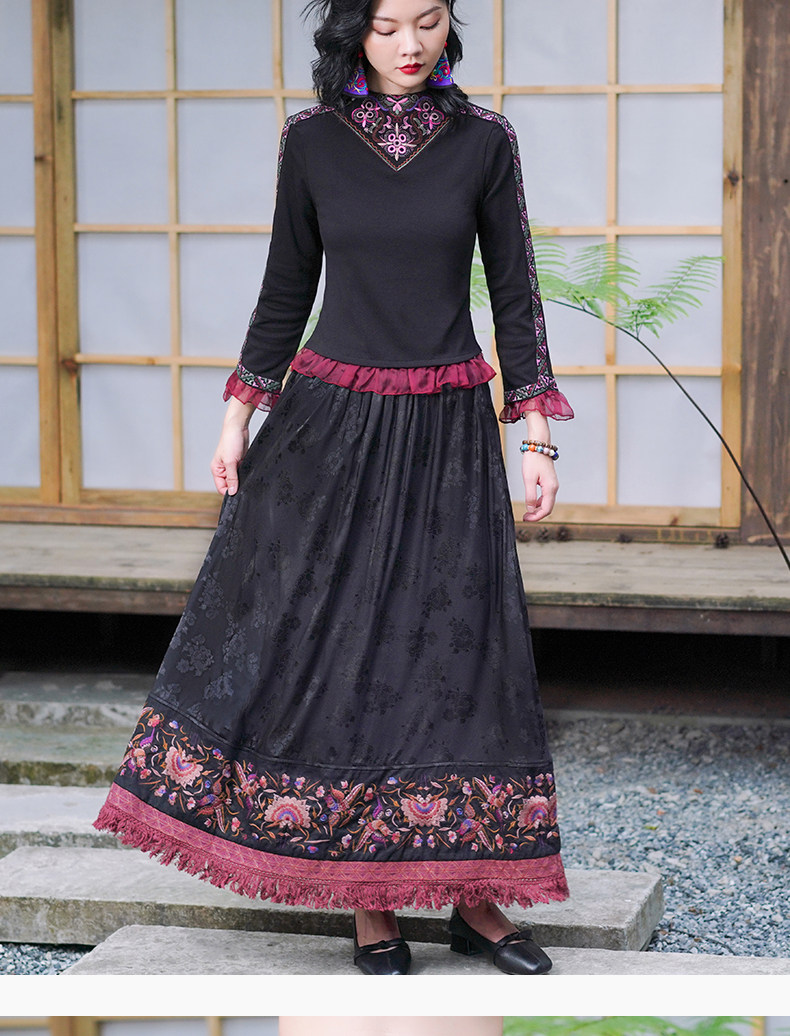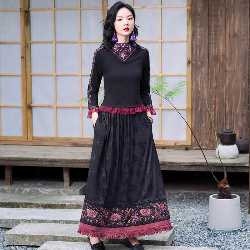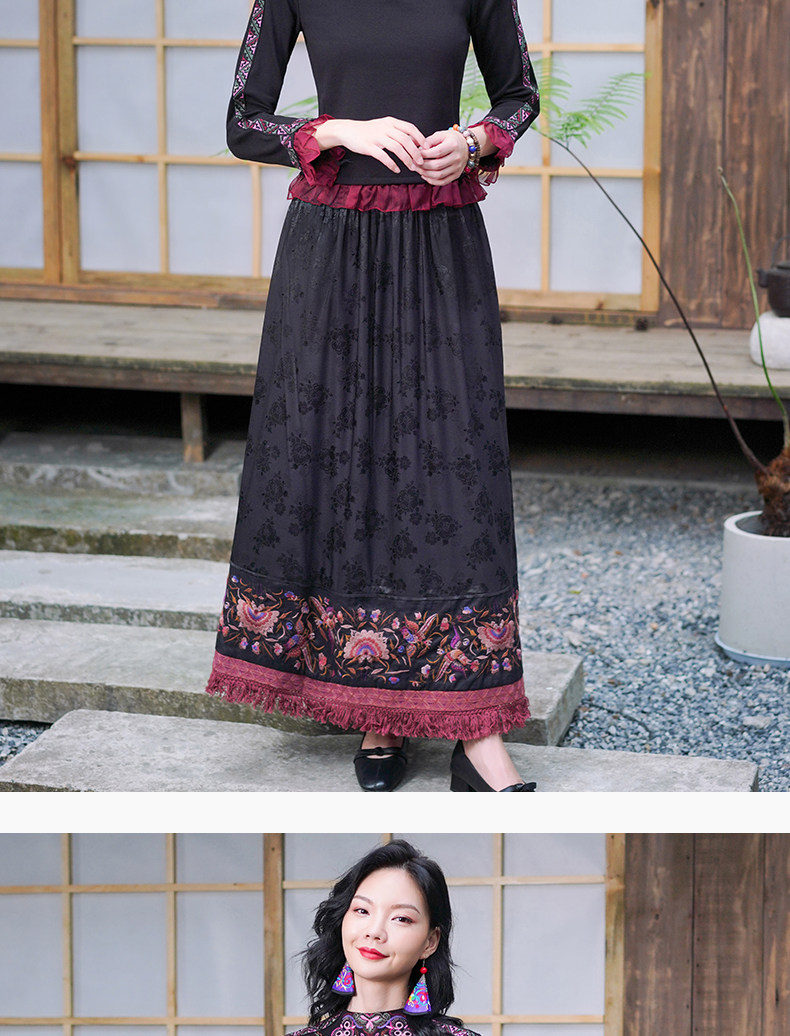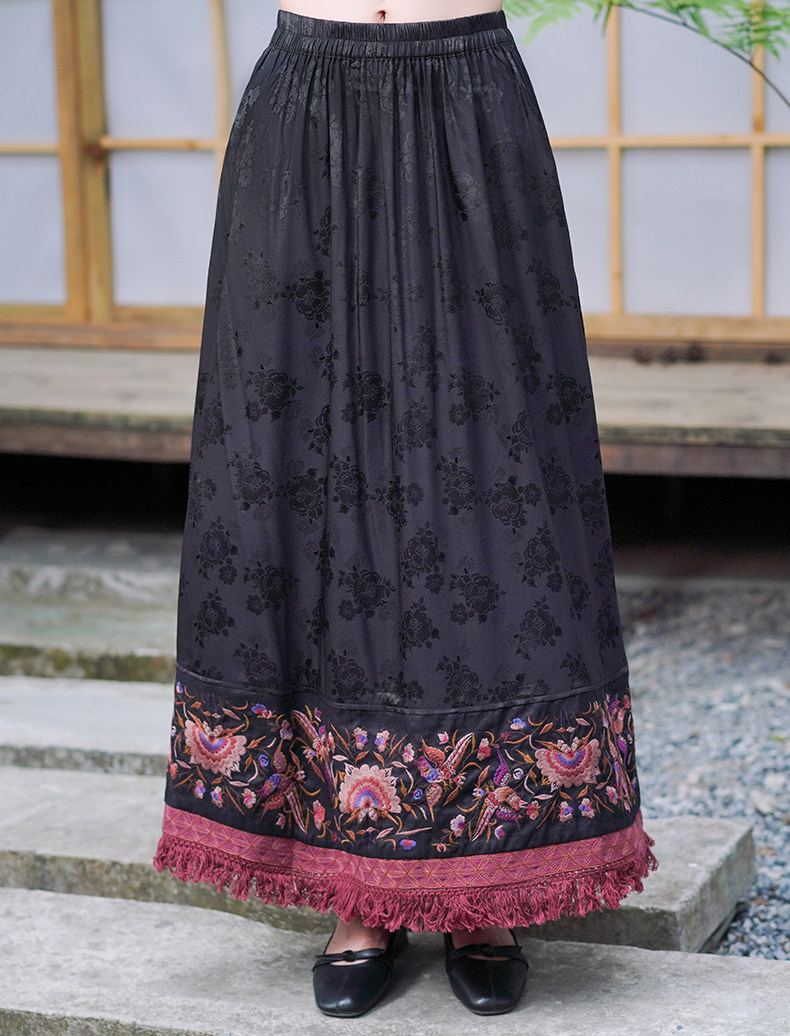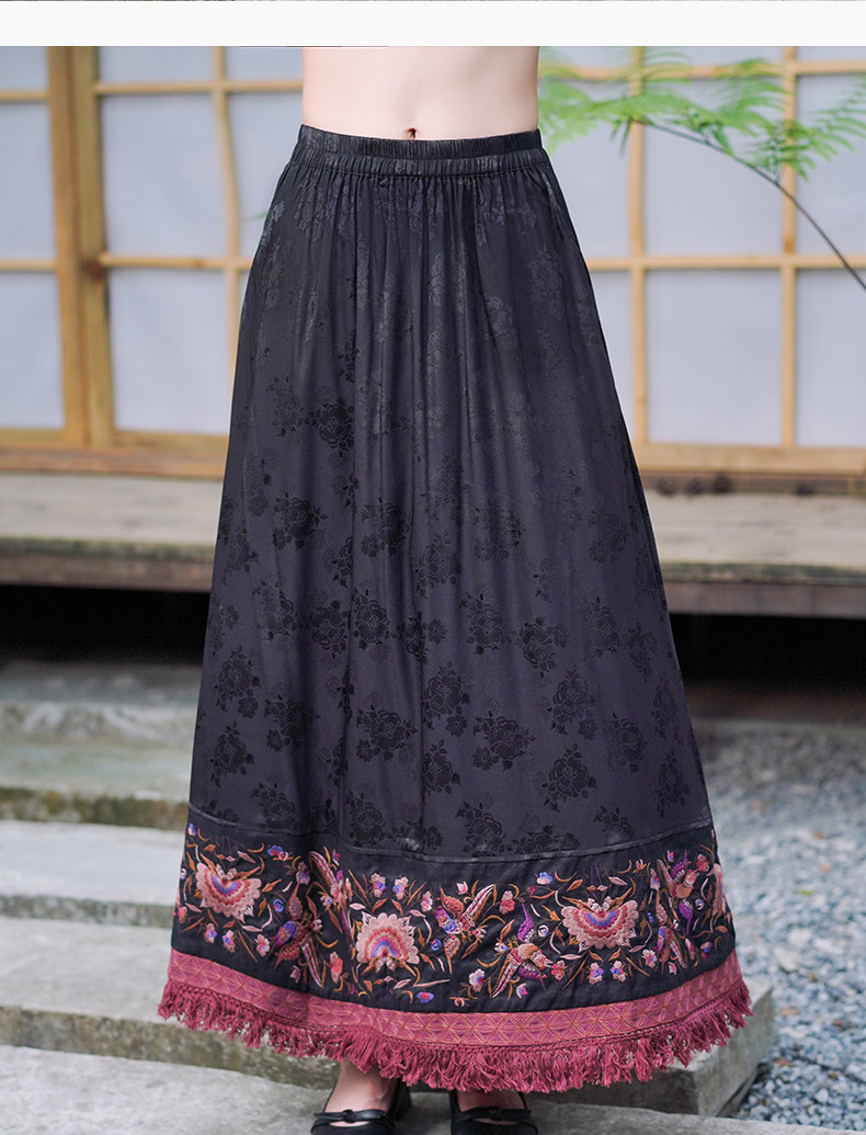 Этническая длинная юбка, этнический стиль, эластичная талия, высокая талия, А-силуэт