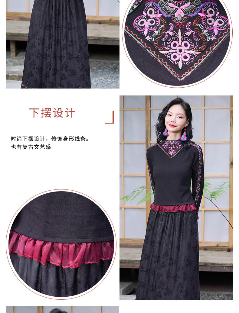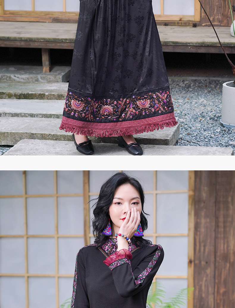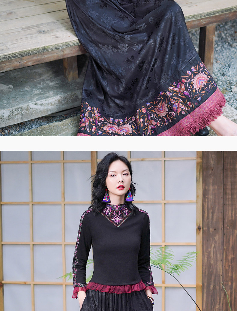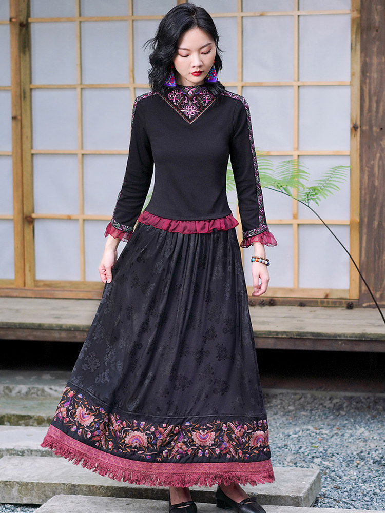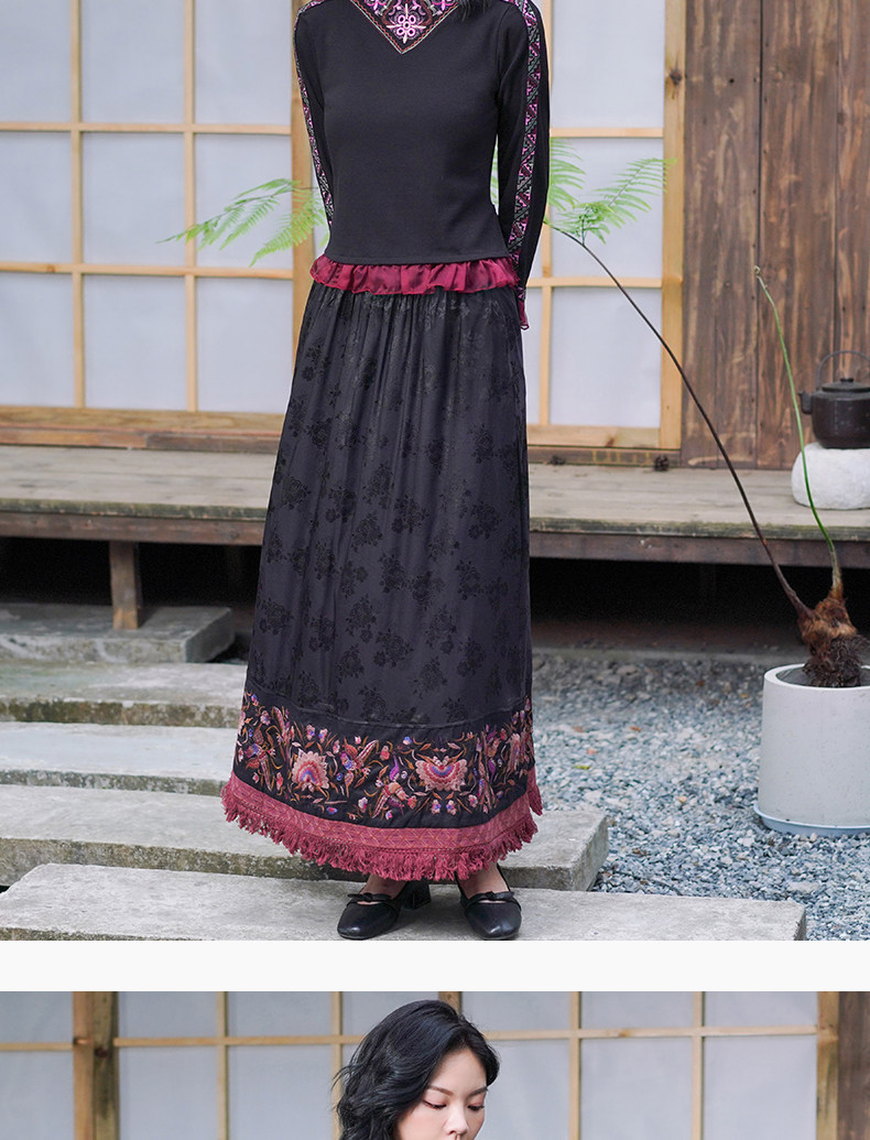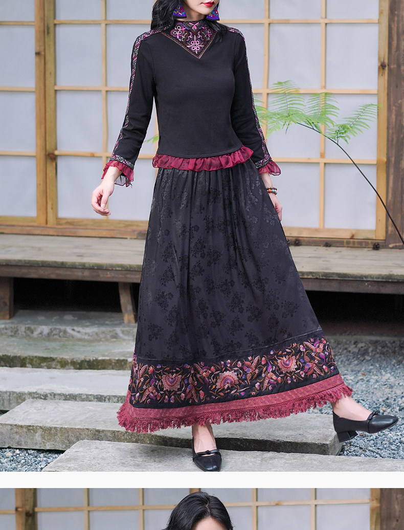 Этническая длинная юбка, этнический стиль, эластичная талия, высокая талия, А-силуэт