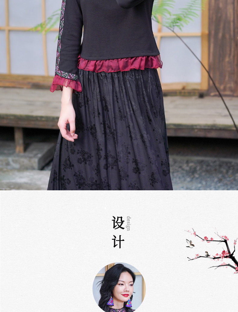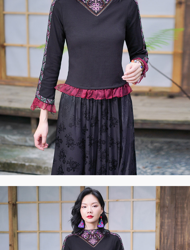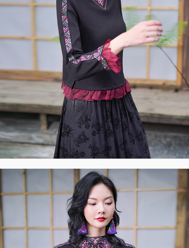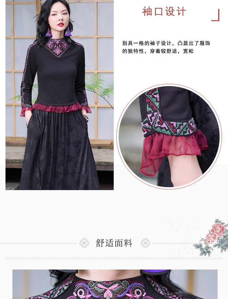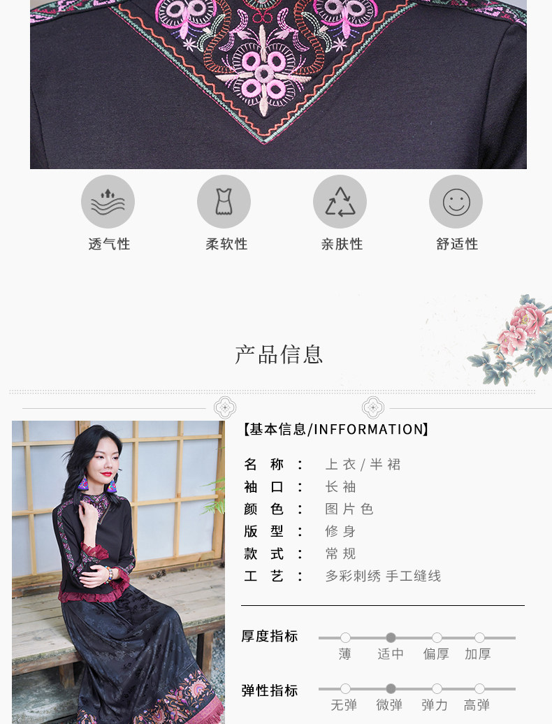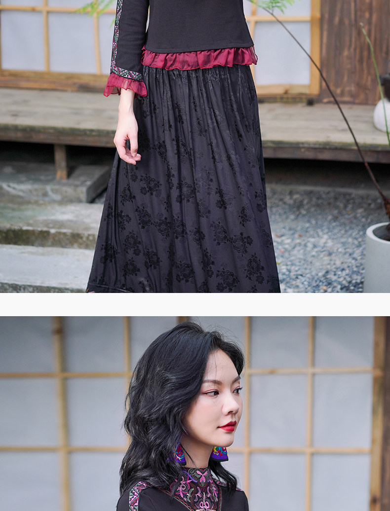 Этническая длинная юбка, этнический стиль, эластичная талия, высокая талия, А-силуэт