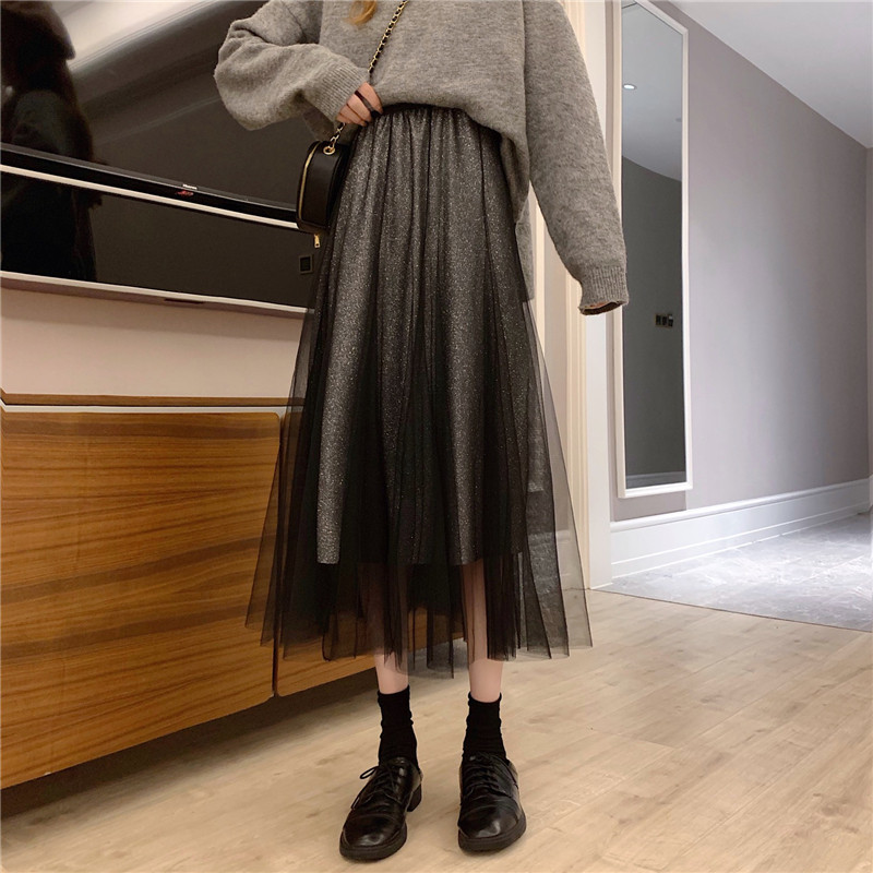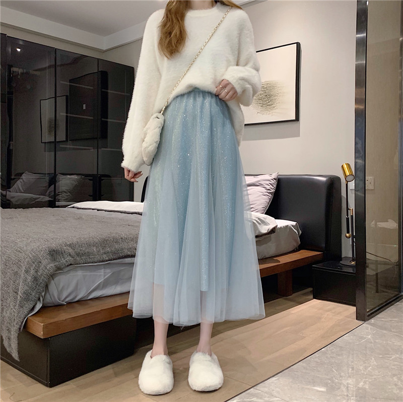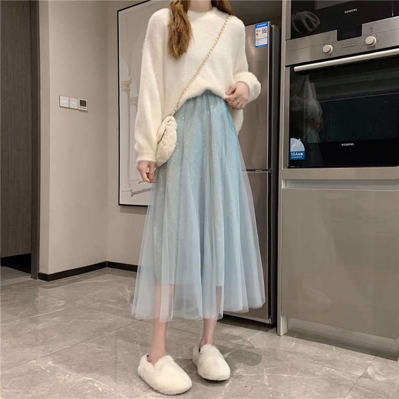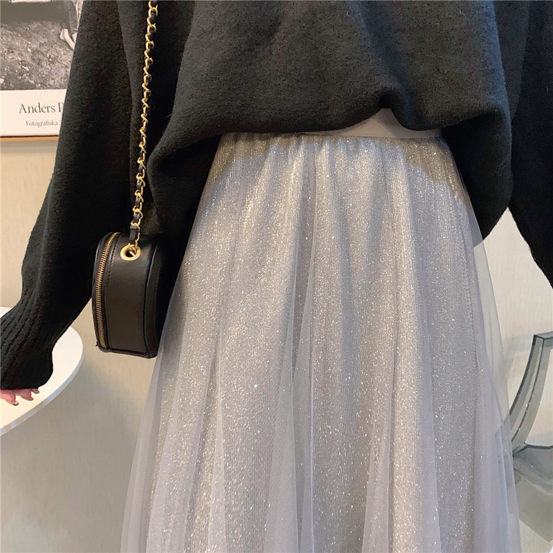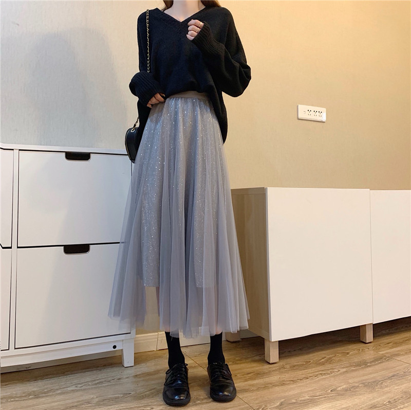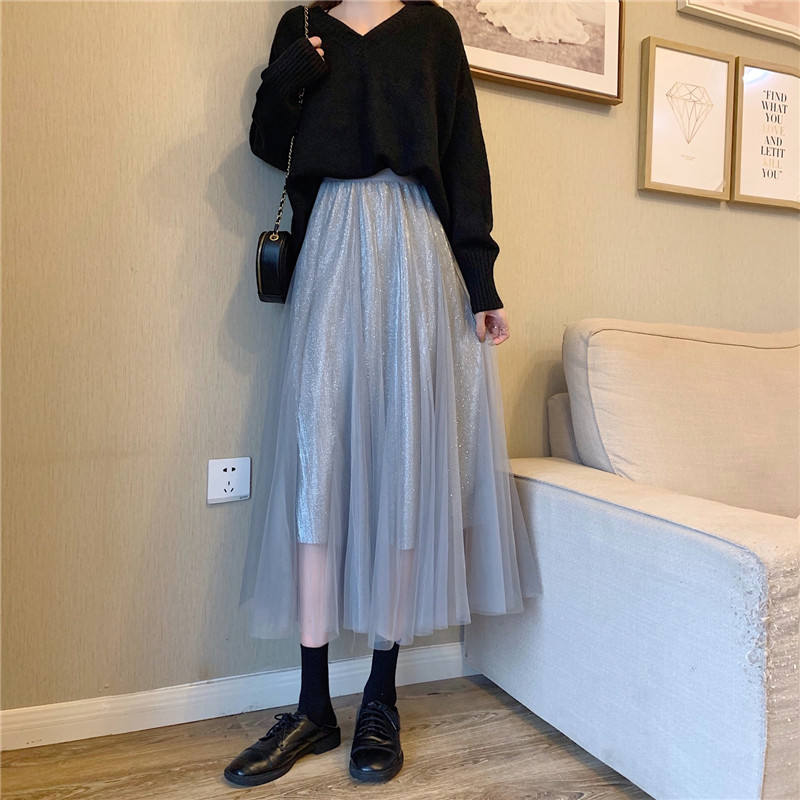 Шерстяной осенний свитер, длинная юбка в складку, коллекция 2022, средней длины, высокая талия