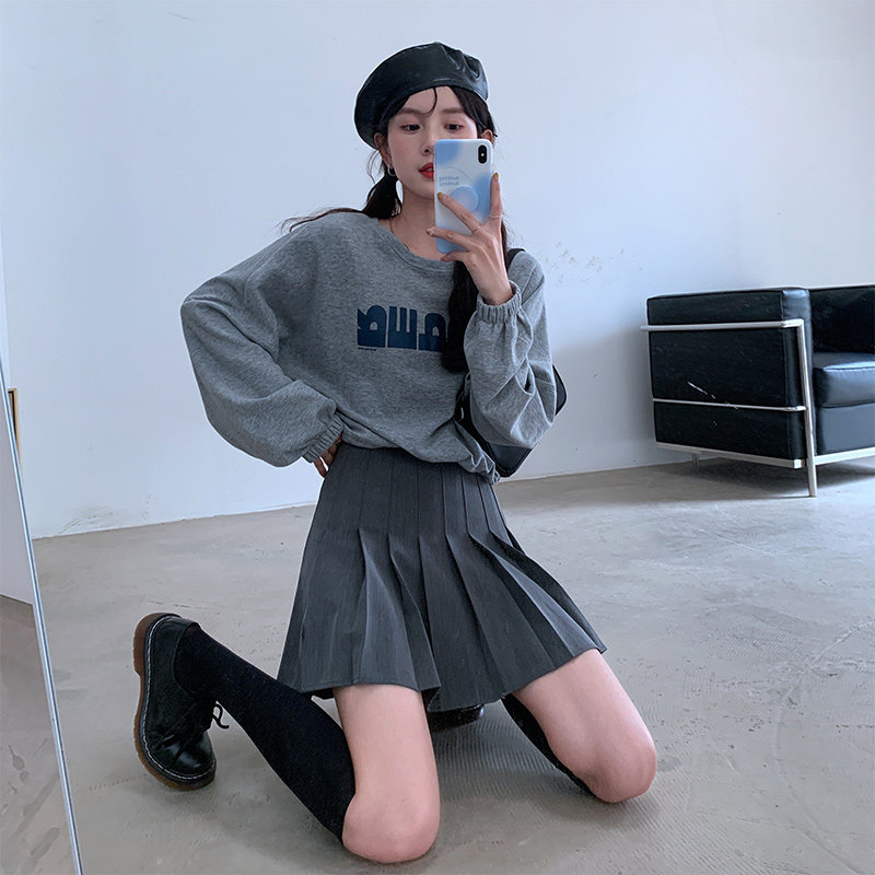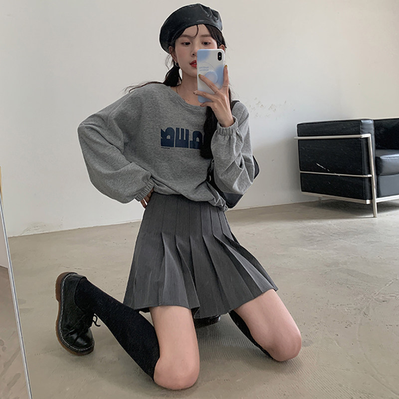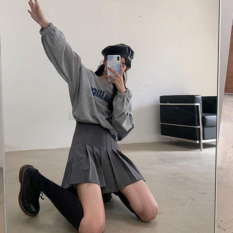 Осенняя юбка в складку, приталенная мини-юбка, костюм, А-силуэт, коллекция 2023, высокая талия, большой размер