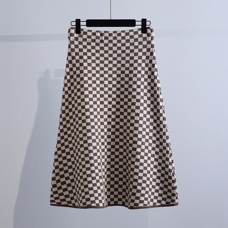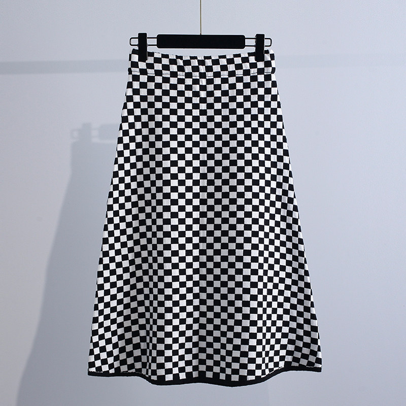 Шахматы, трикотажная демисезонная ретро длинная приталенная юбка, коллекция 2021, А-силуэт