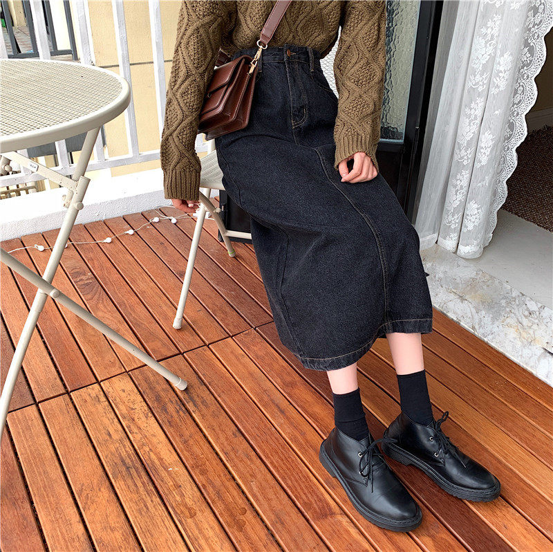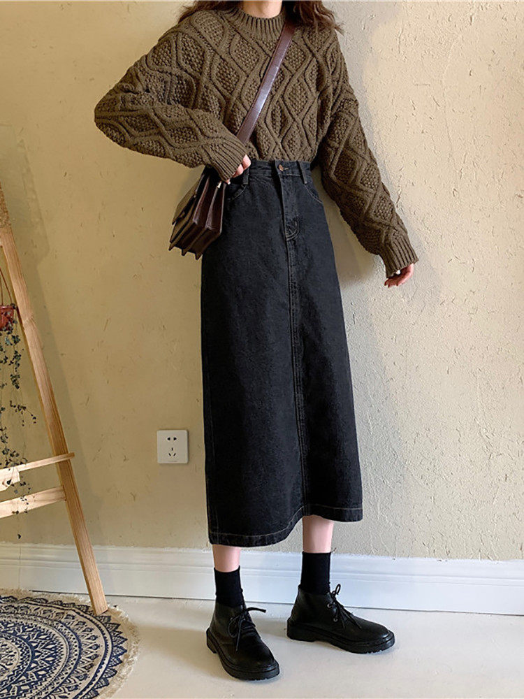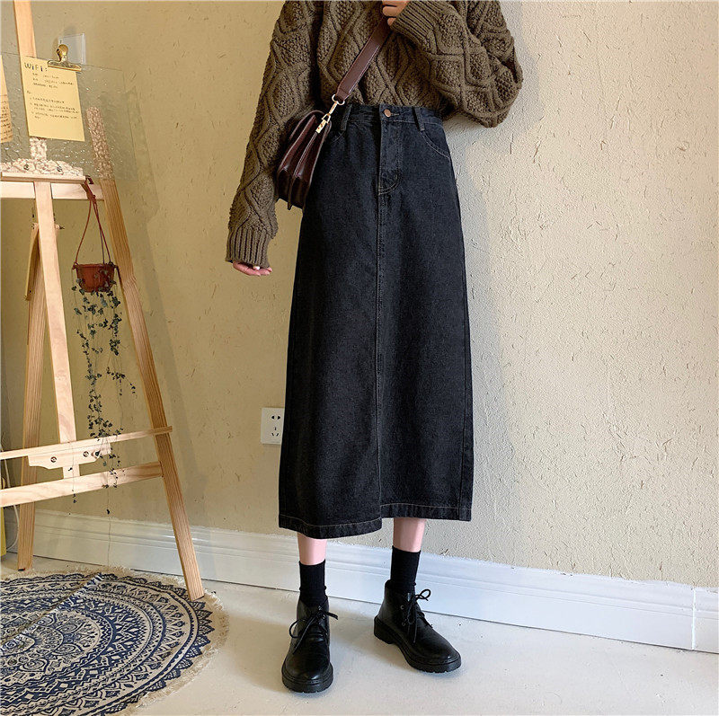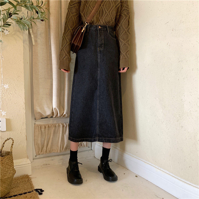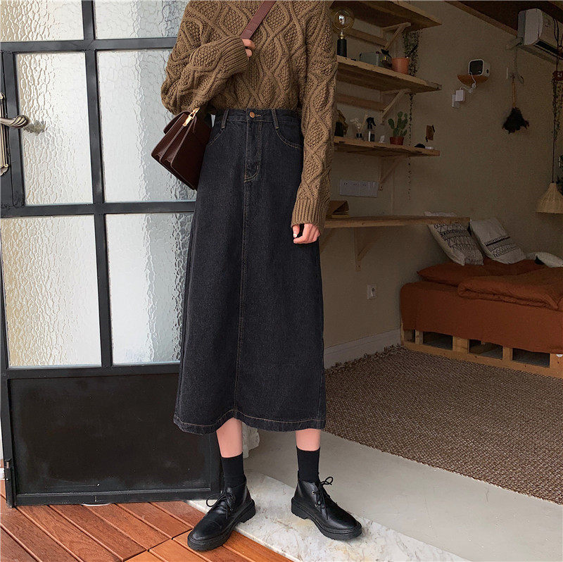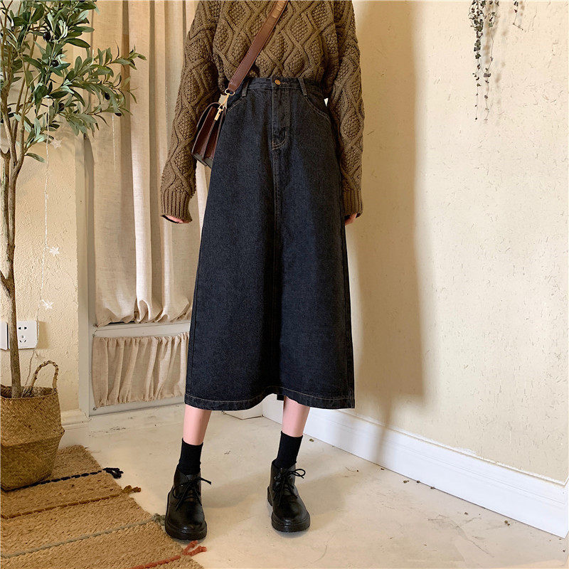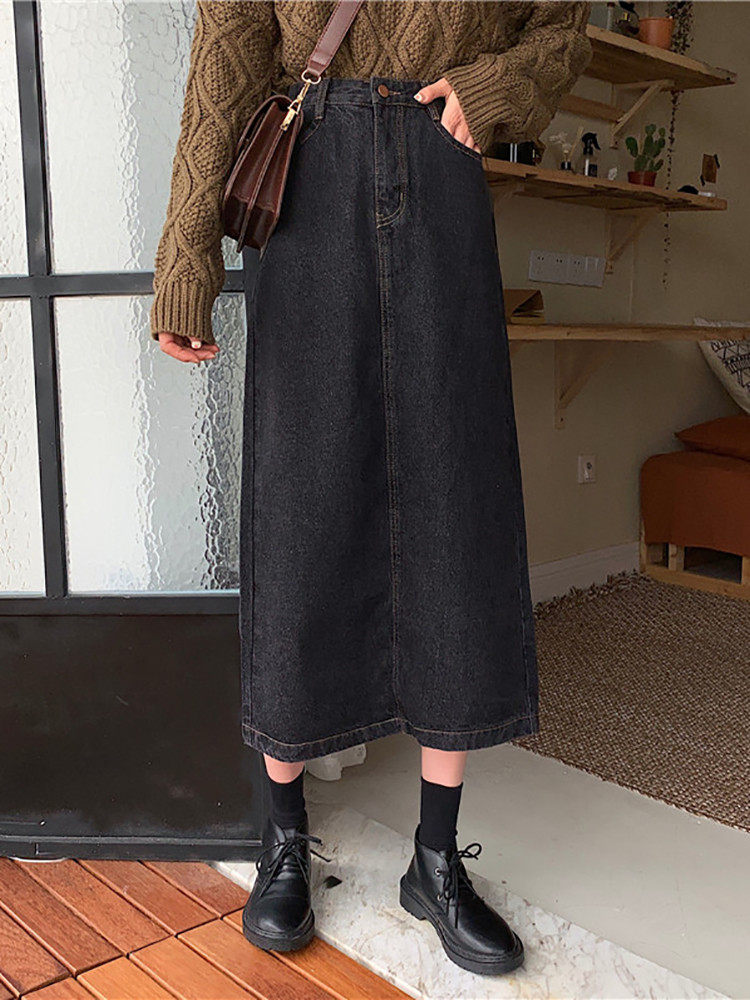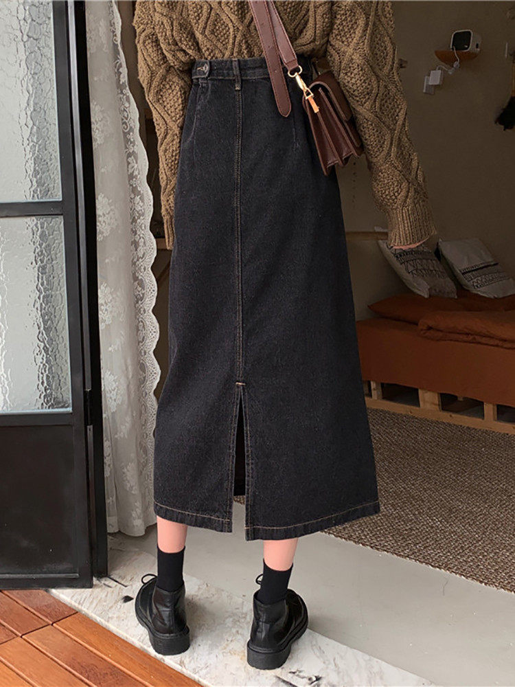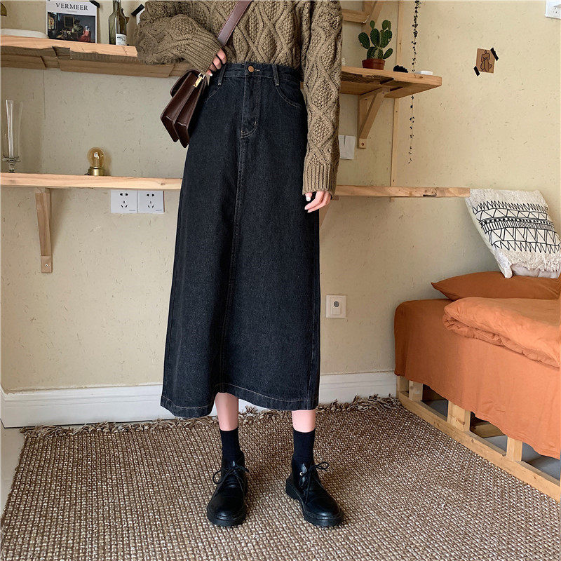 Осенняя длинная приталенная джинсовая юбка, большой размер, средней длины, А-силуэт
