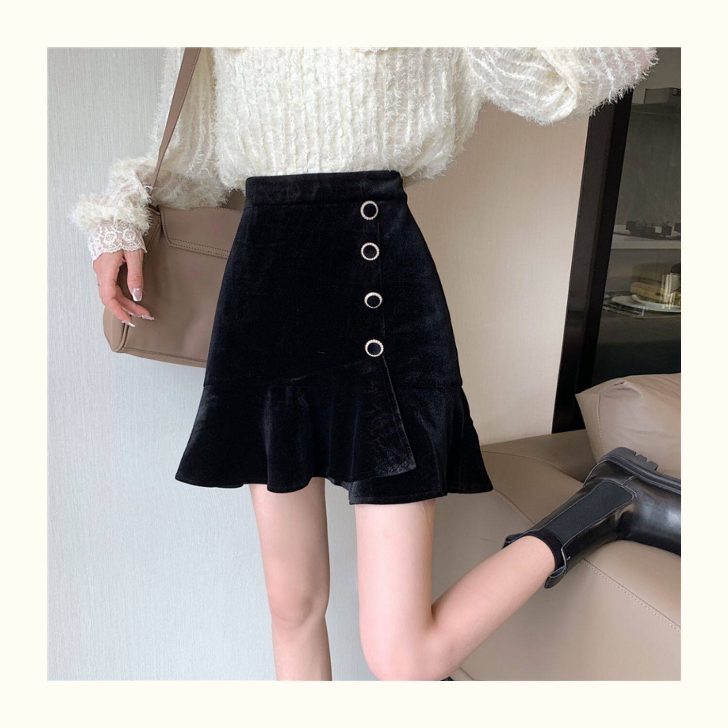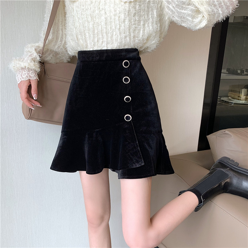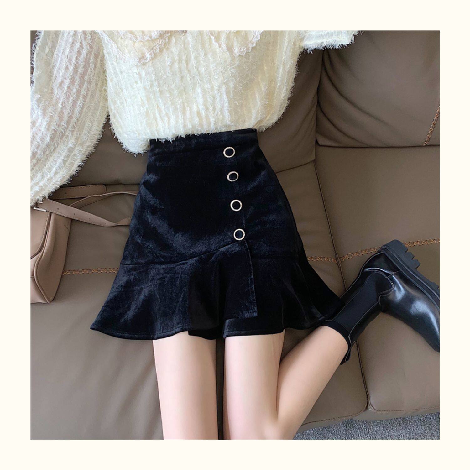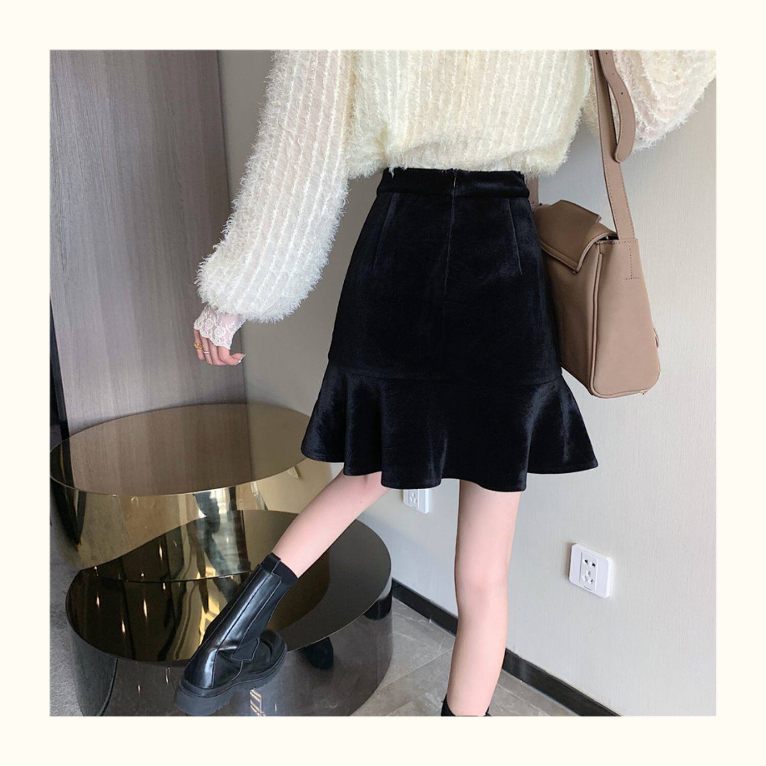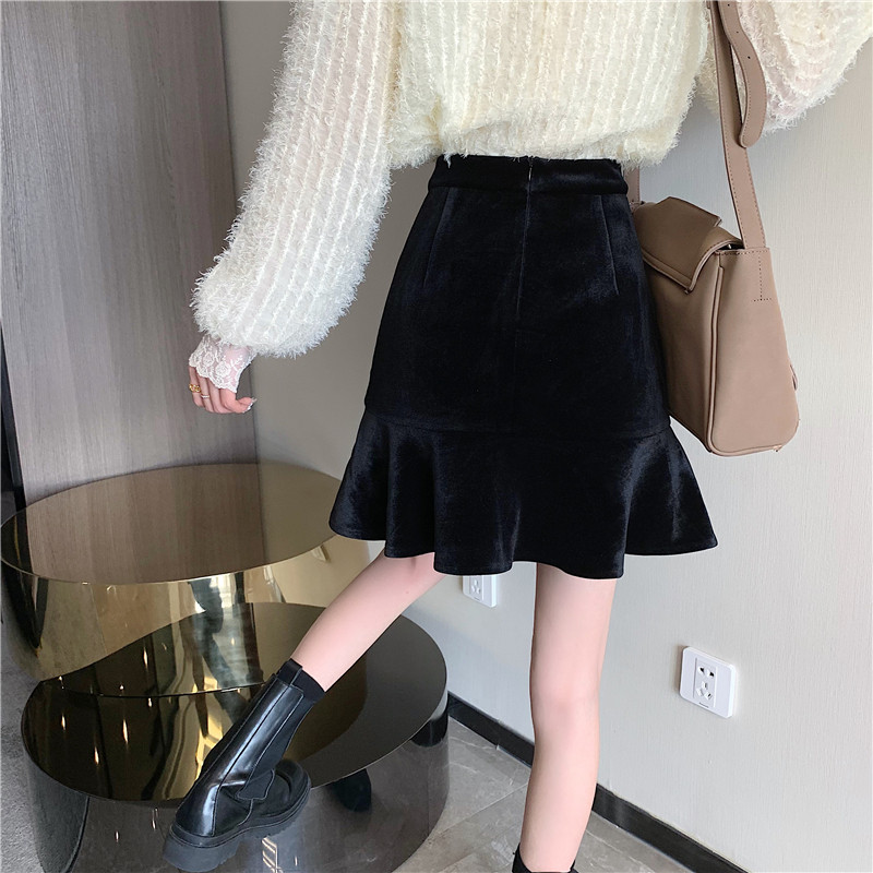 Модная мини-юбка, бархатная юбка, большой размер, крой «рыбий хвост», А-силуэт