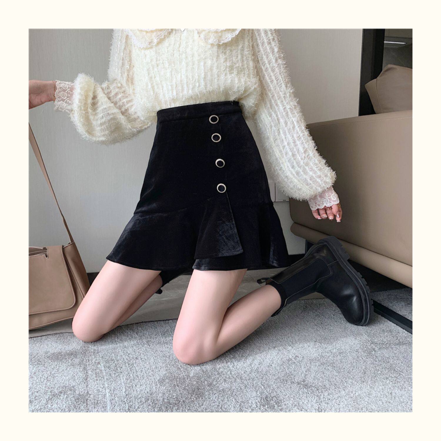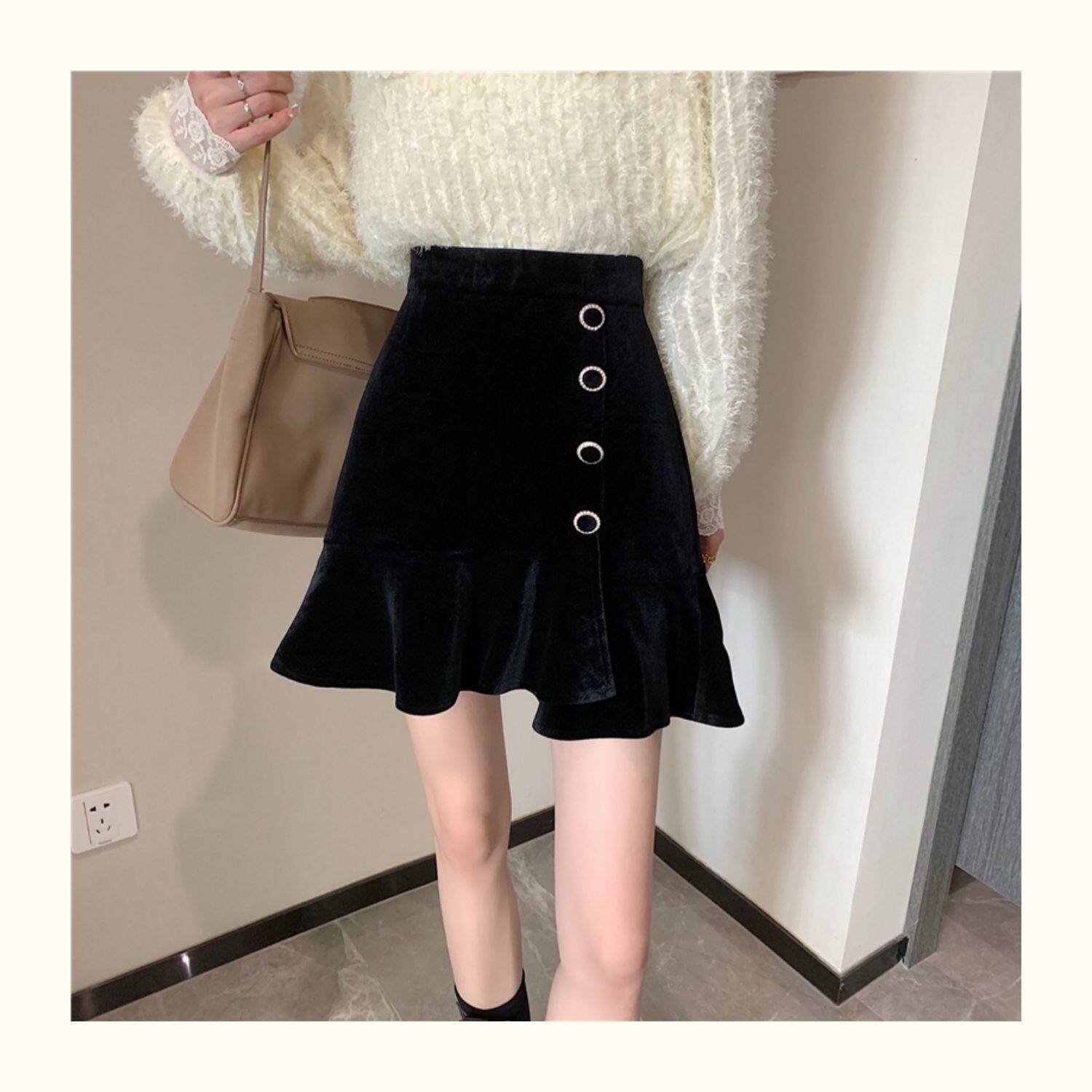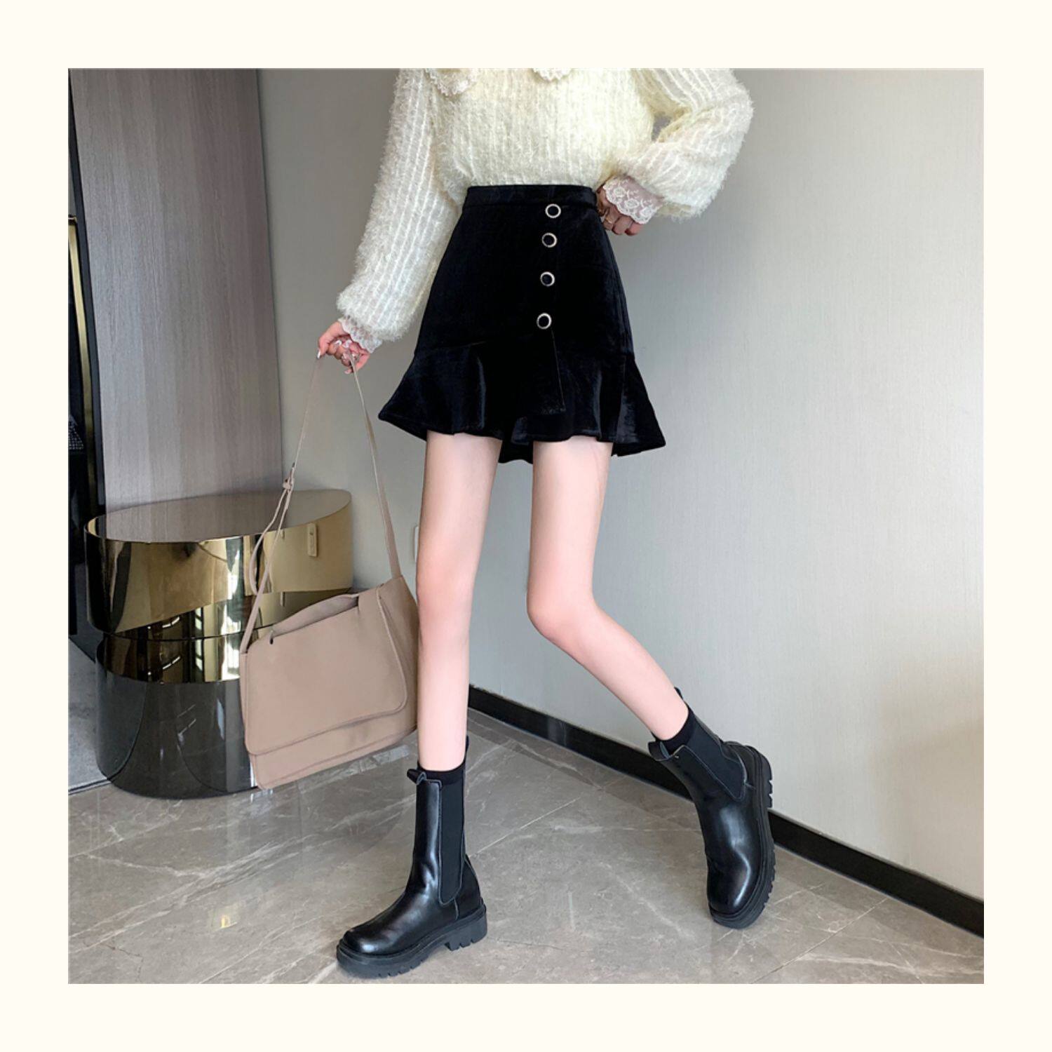 Модная мини-юбка, бархатная юбка, большой размер, крой «рыбий хвост», А-силуэт