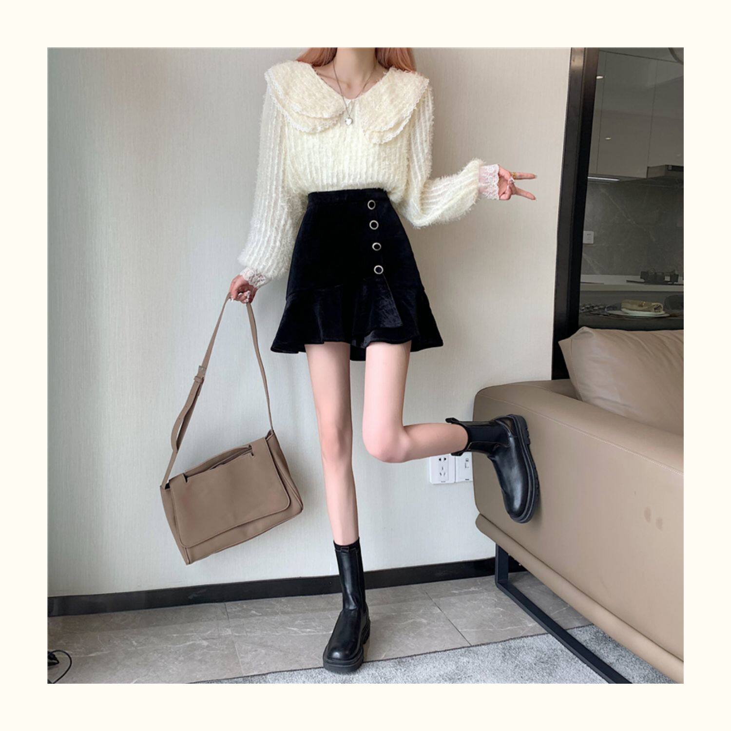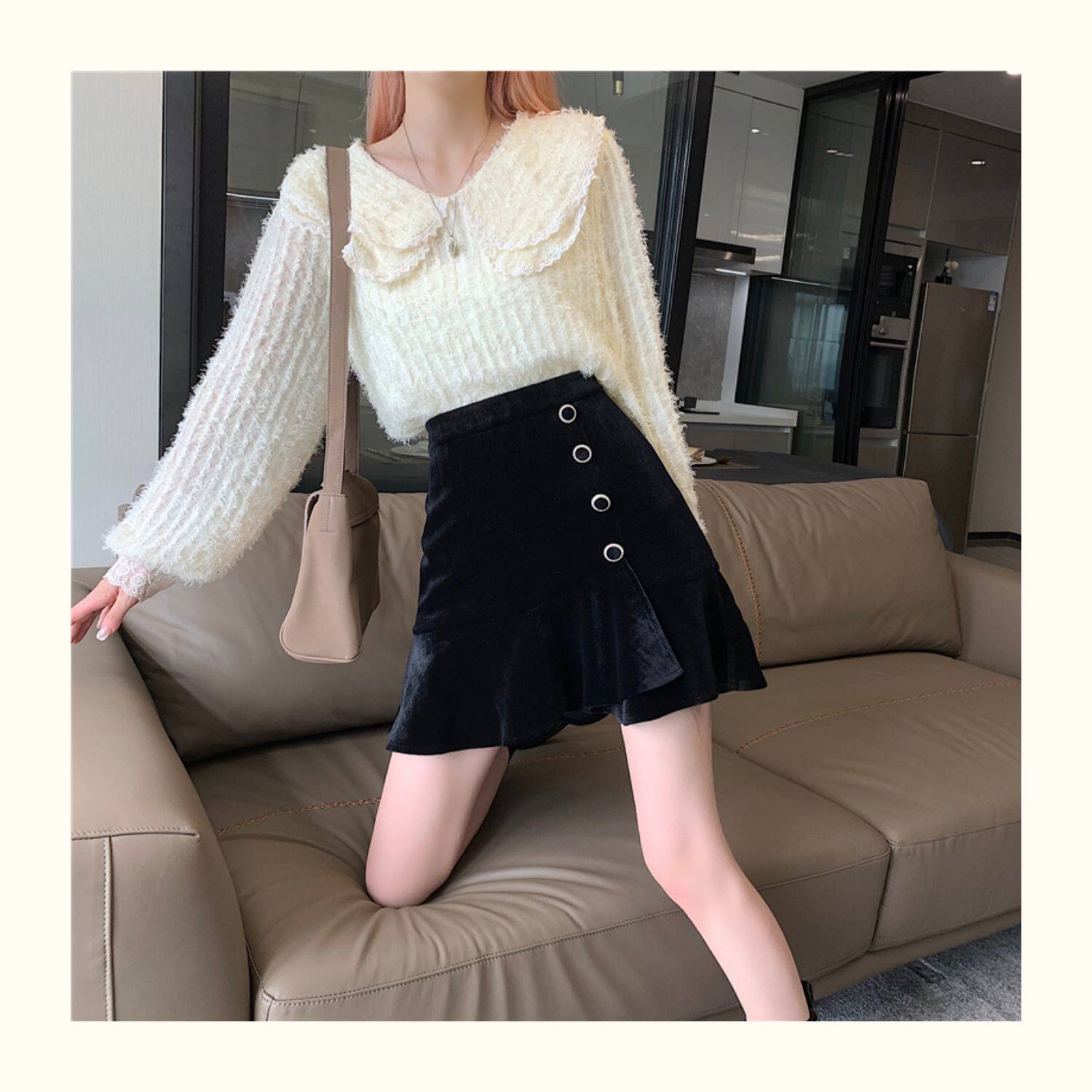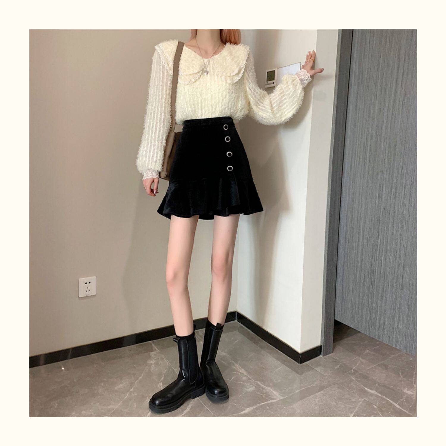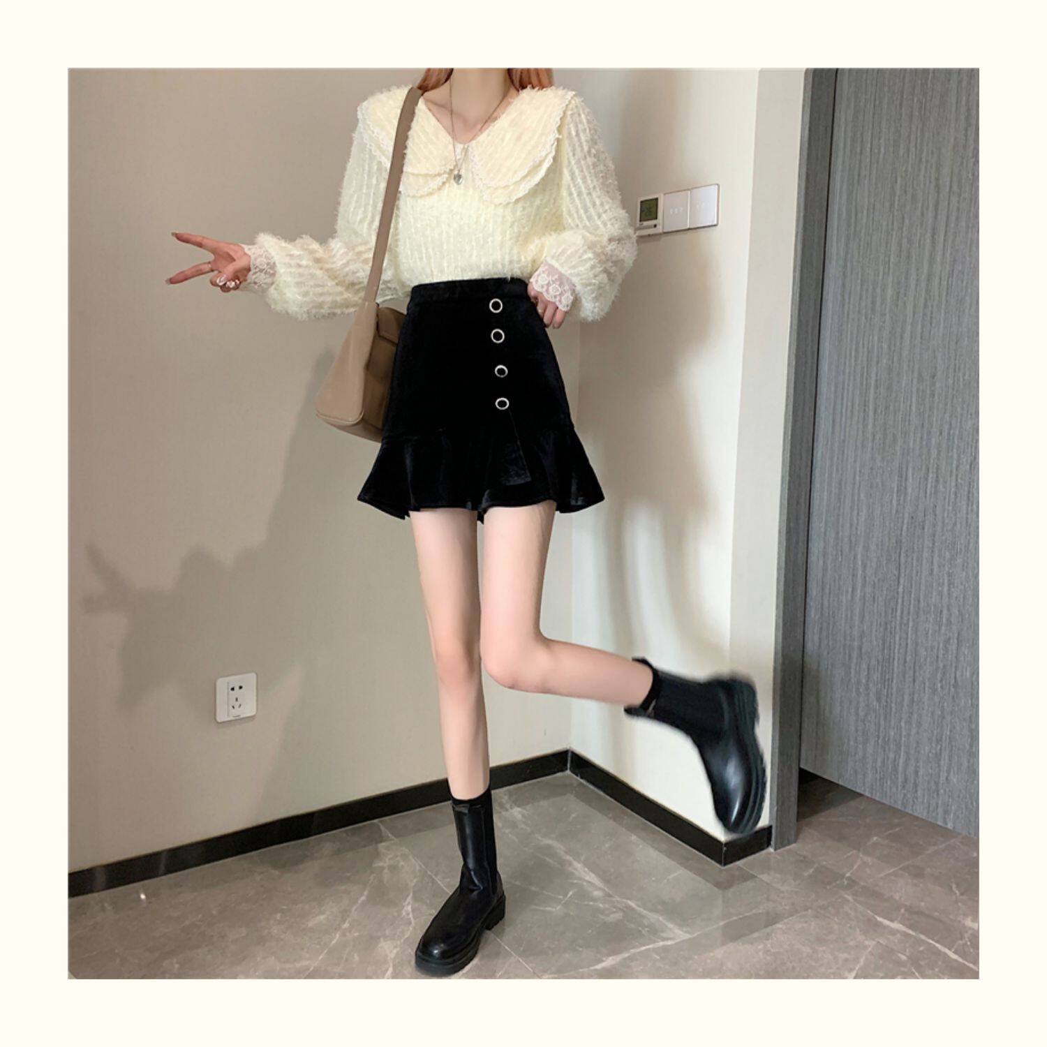 Модная мини-юбка, бархатная юбка, большой размер, крой «рыбий хвост», А-силуэт