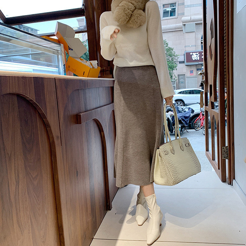 Шерстяная черная демисезонная юбка, крой «рыбий хвост», французский стиль, высокая талия