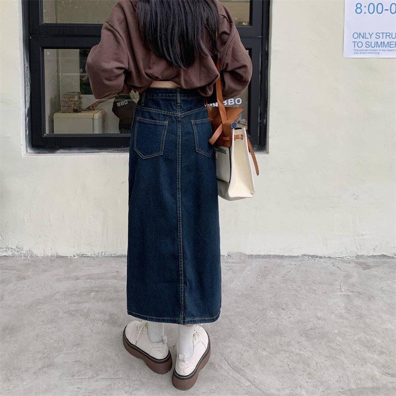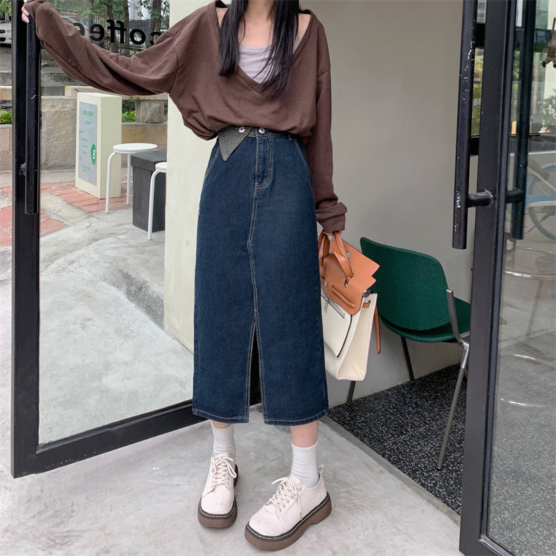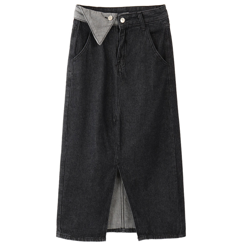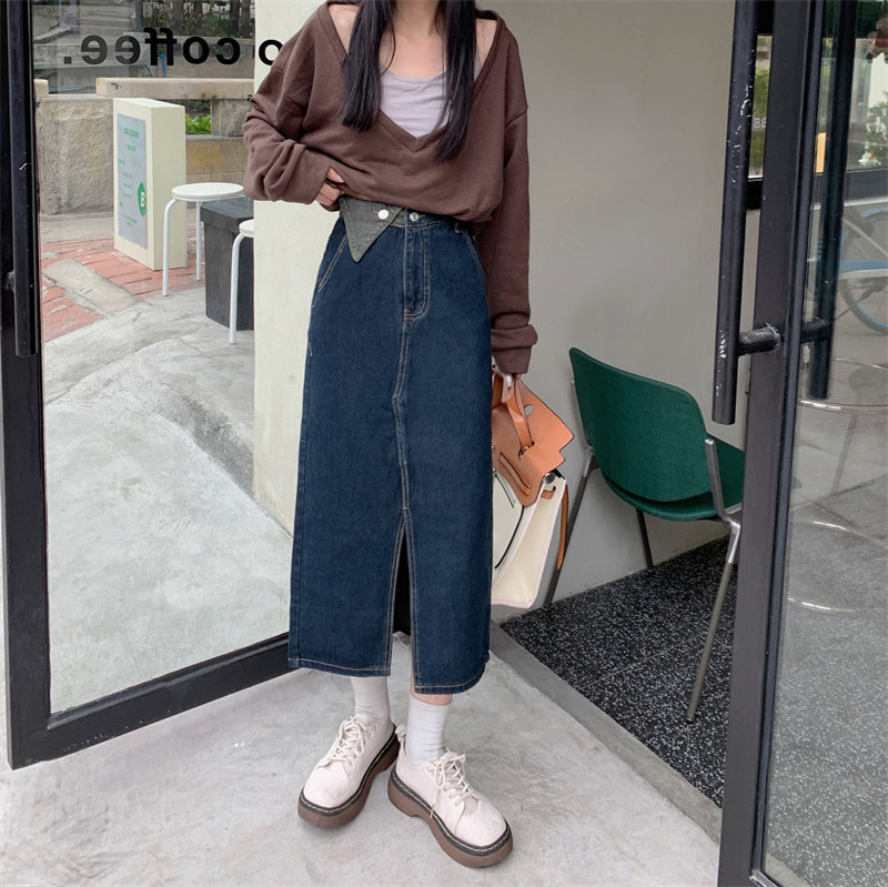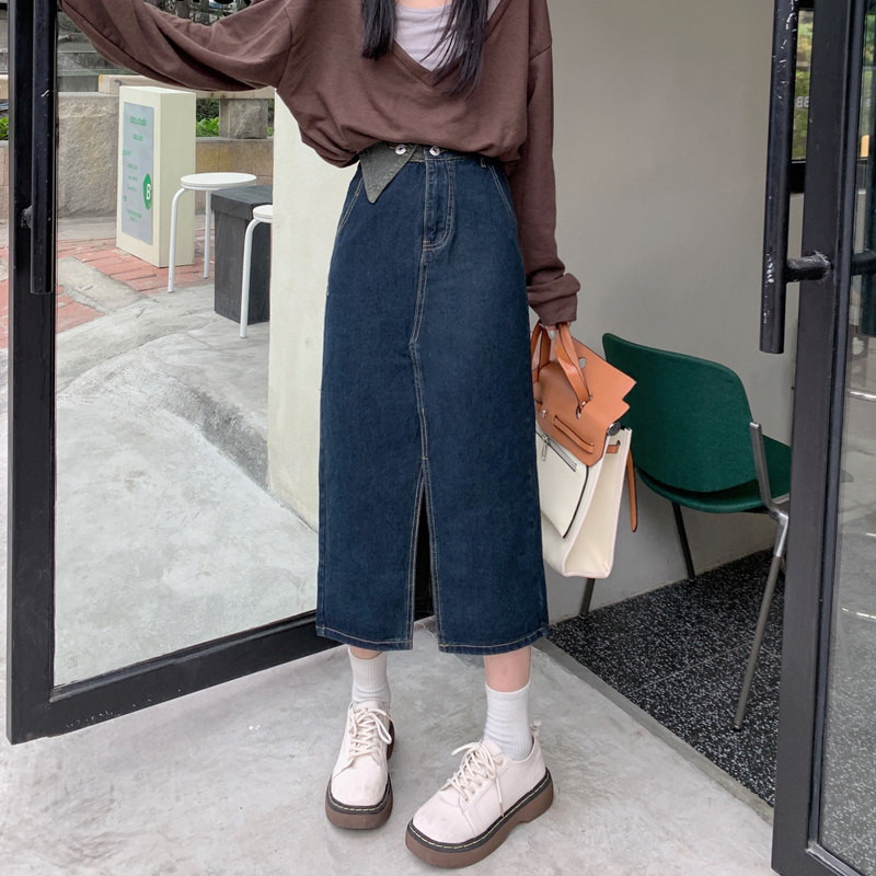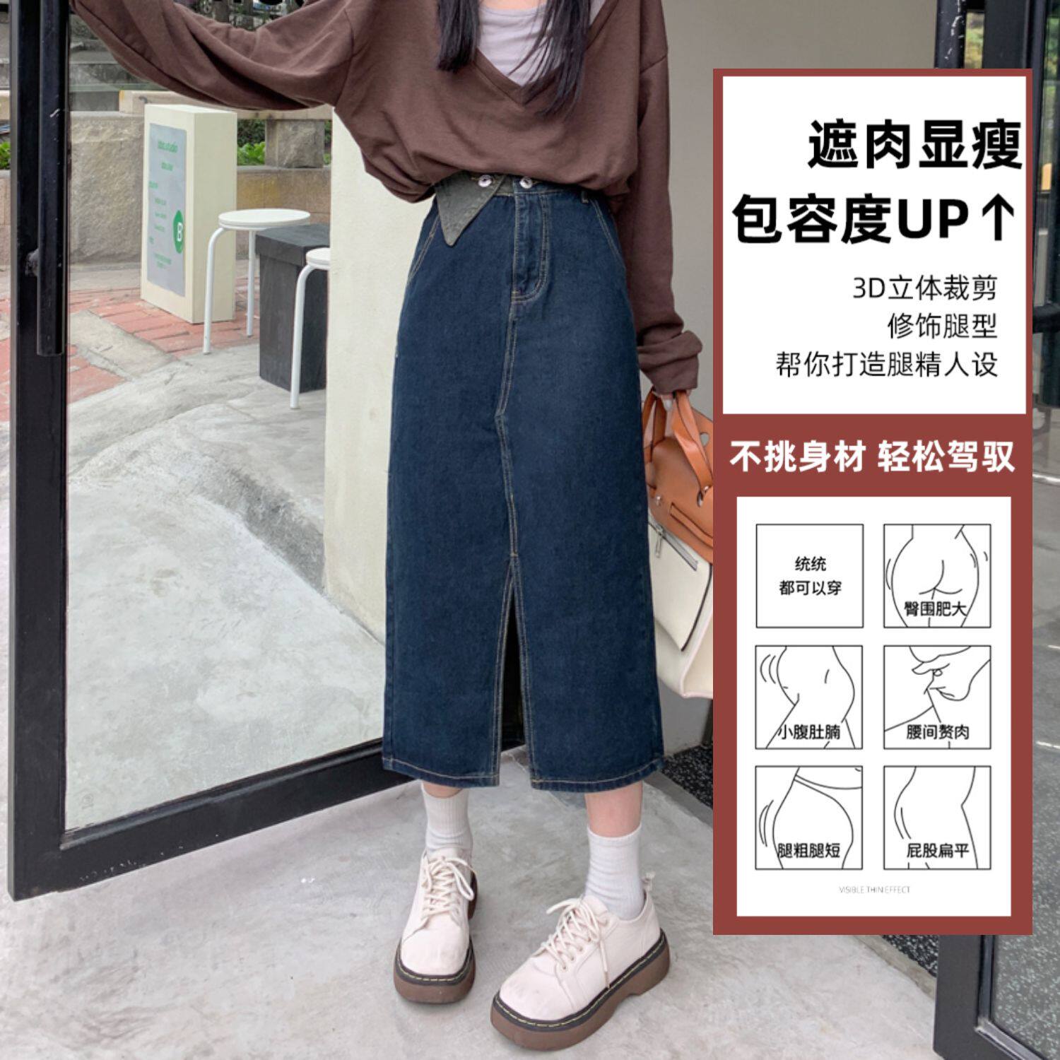 Джинсовая длинная осенняя джинсовая юбка, коллекция 2023, большой размер, подходит для полных девушек, высокая талия, длина миди, А-силуэт