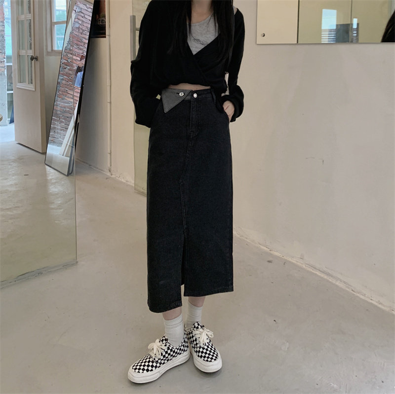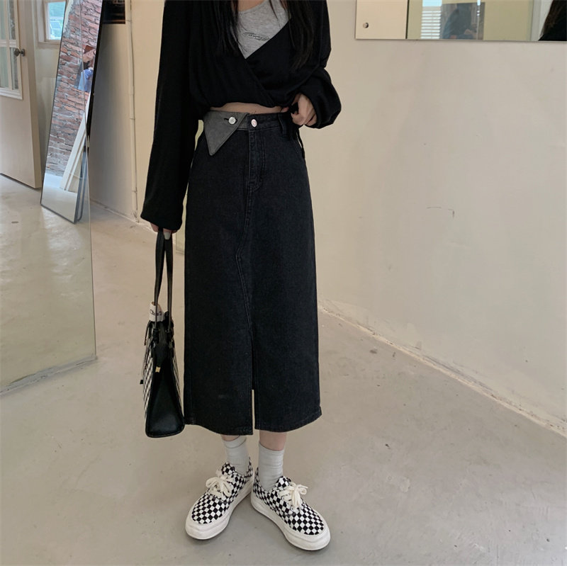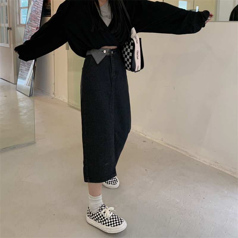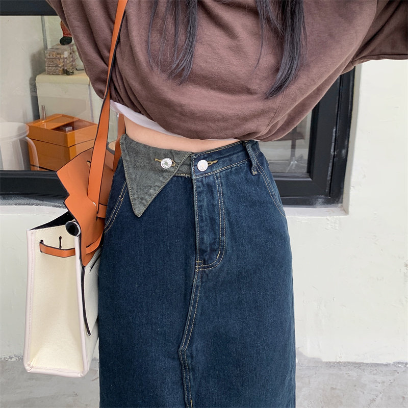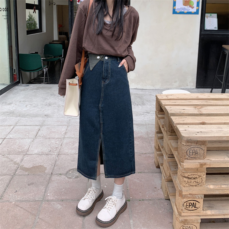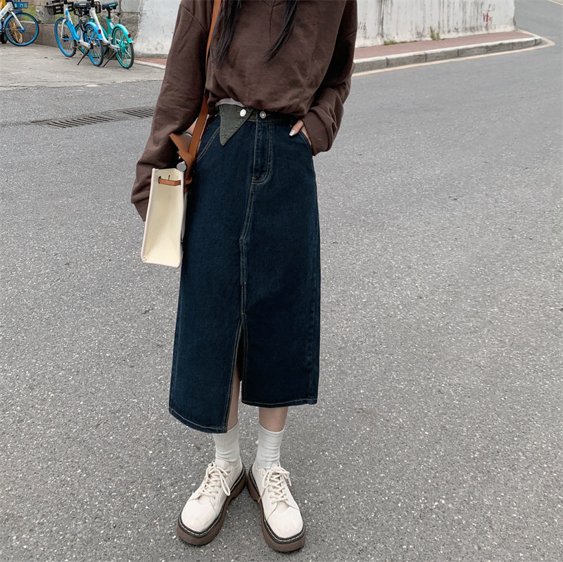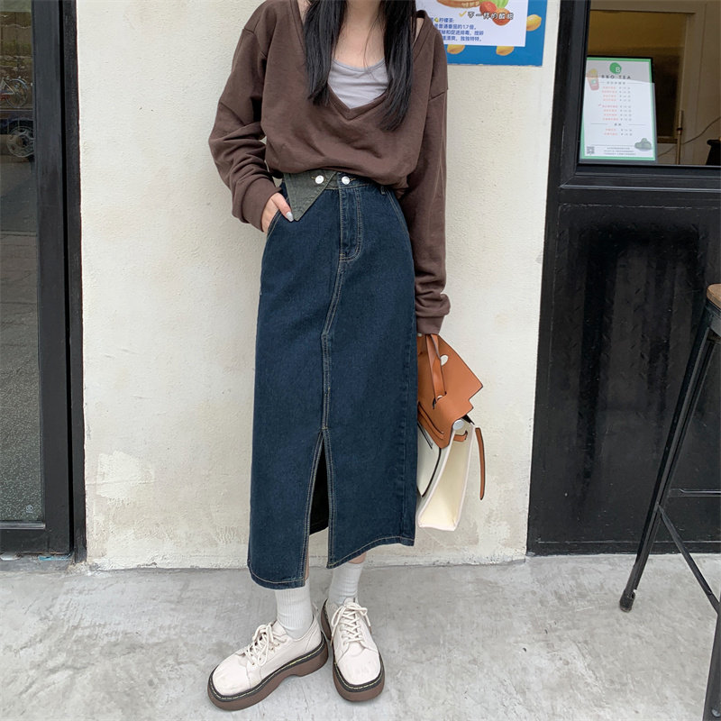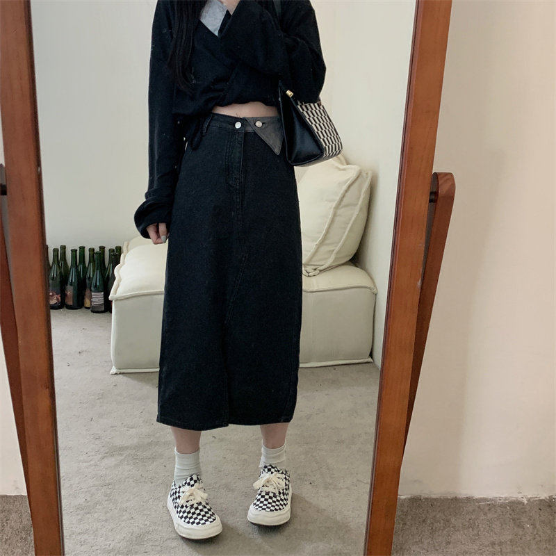 Джинсовая длинная осенняя джинсовая юбка, коллекция 2023, большой размер, подходит для полных девушек, высокая талия, длина миди, А-силуэт
