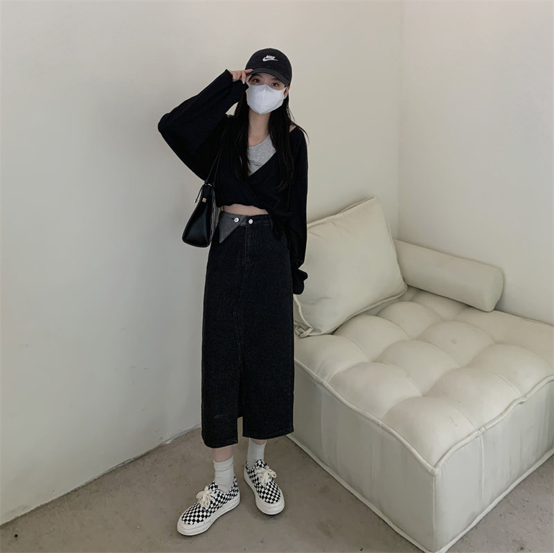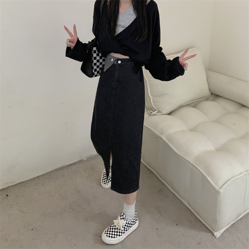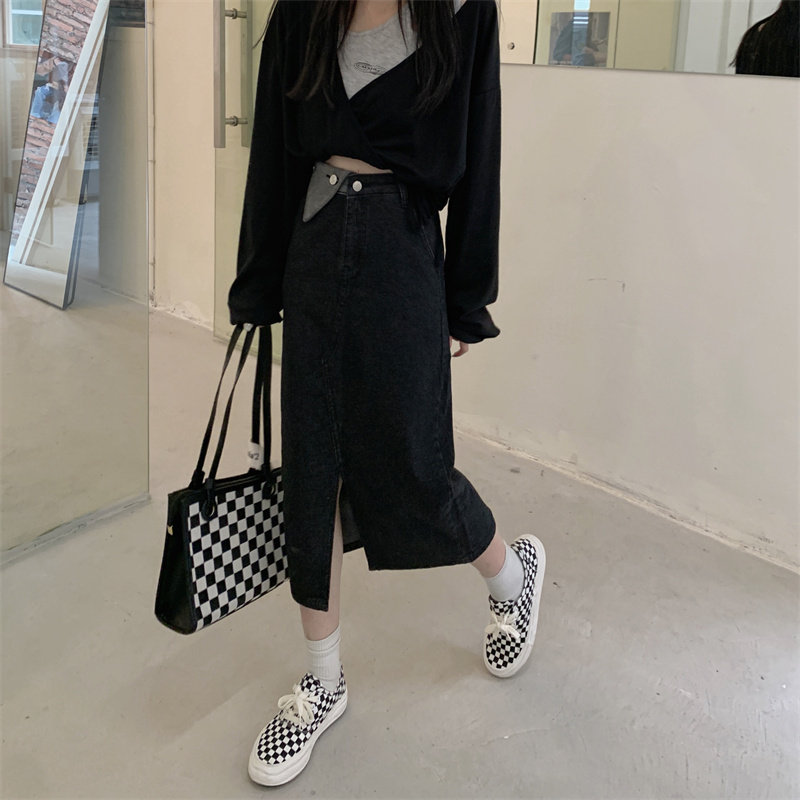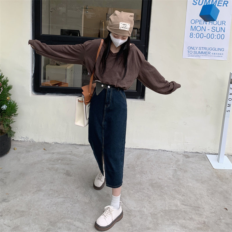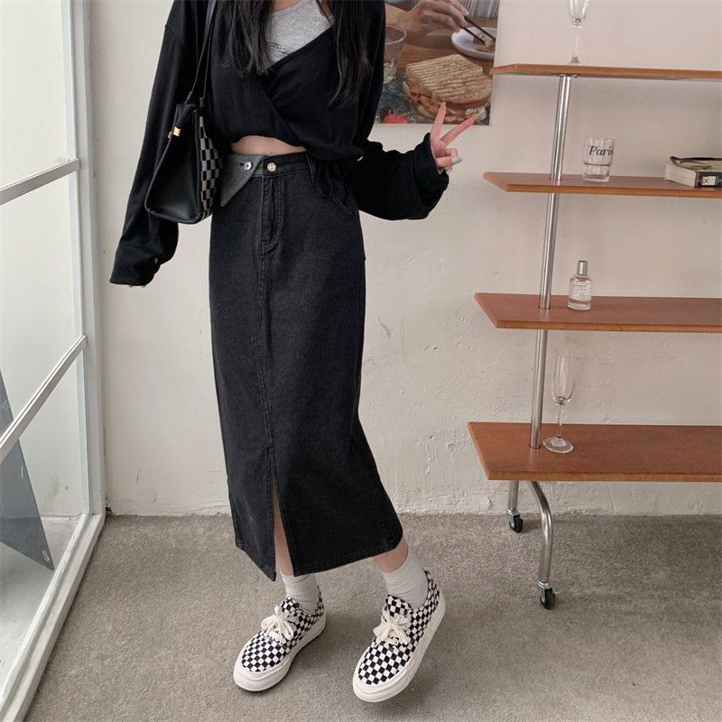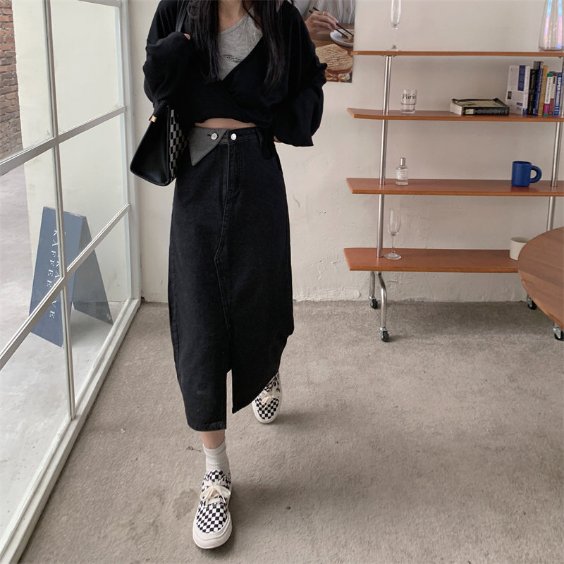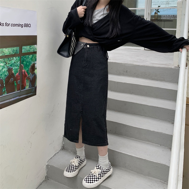 Джинсовая длинная осенняя джинсовая юбка, коллекция 2023, большой размер, подходит для полных девушек, высокая талия, длина миди, А-силуэт