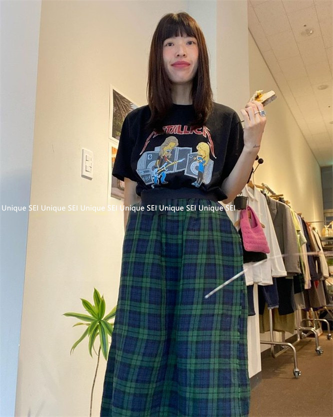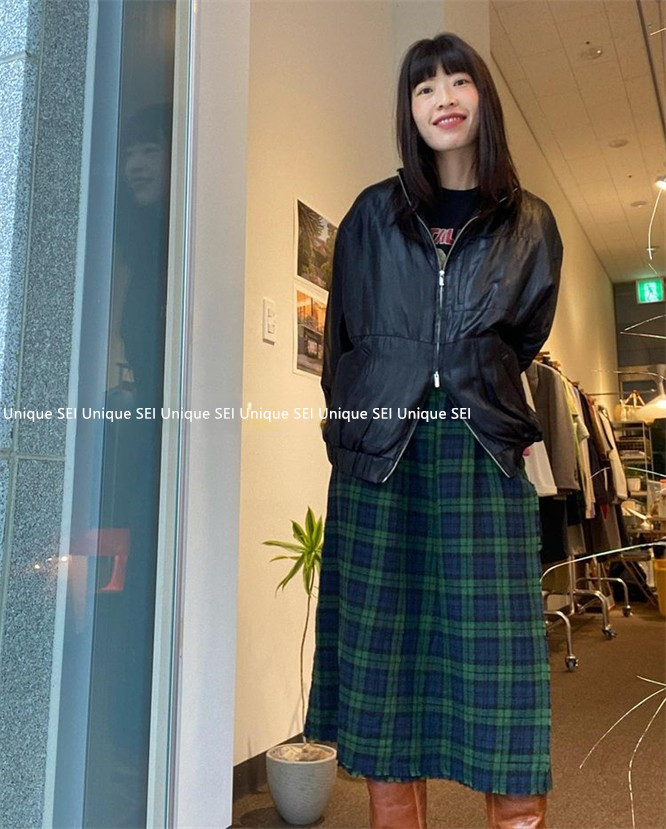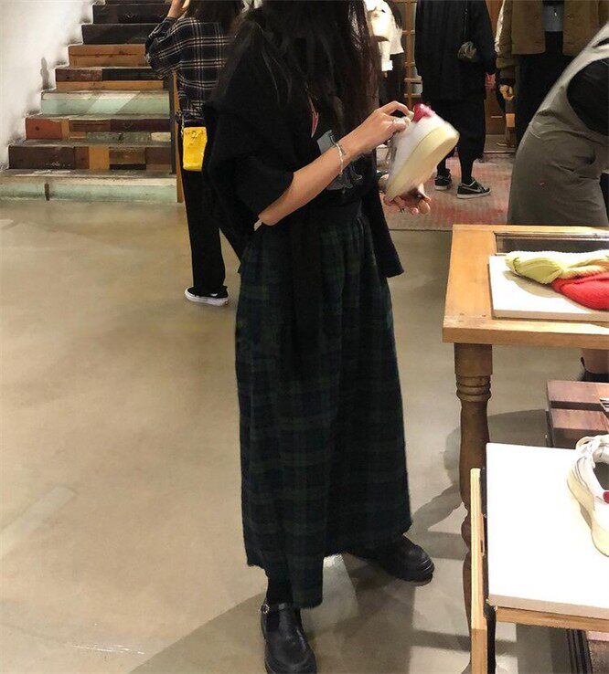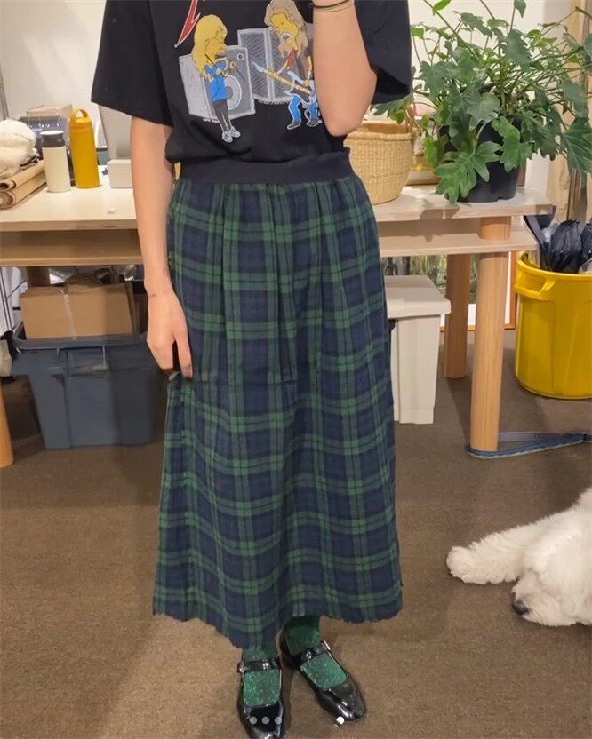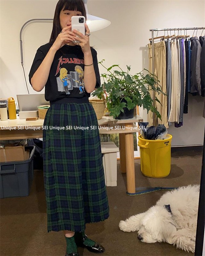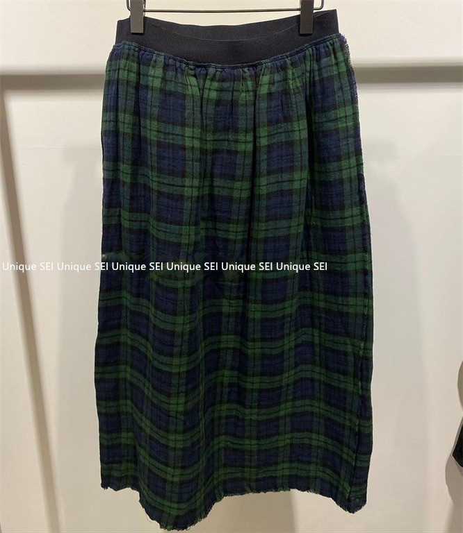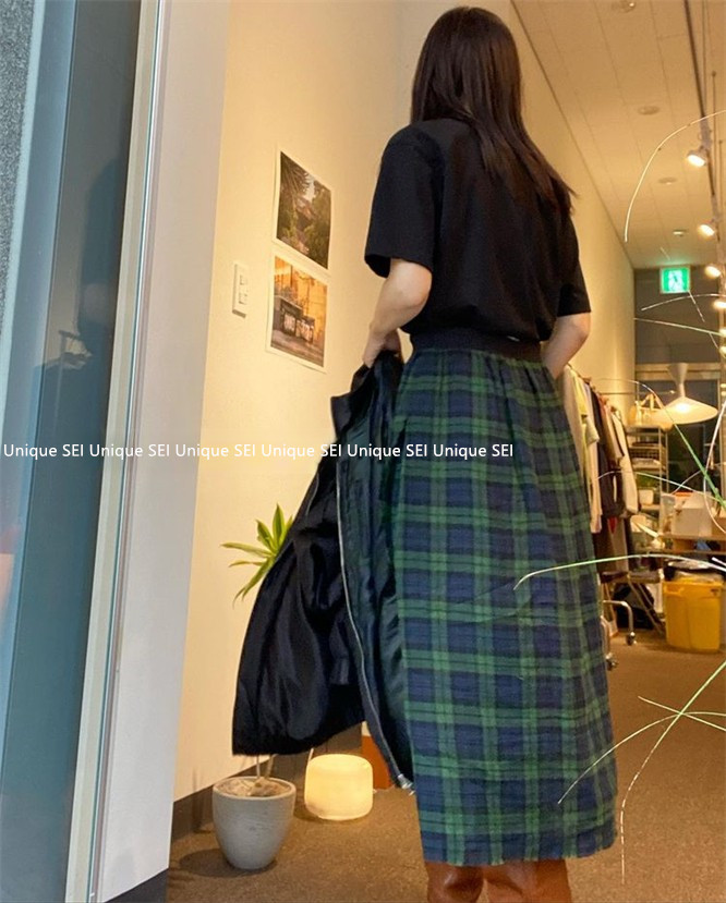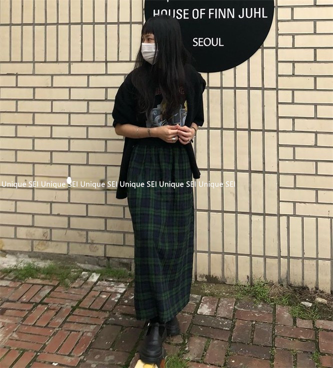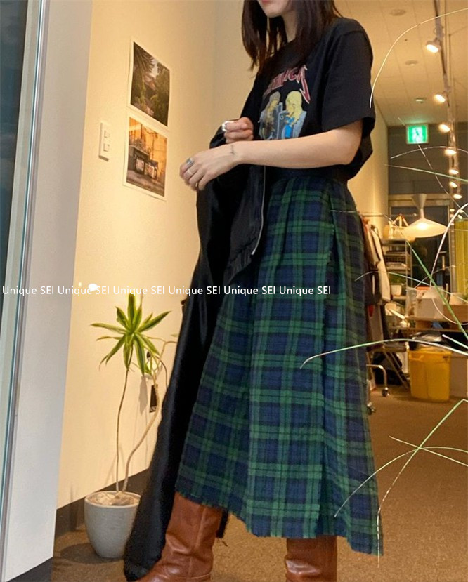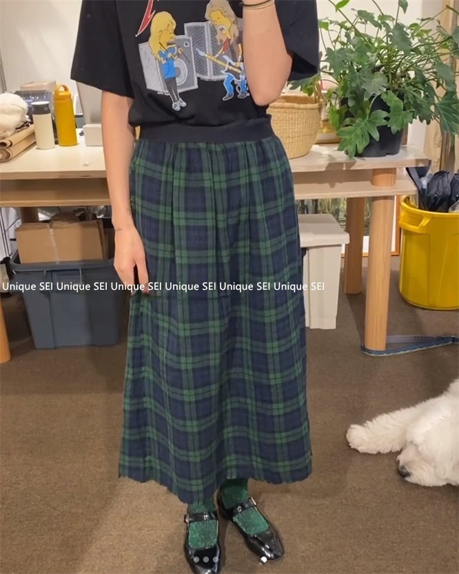 Уникальный дизайнер SEI Retro, простой случайный темно -зеленый британский рисунок свободный талия, без блокировки юбка