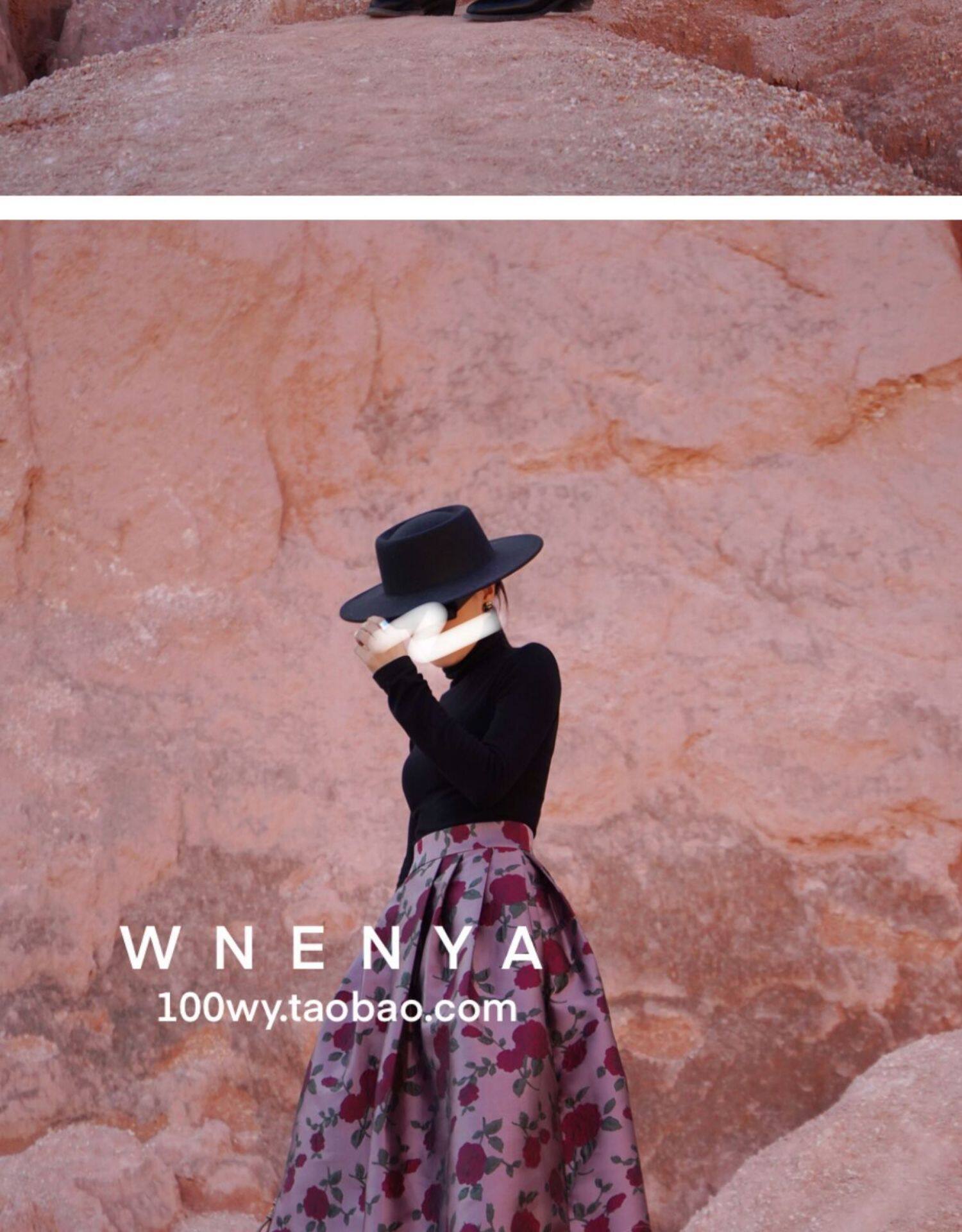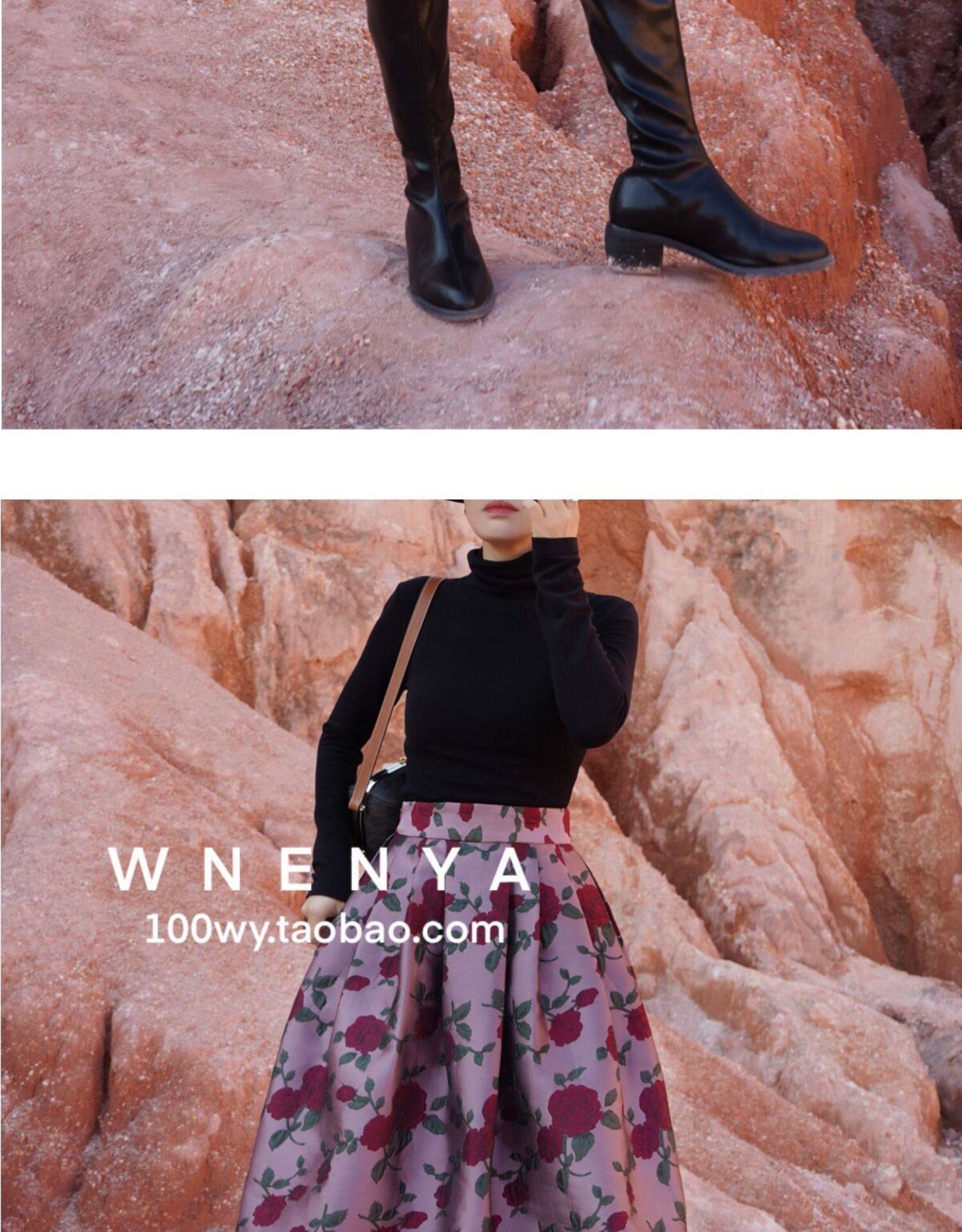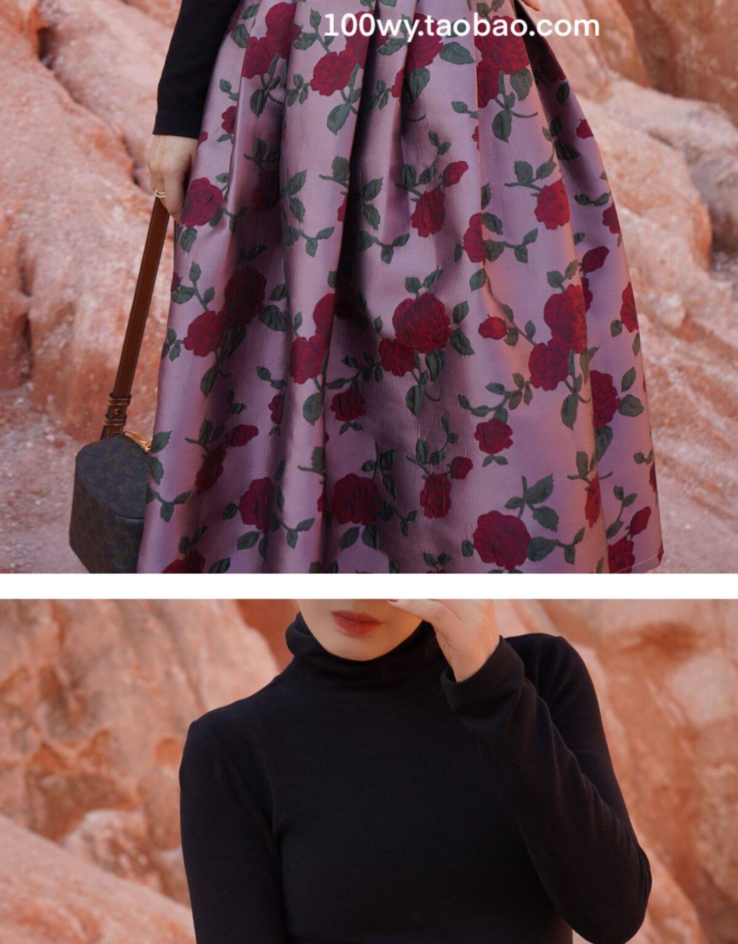 Wenya Palace Пьяная Роза Пышная Юбка Плиссированная Высокая Талия Весна и Осень Жаккардовая Юбка средней длины для зрелого темперамента с зонтиком