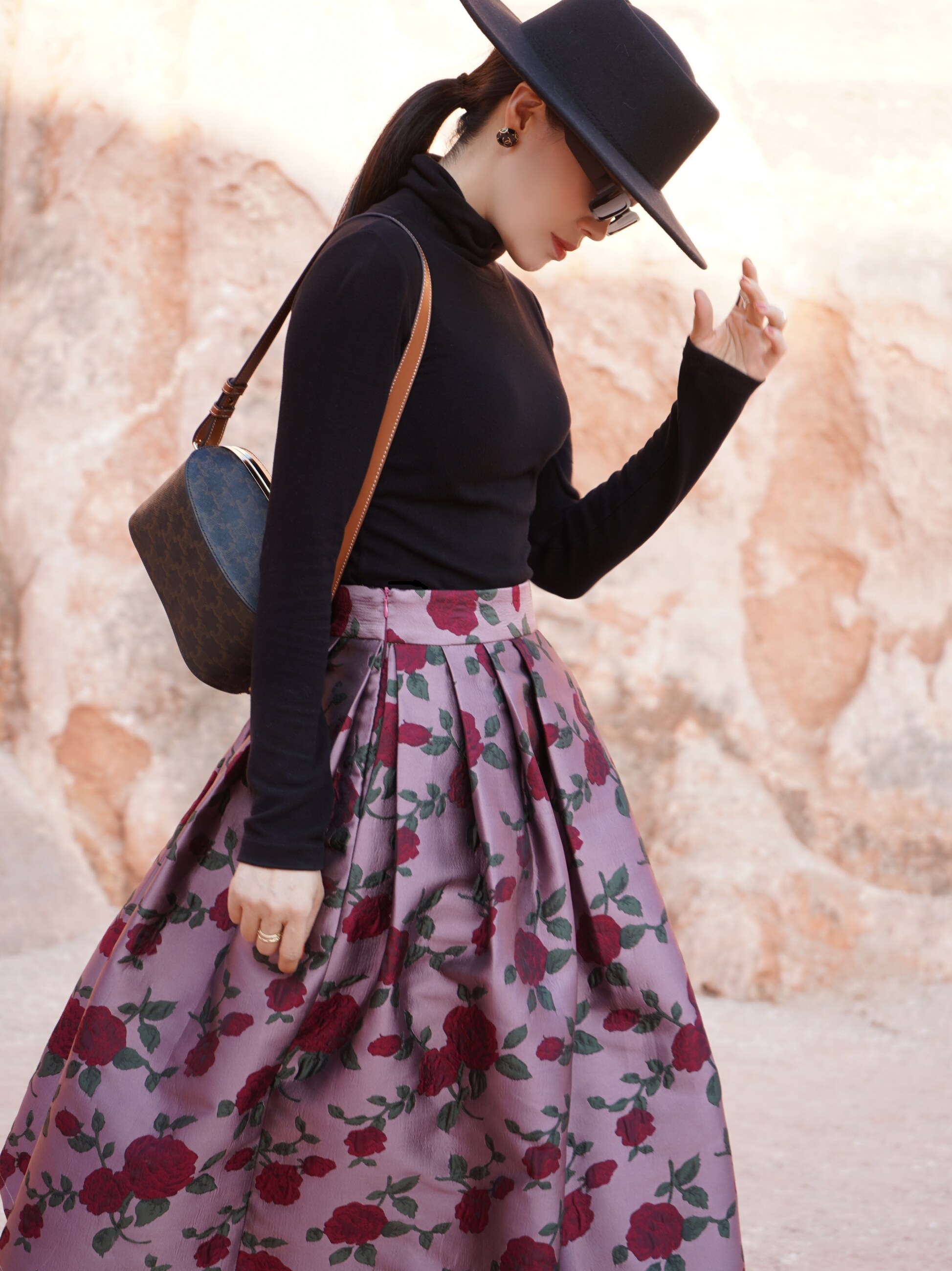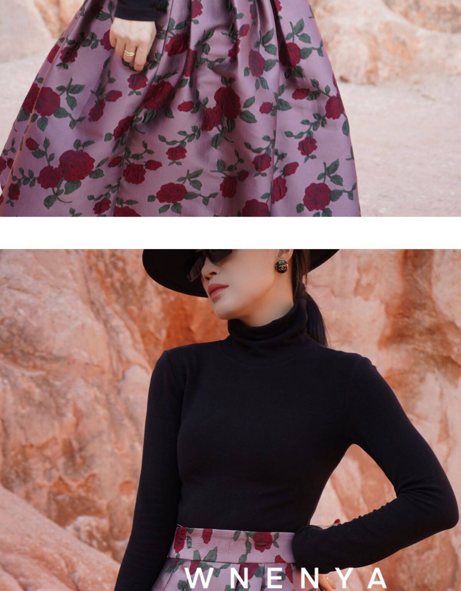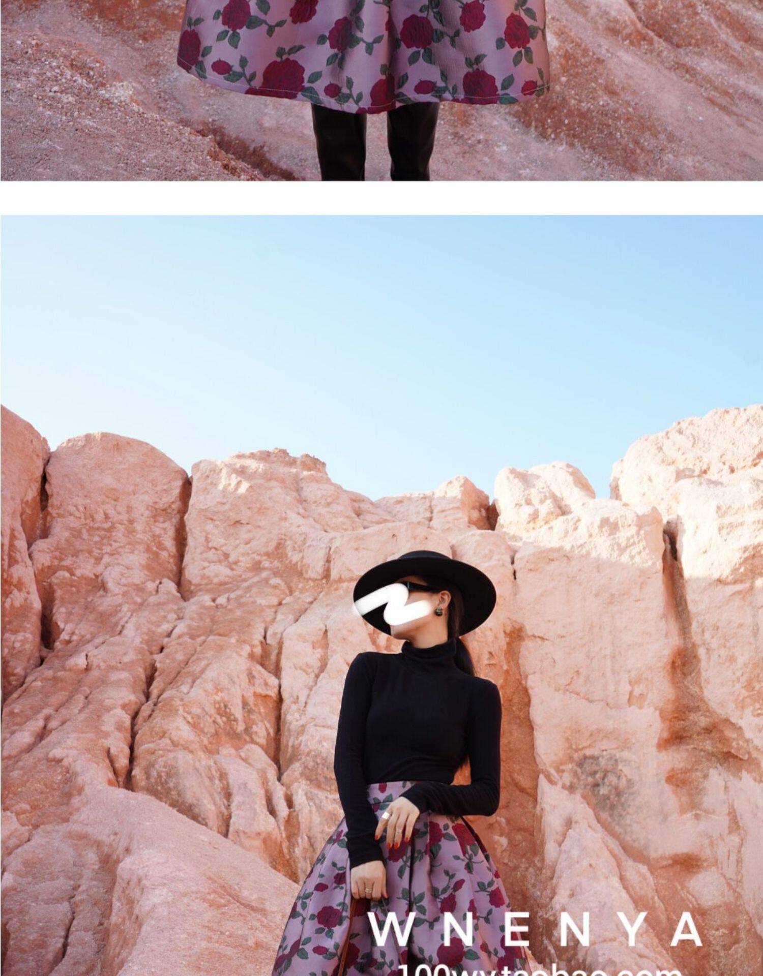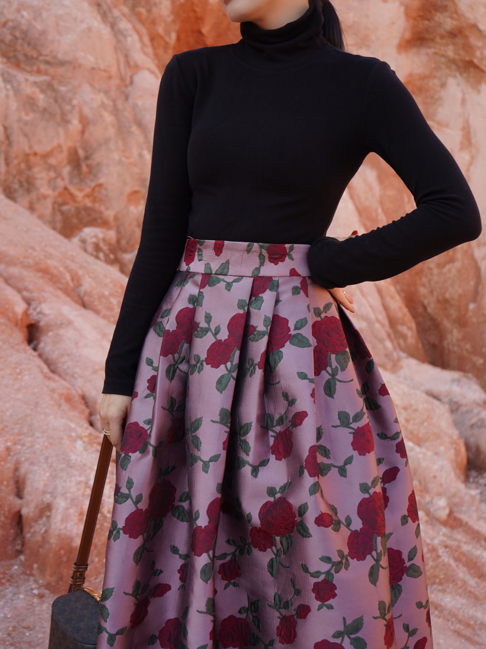 Wenya Palace Пьяная Роза Пышная Юбка Плиссированная Высокая Талия Весна и Осень Жаккардовая Юбка средней длины для зрелого темперамента с зонтиком