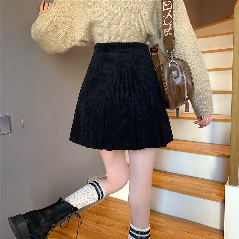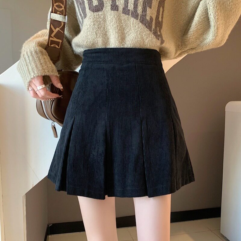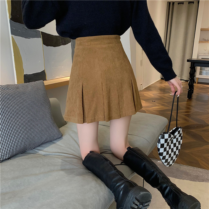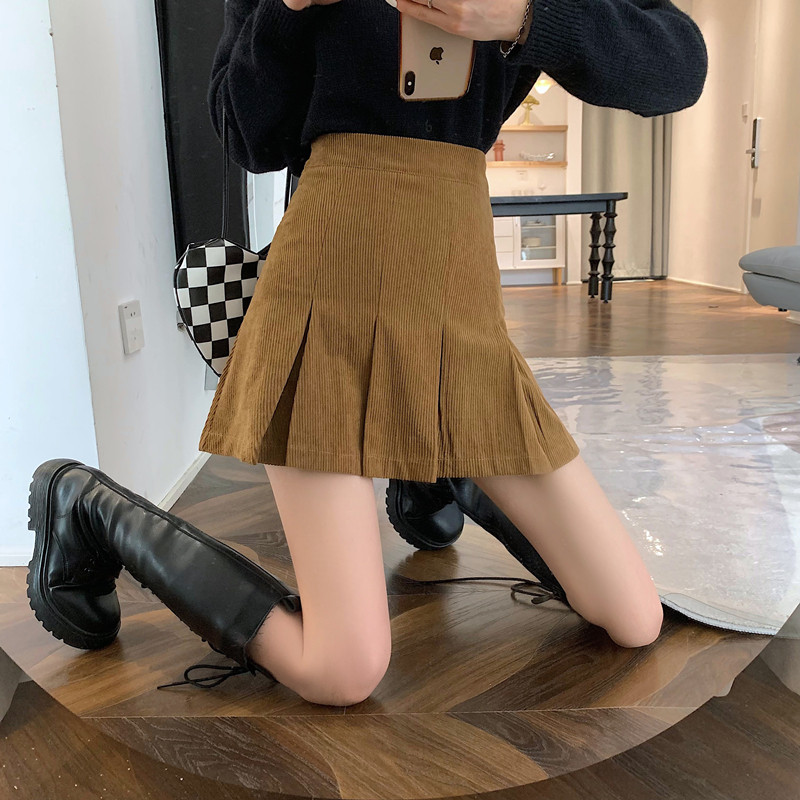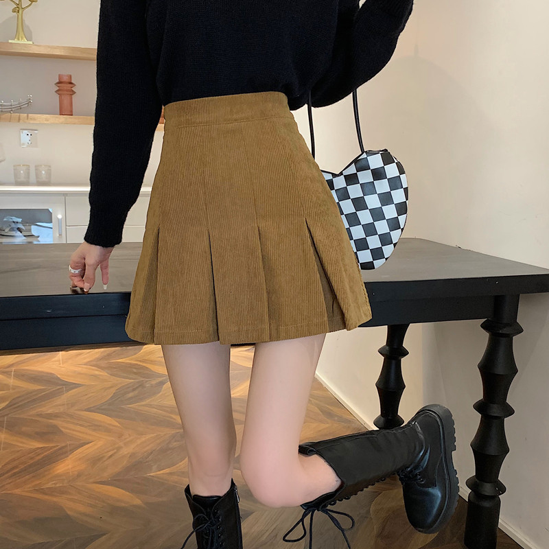 Ретро вельветовая весенняя юбка в складку, подходит для подростков, 2024 года, А-силуэт