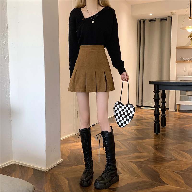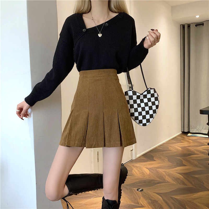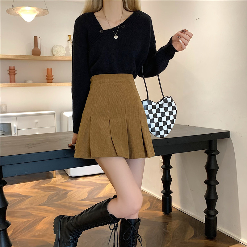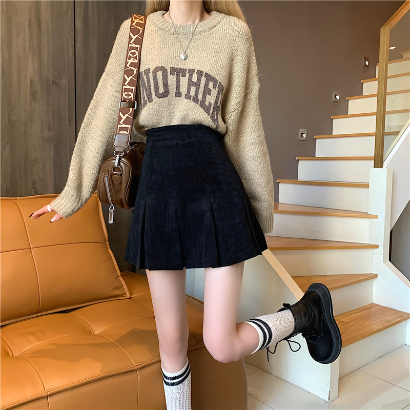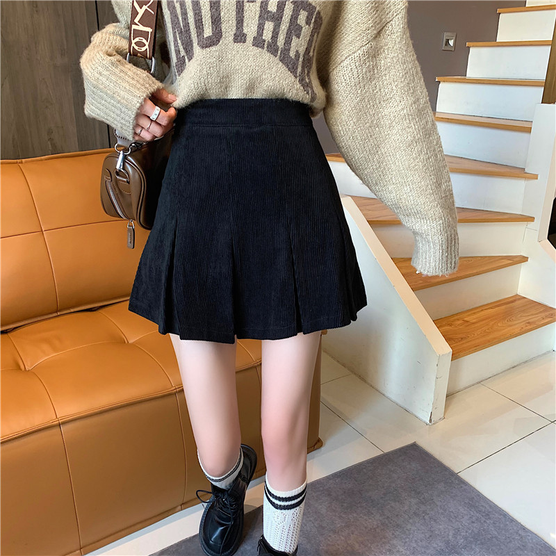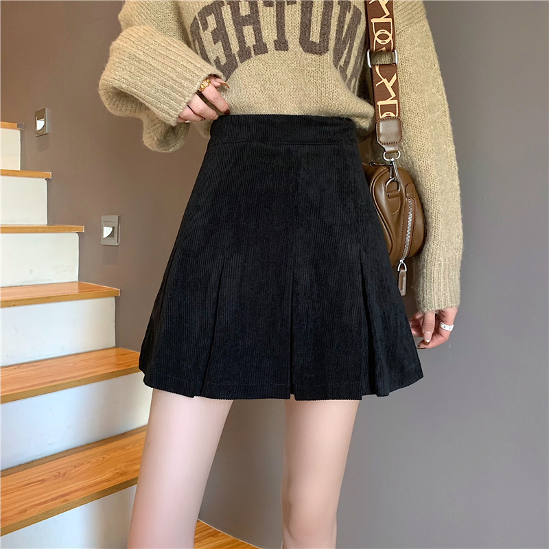 Ретро вельветовая весенняя юбка в складку, подходит для подростков, 2024 года, А-силуэт