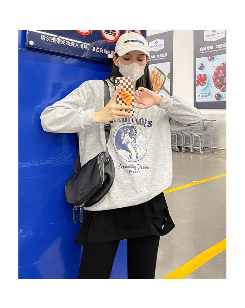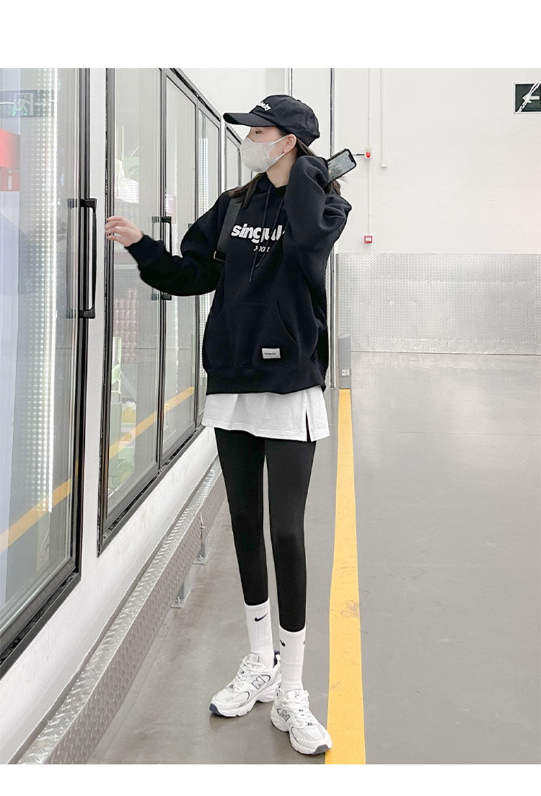 Черная штора, осенняя базовая толстовка, мини-юбка, свободный крой