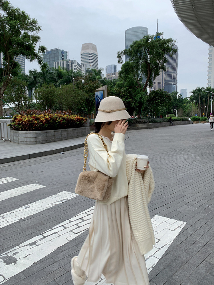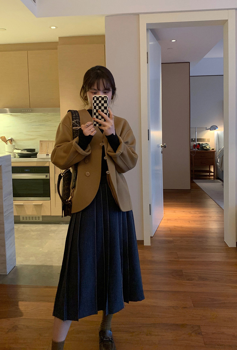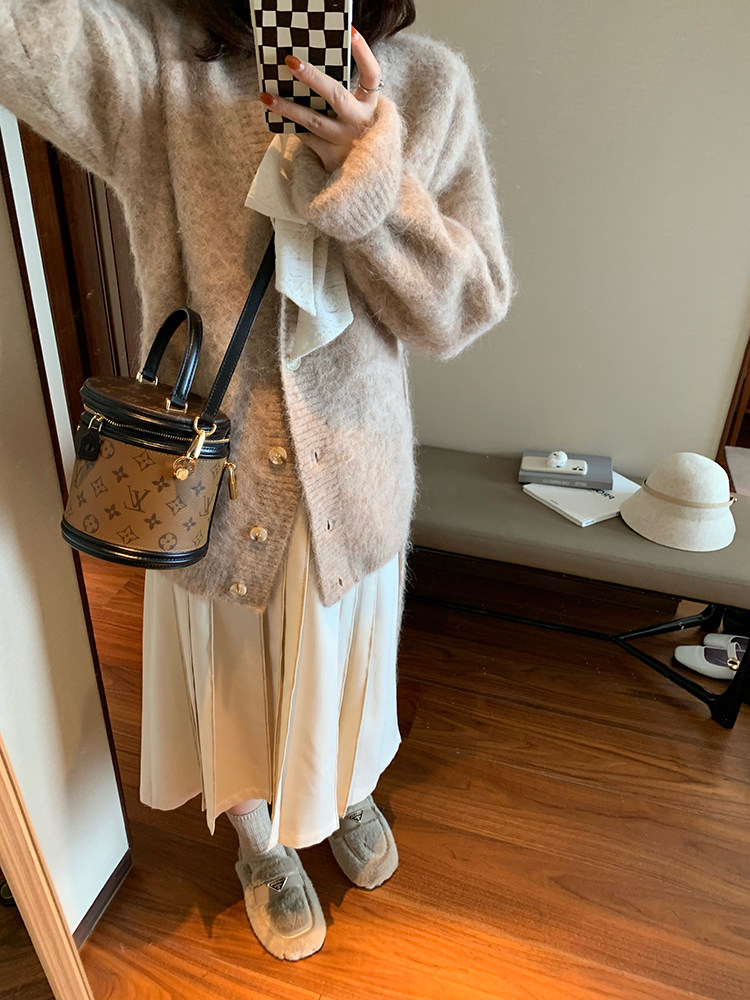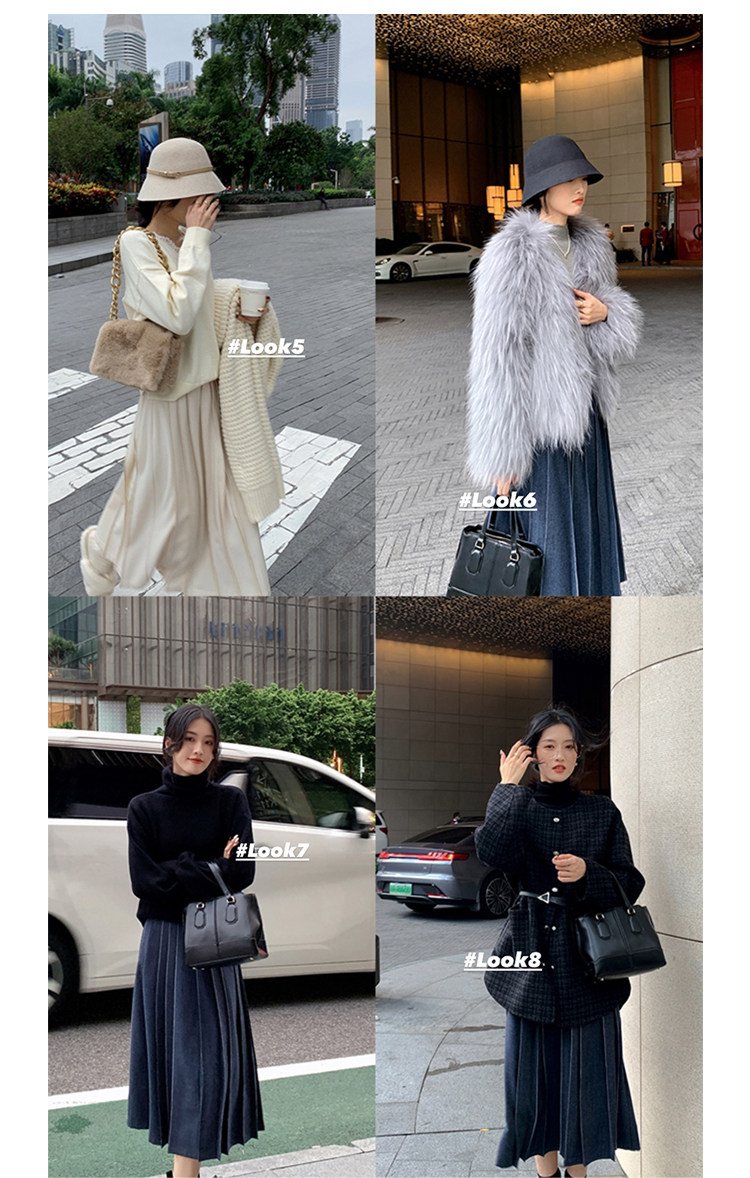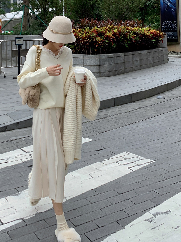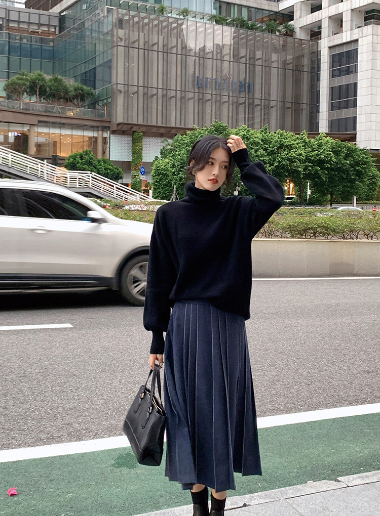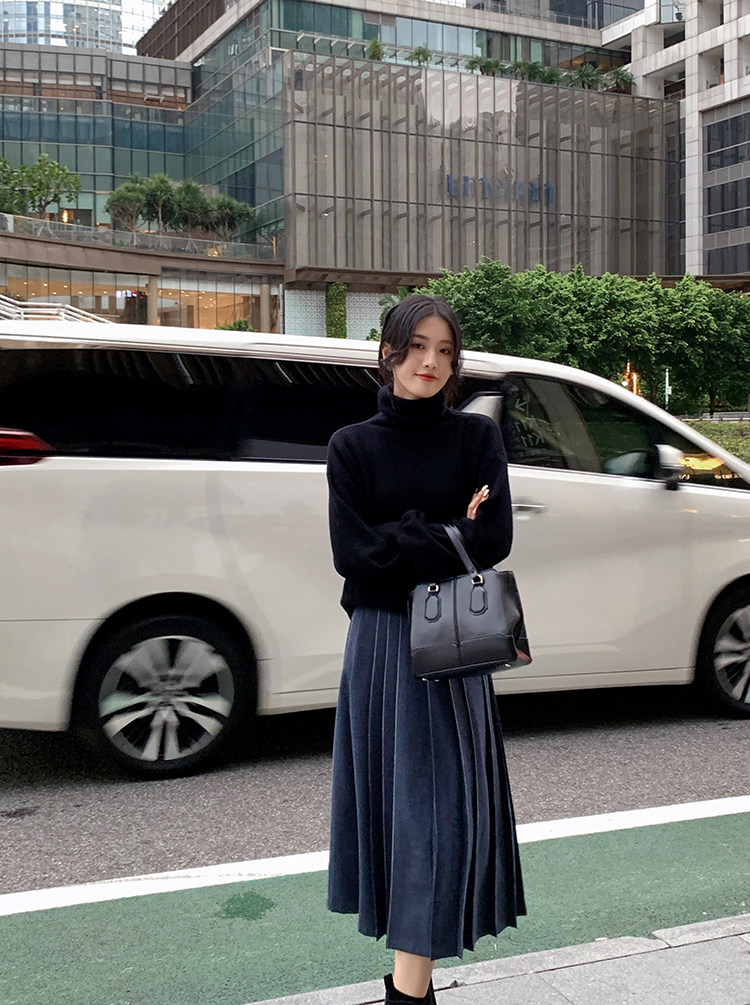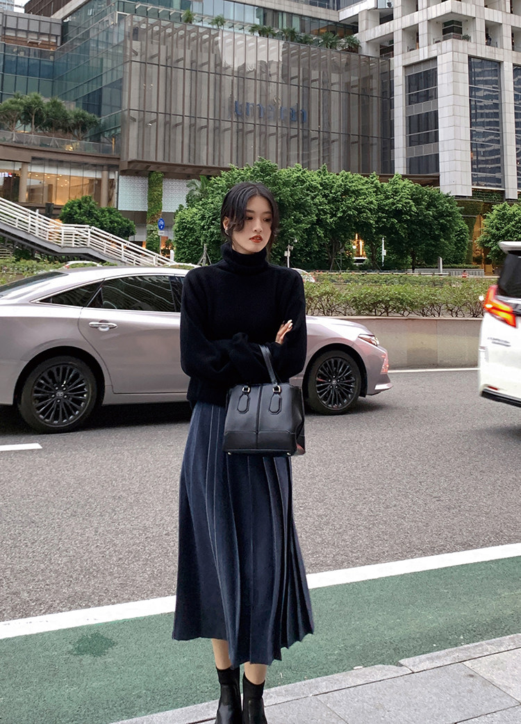 Длинный зимний шерстяной кожаный демисезонный свитер, юбка в складку, подходит для подростков, высокая талия