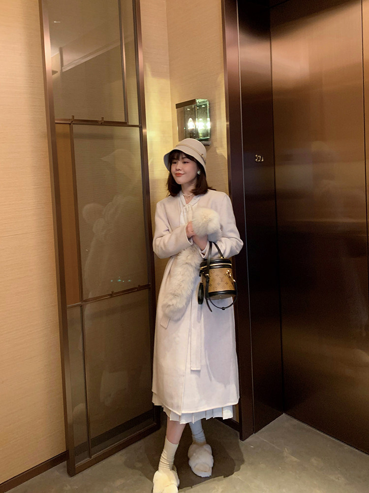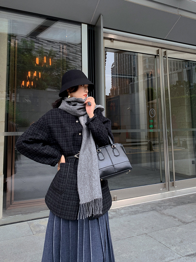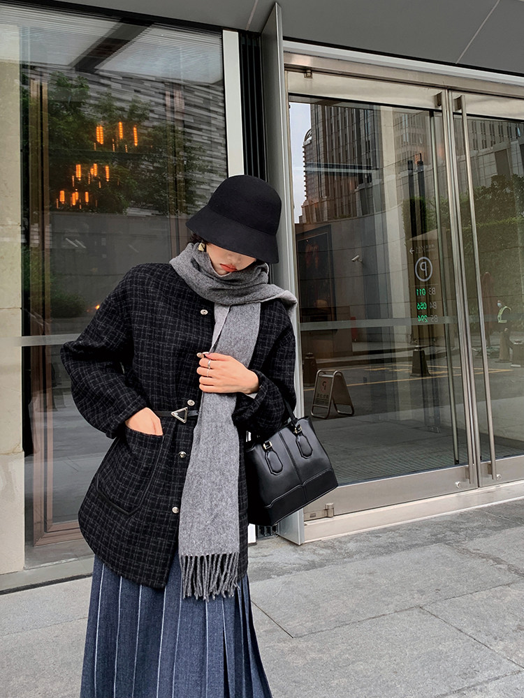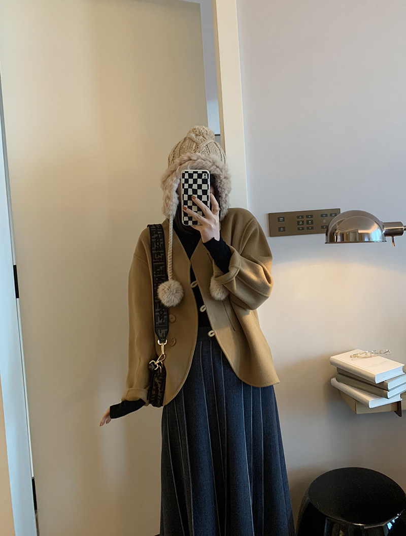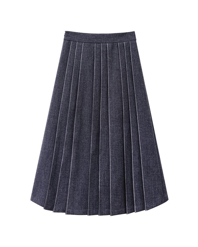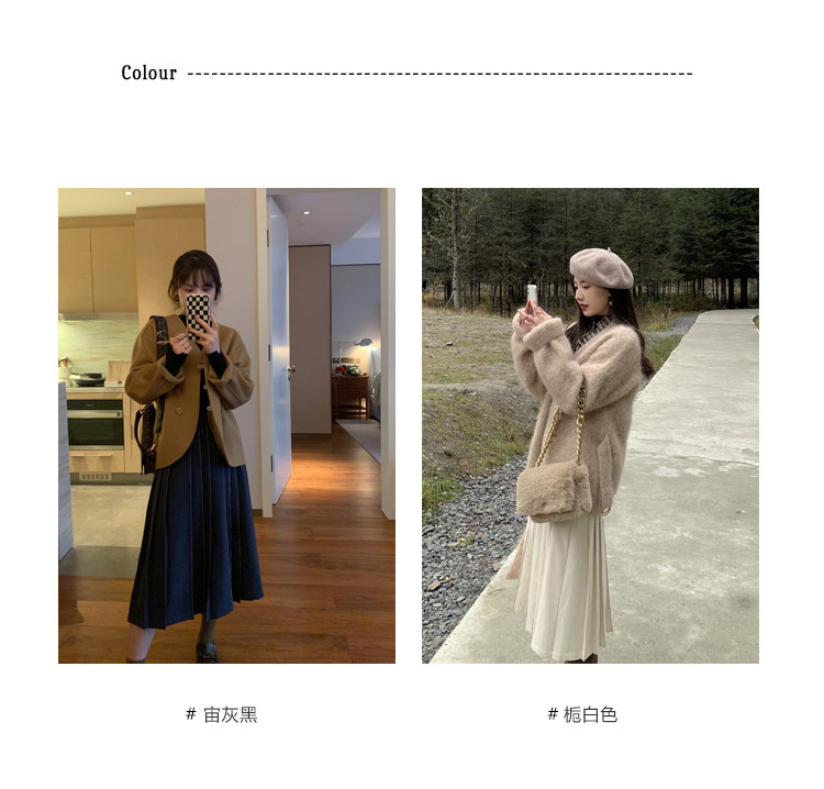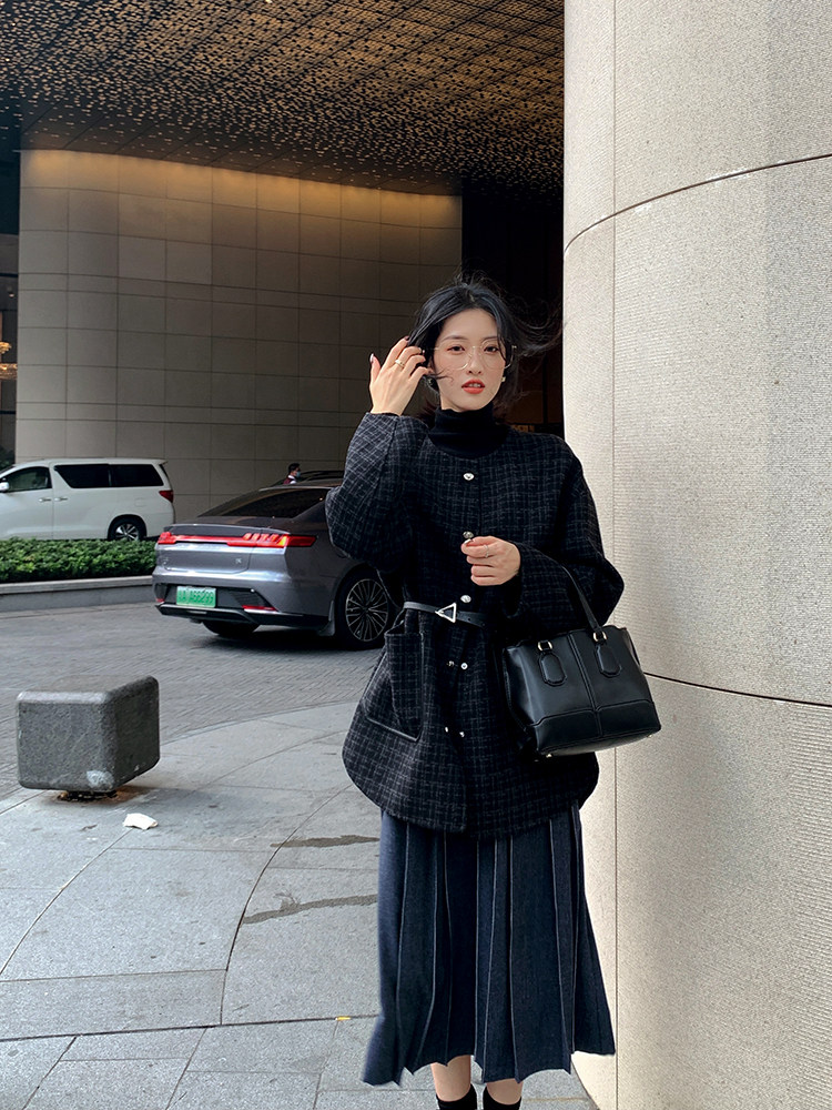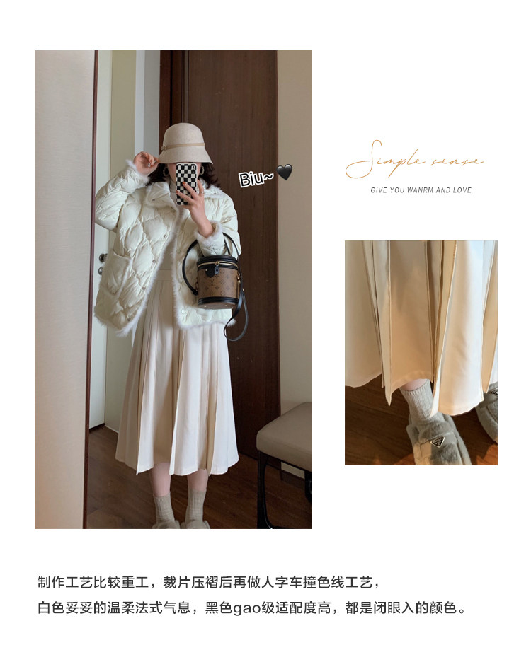 Длинный зимний шерстяной кожаный демисезонный свитер, юбка в складку, подходит для подростков, высокая талия