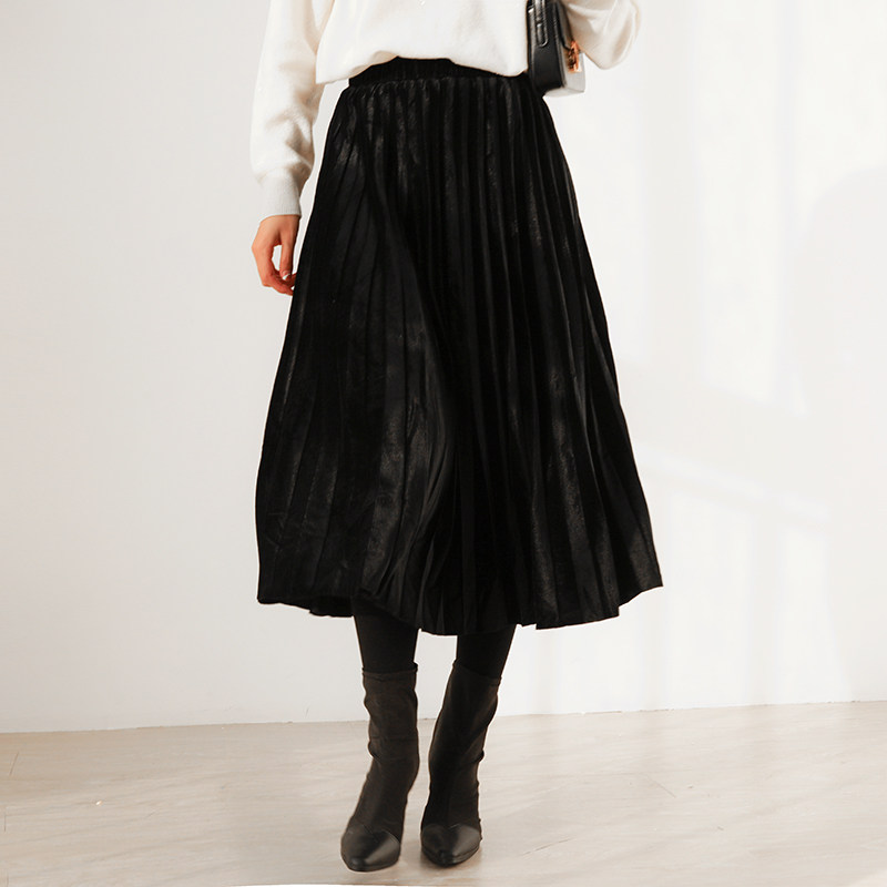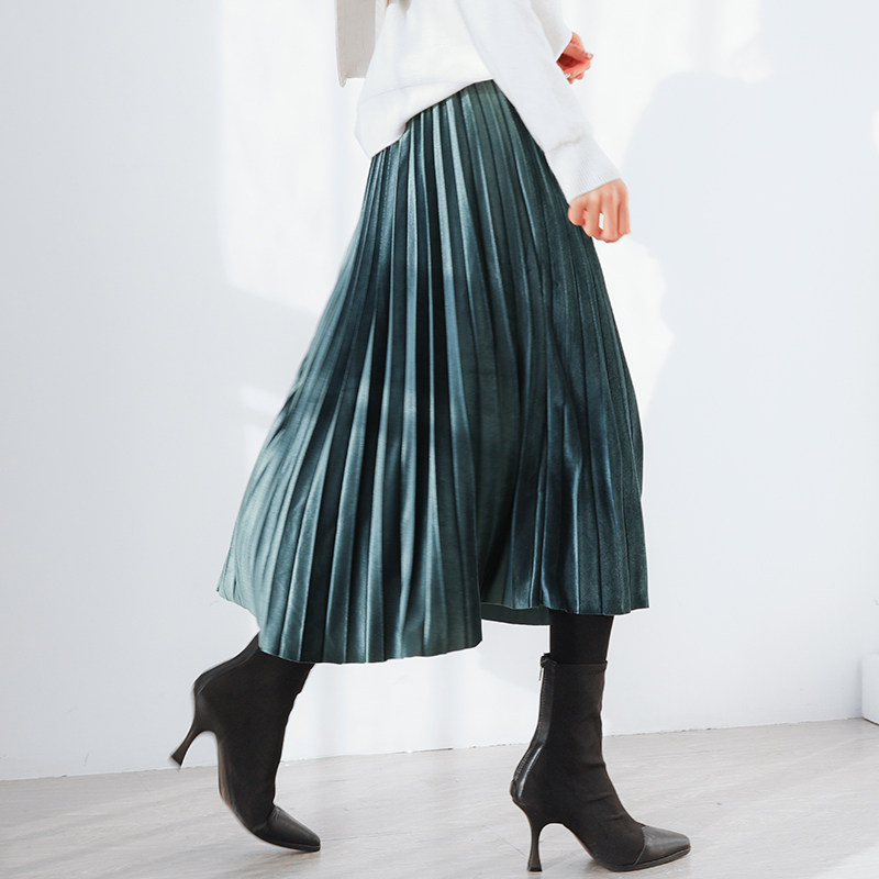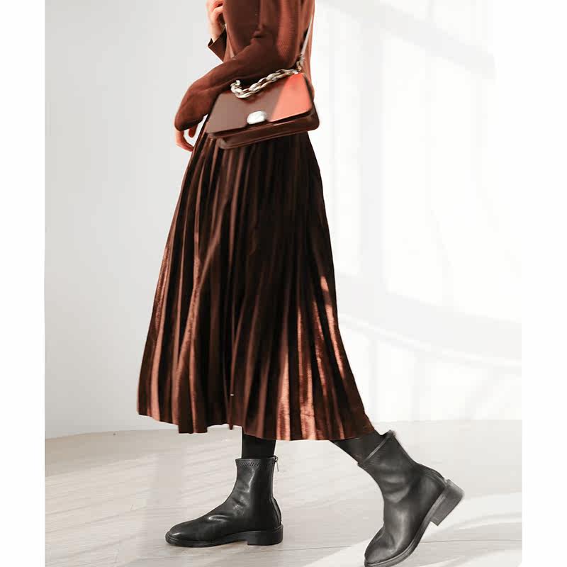 Длинная цветная бархатная весенняя юбка в складку, длинная юбка, длина миди, длина макси, А-силуэт