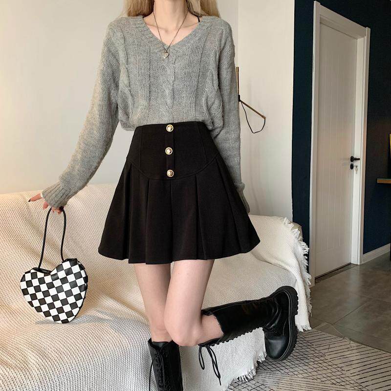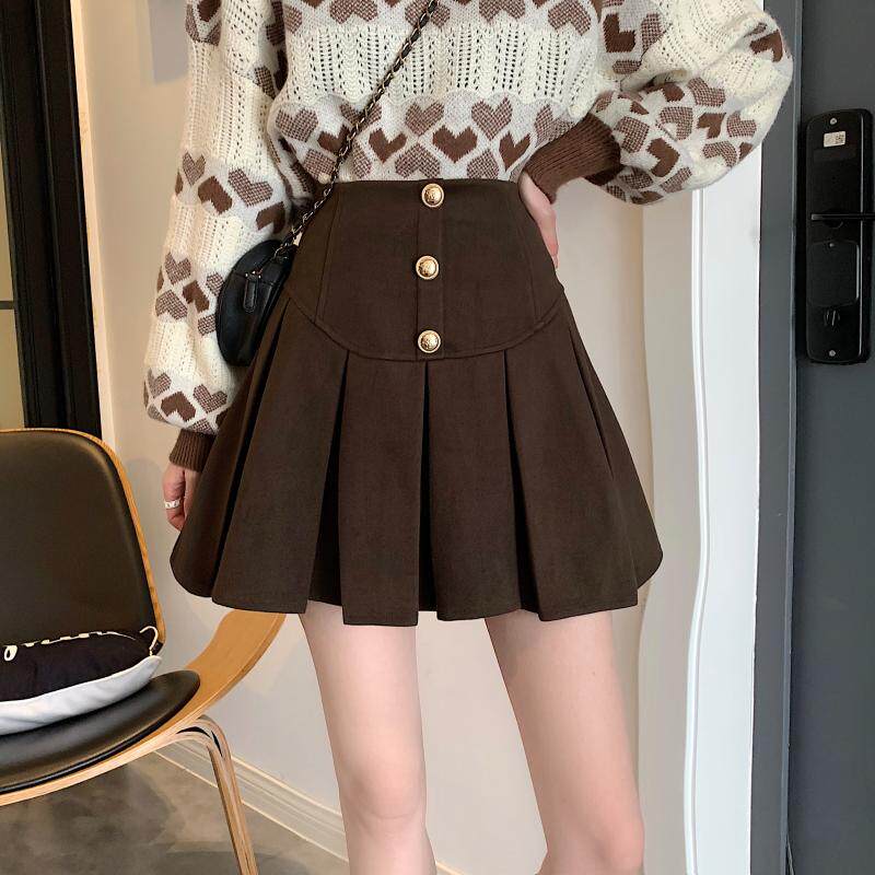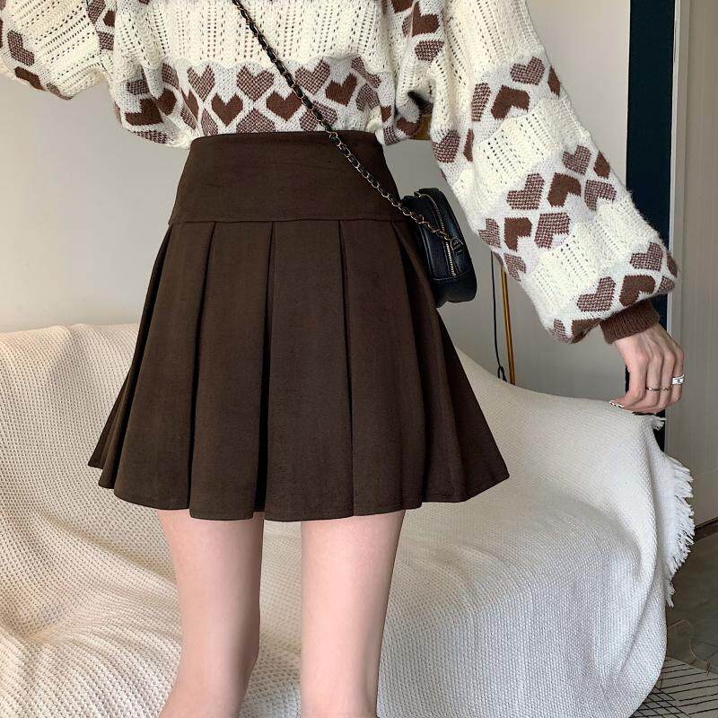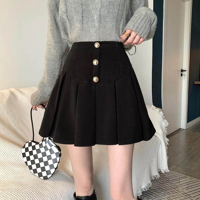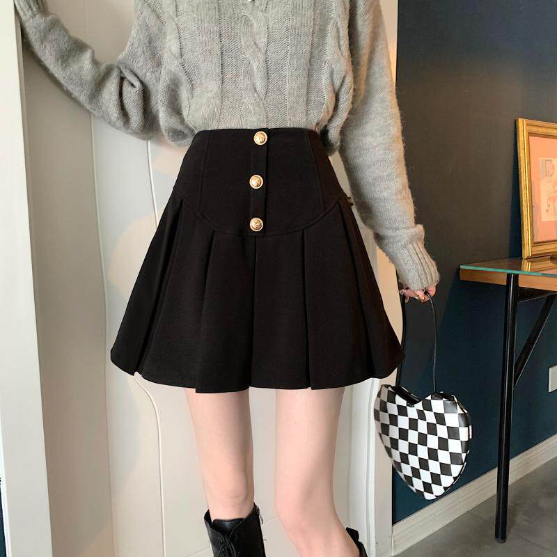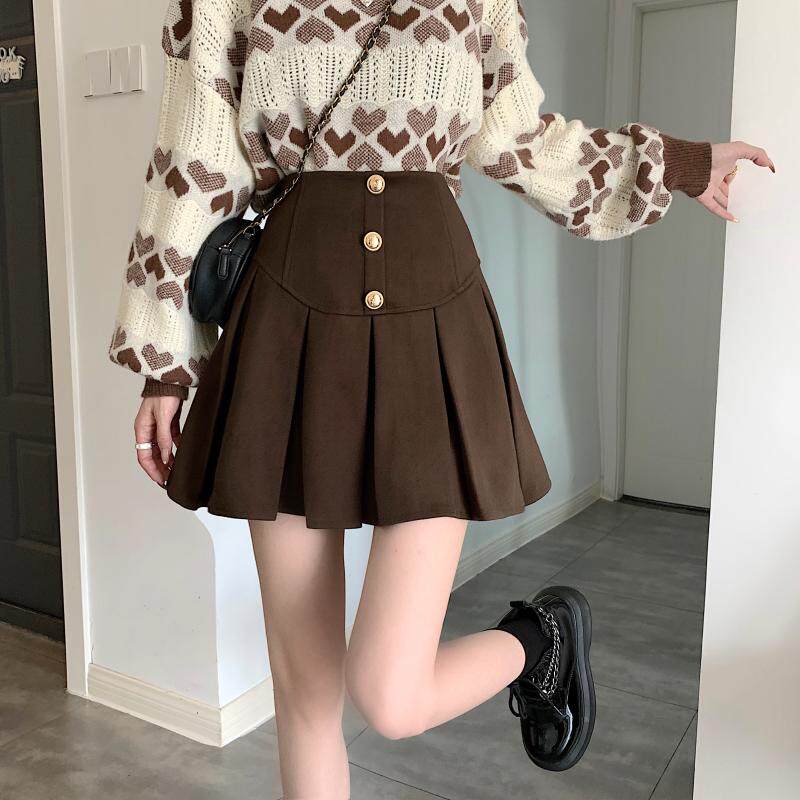 Приталенная ретро шерстяная демисезонная юбка в складку, большой размер, коллекция 2023, высокая талия, в американском стиле, А-силуэт