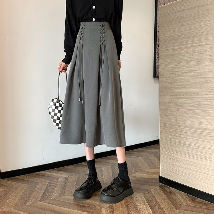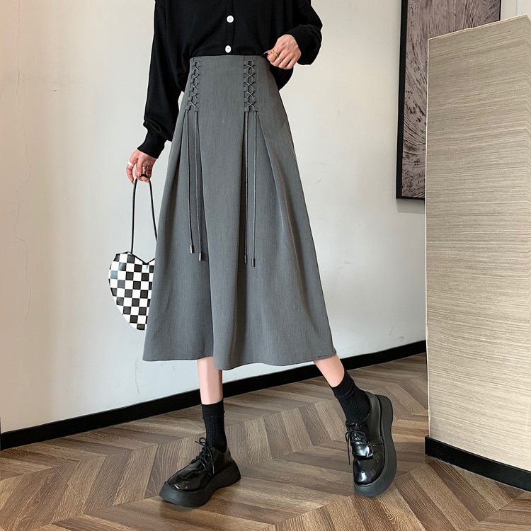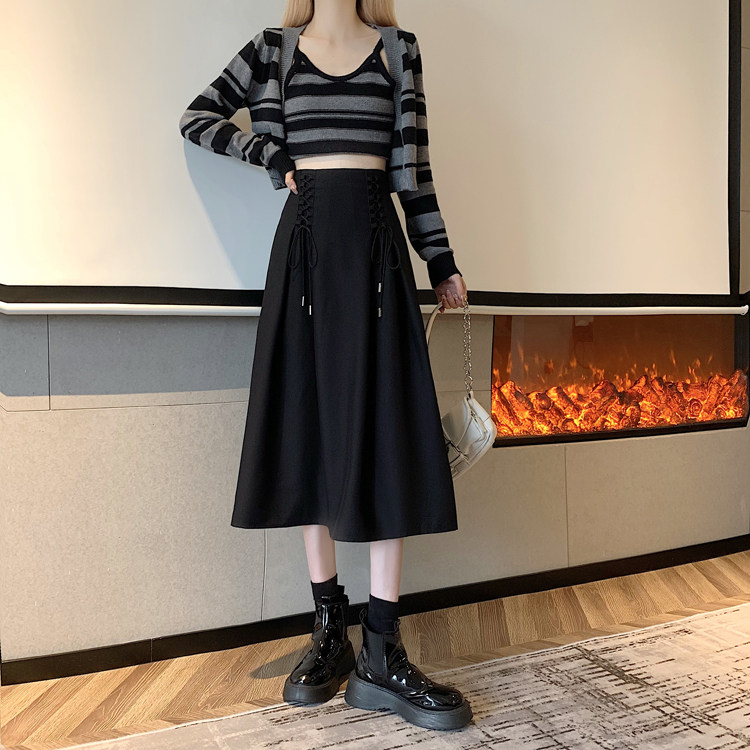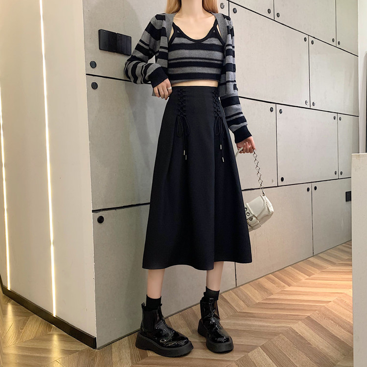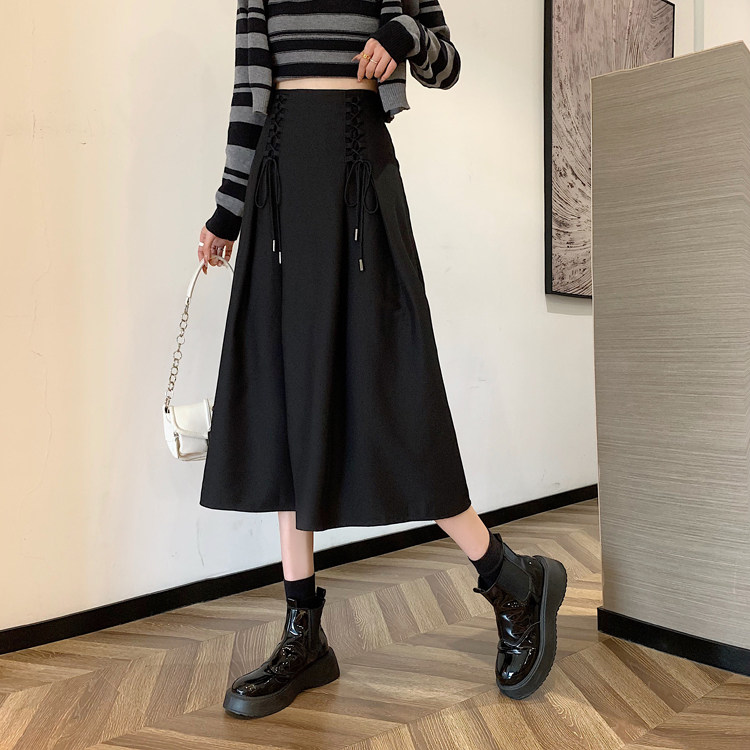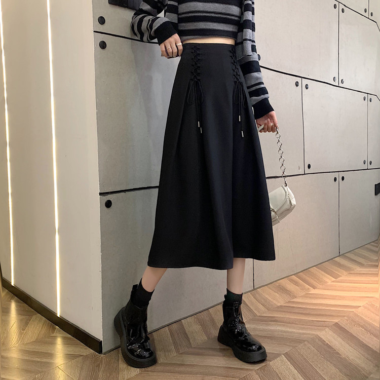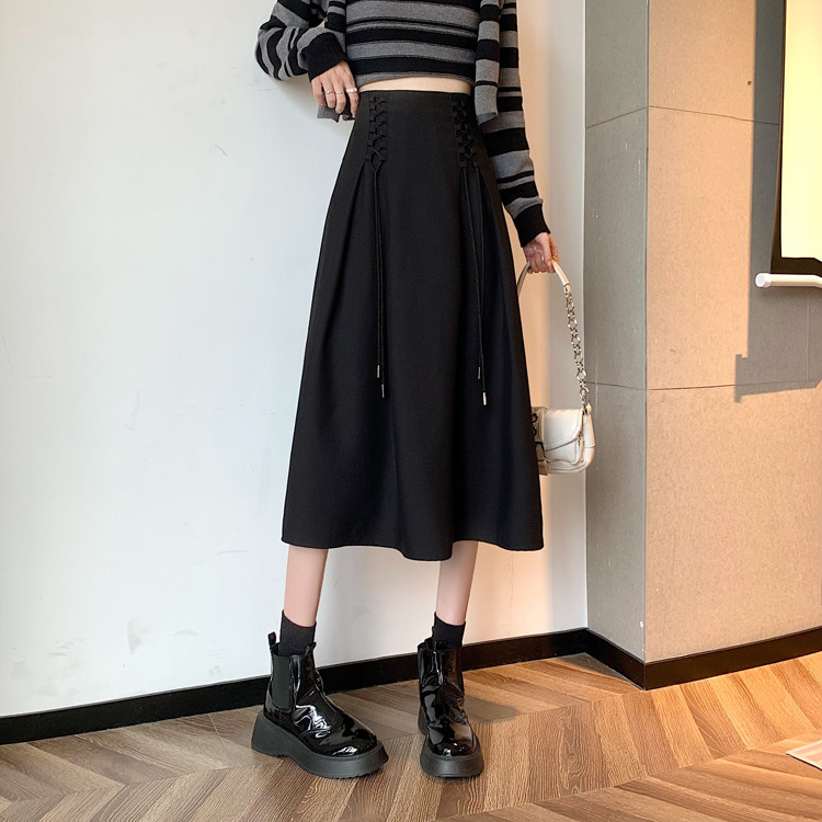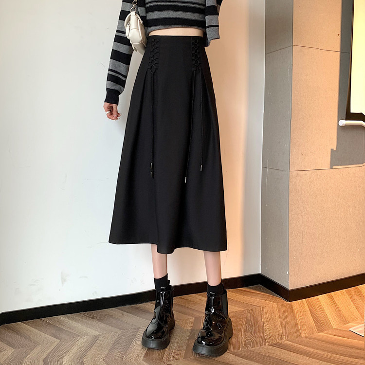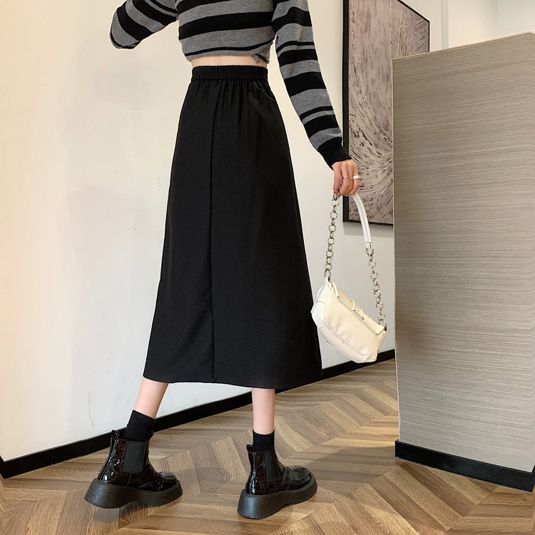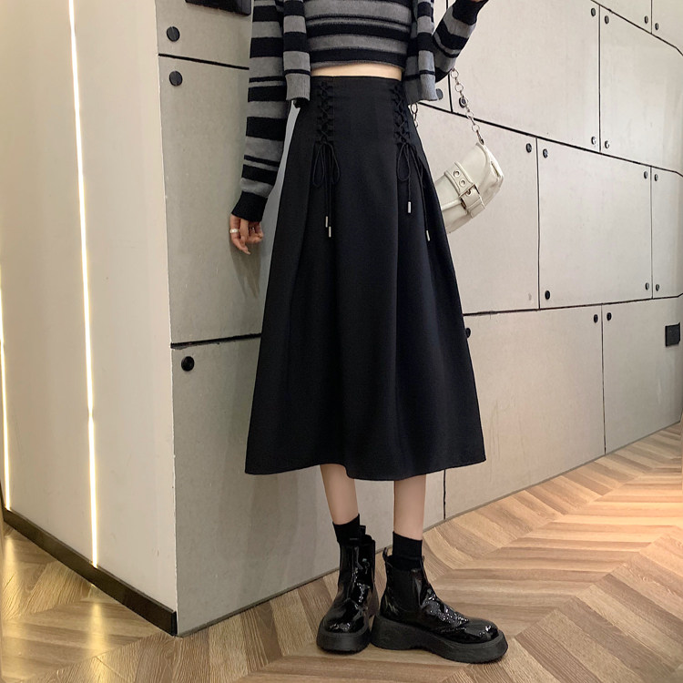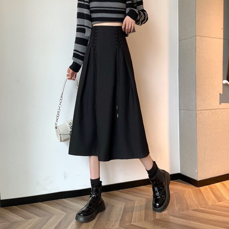 Приталенная черная весенняя длинная длинная юбка, средней длины, А-силуэт, высокая талия, длина макси