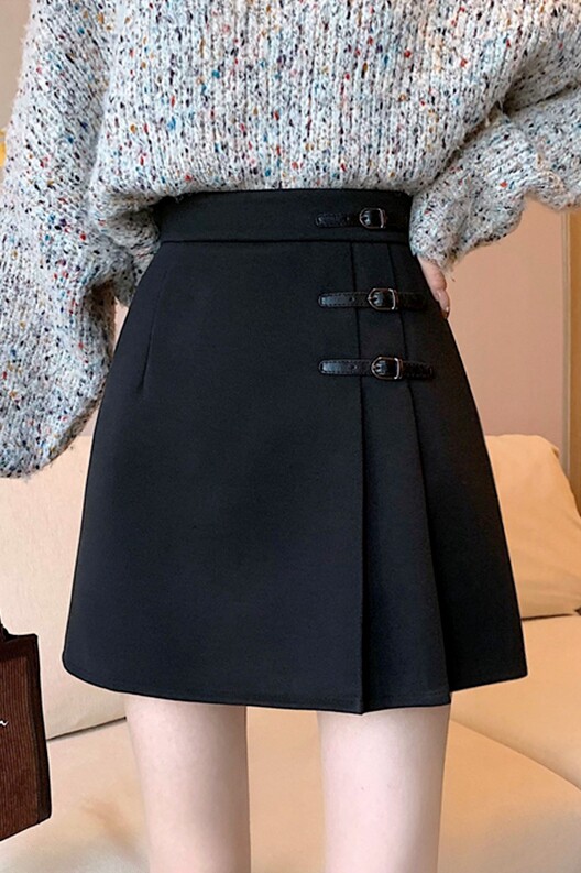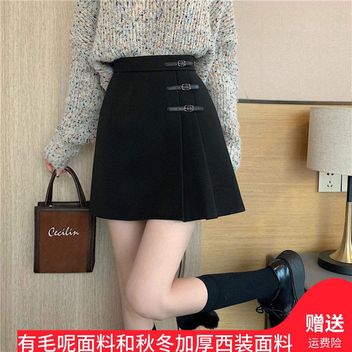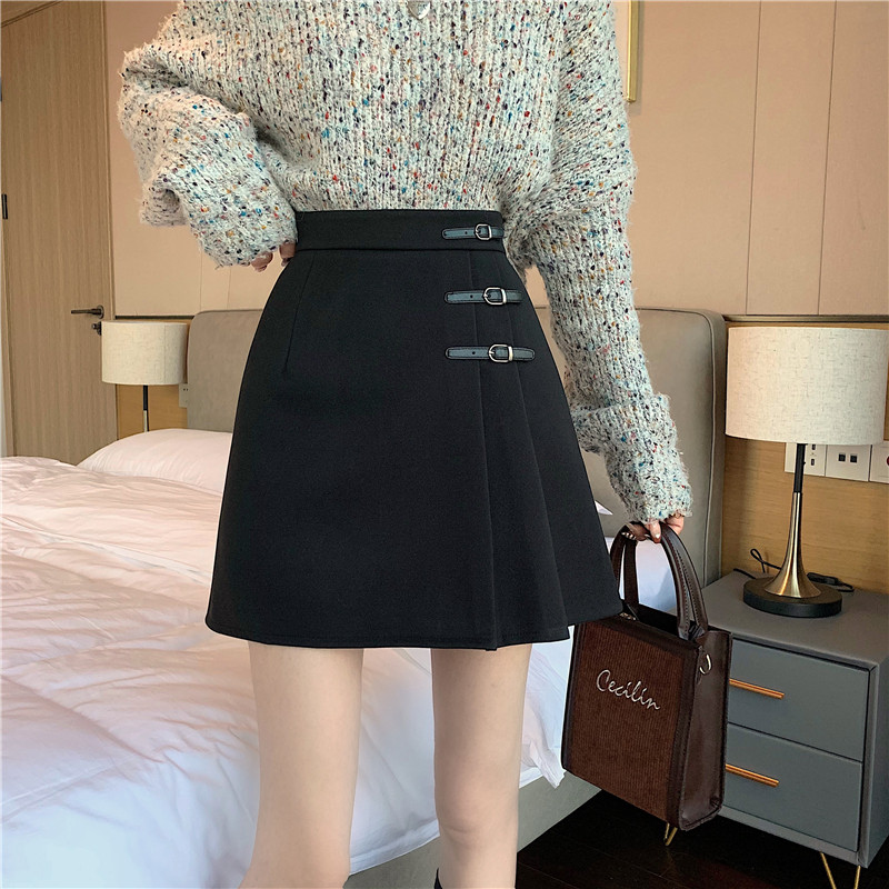 Шерстяная демисезонная юбка, мини-юбка, поясная сумка, большой размер, высокая талия, А-силуэт