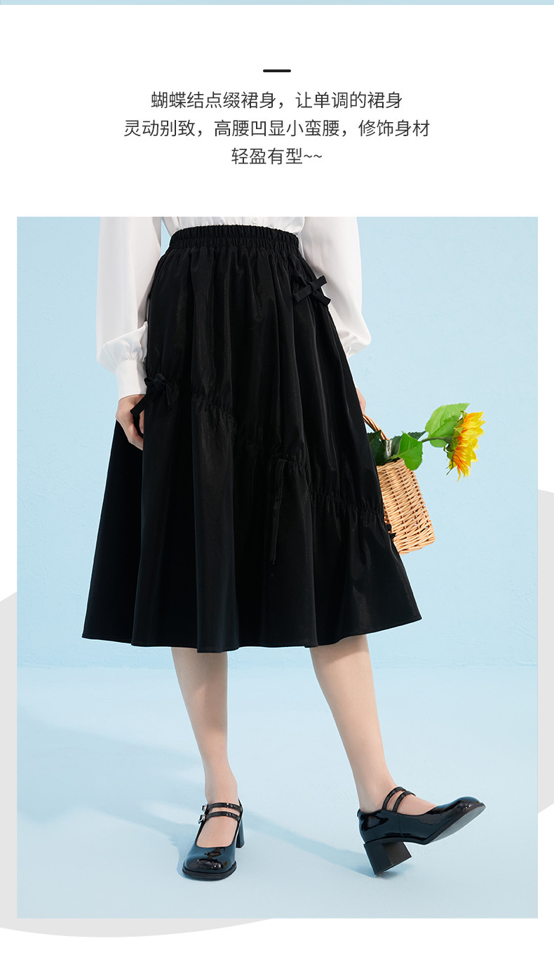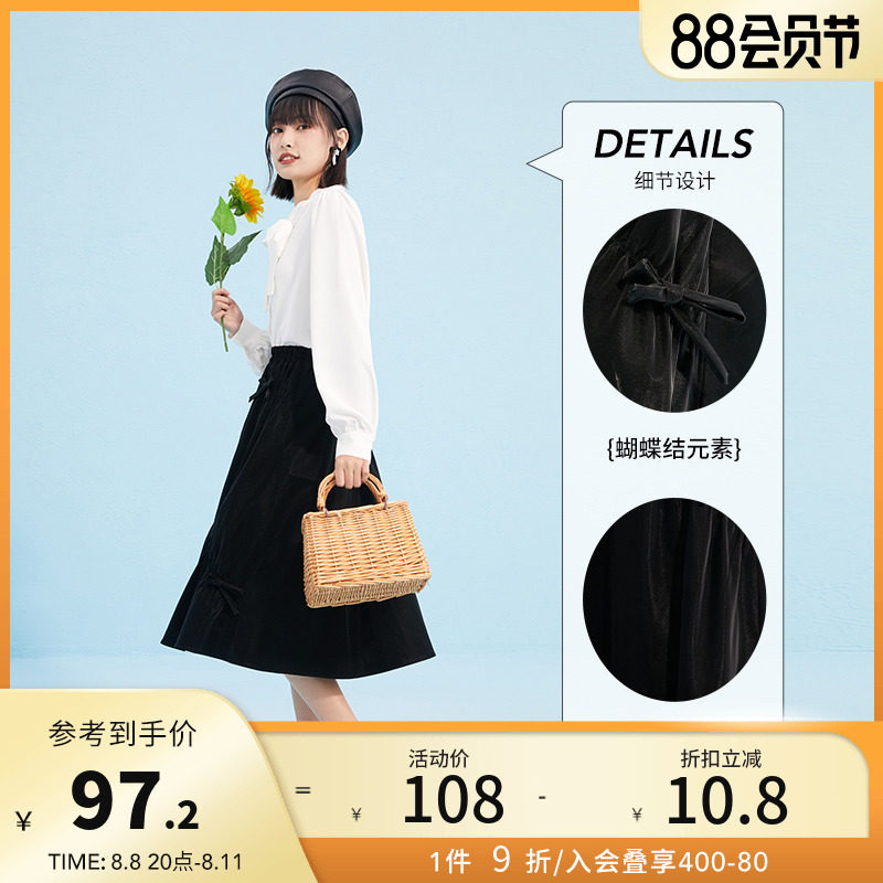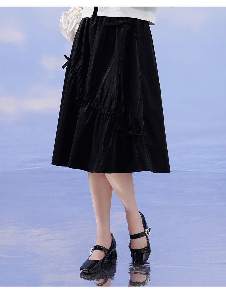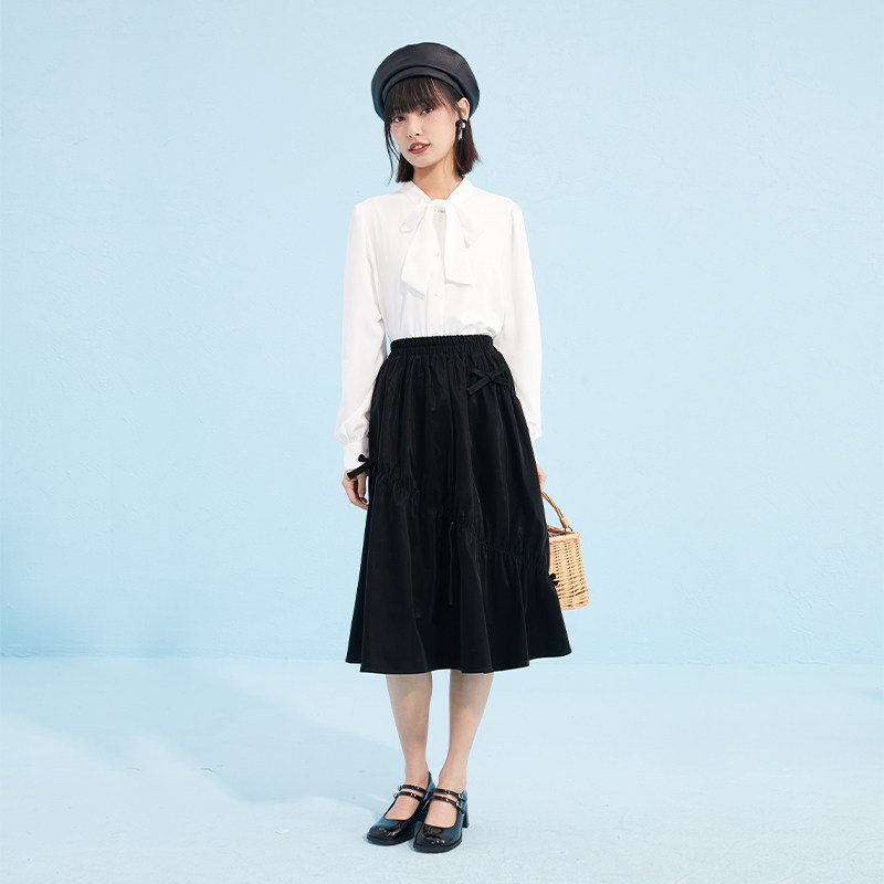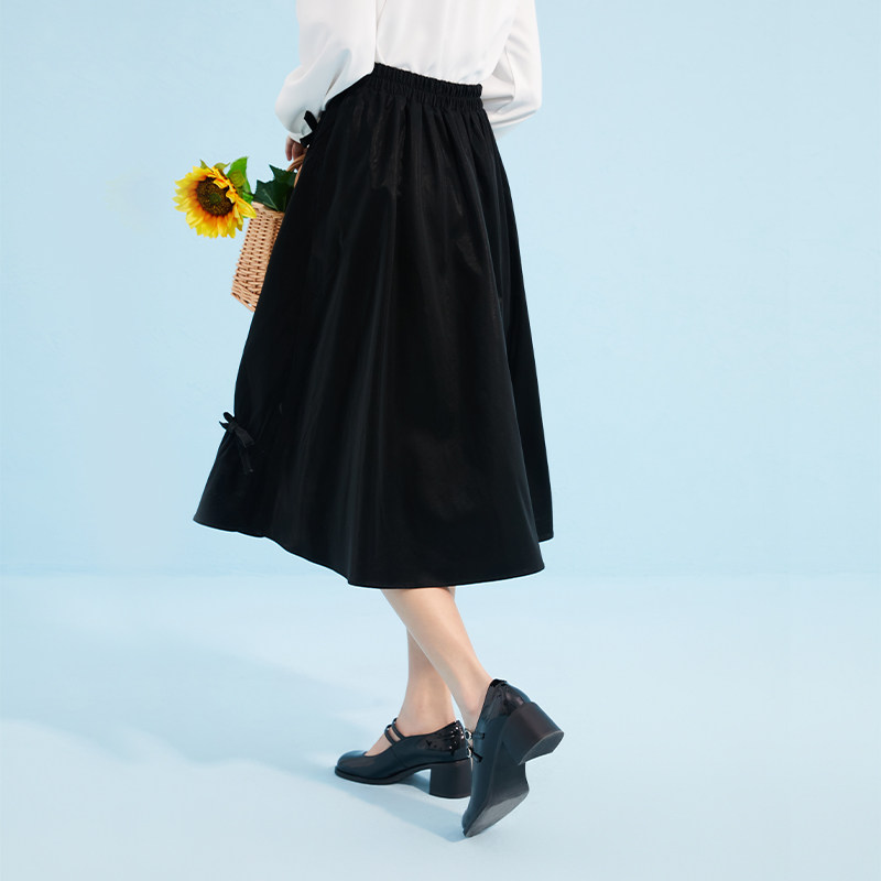 Осенняя черная модная юбка с бантиком, А-силуэт, в западном стиле