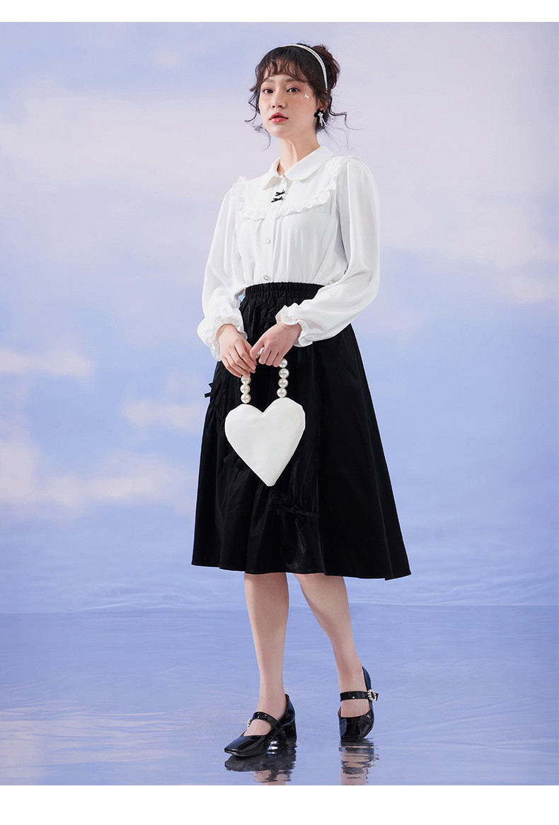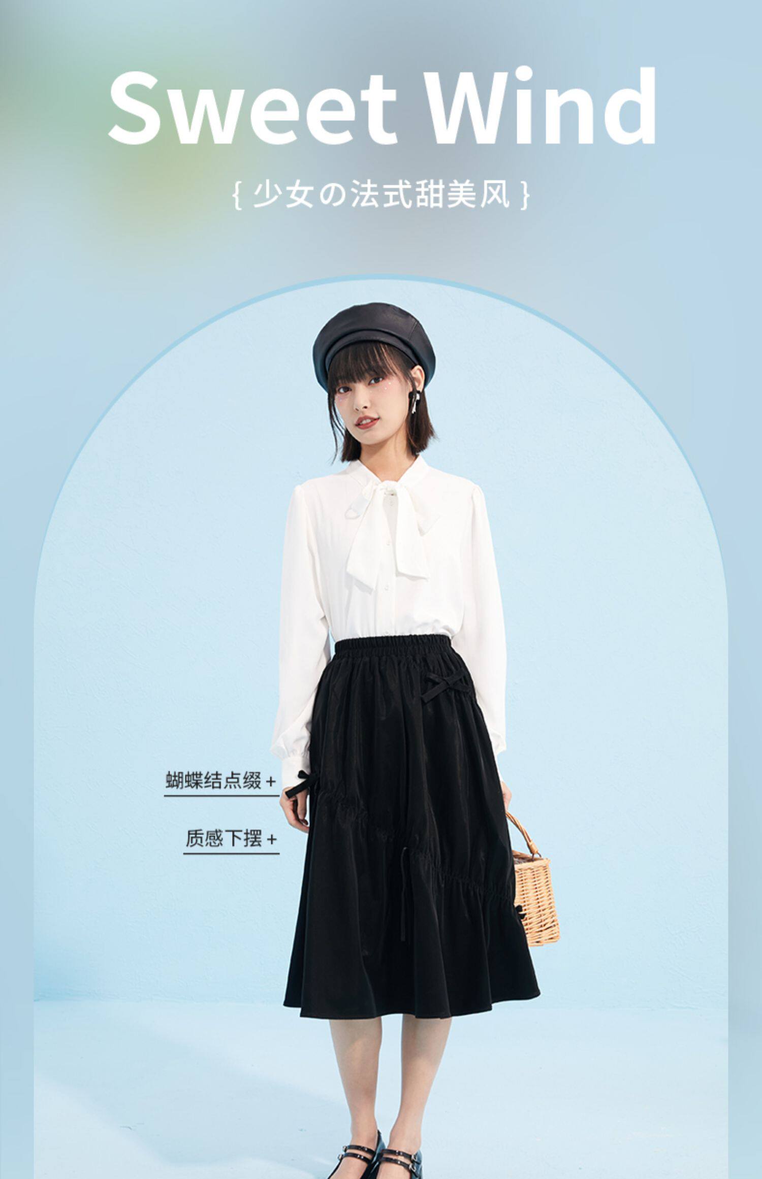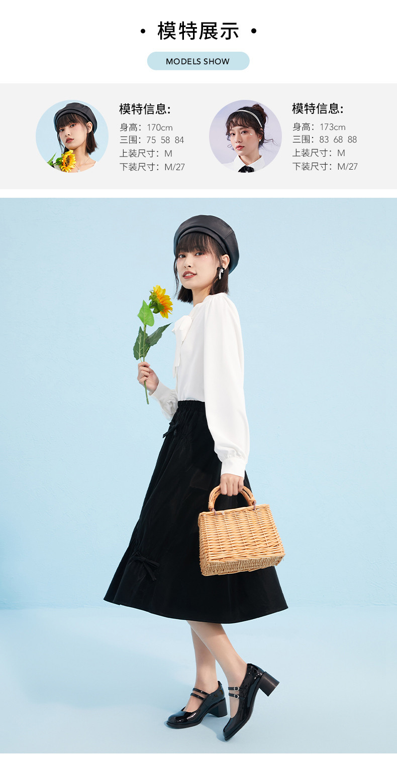 Осенняя черная модная юбка с бантиком, А-силуэт, в западном стиле