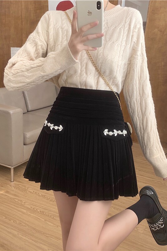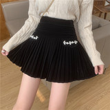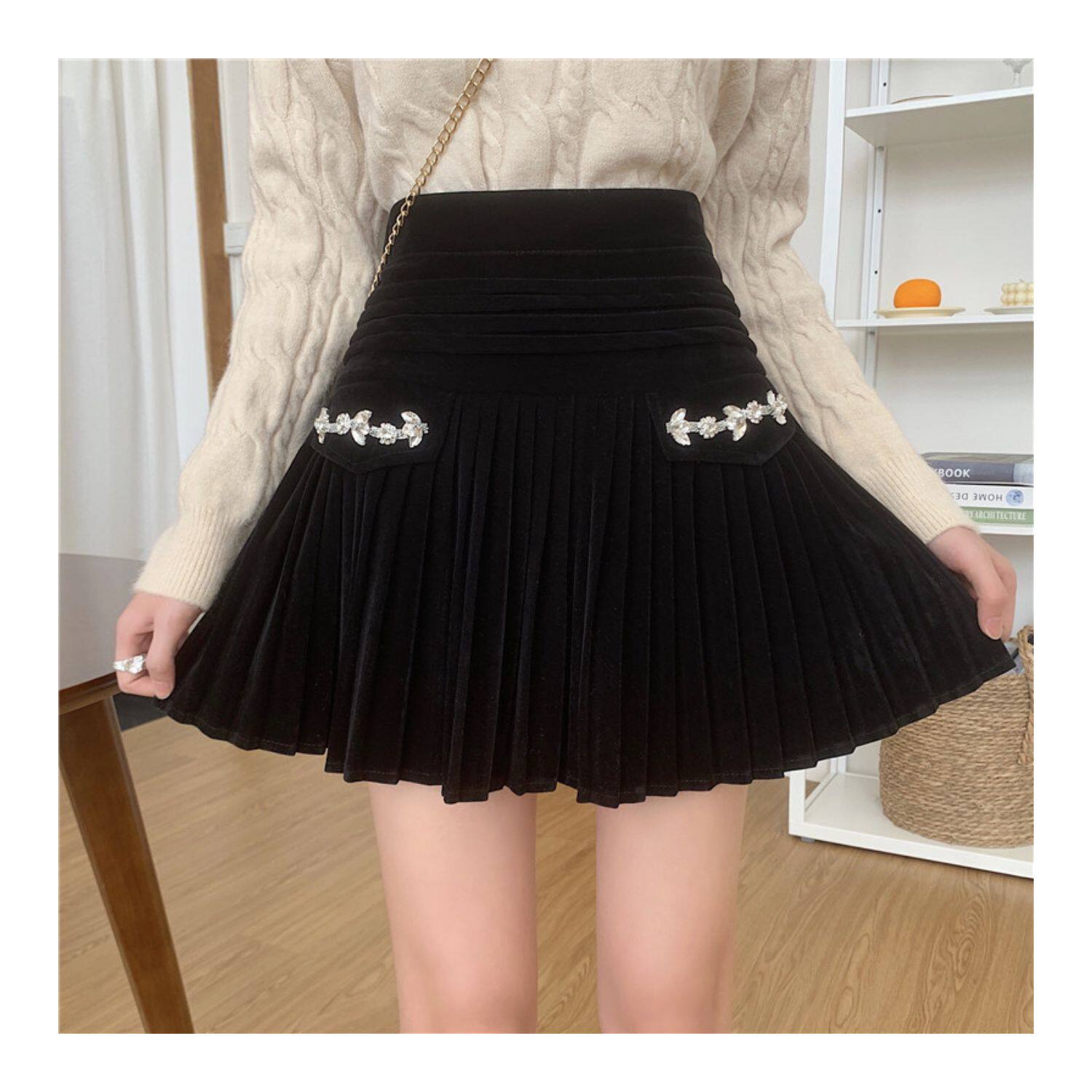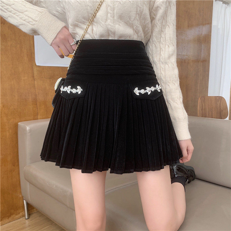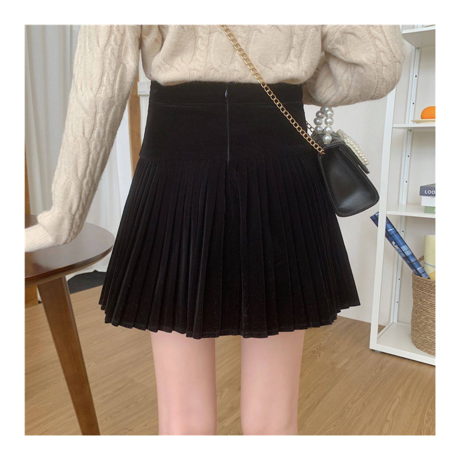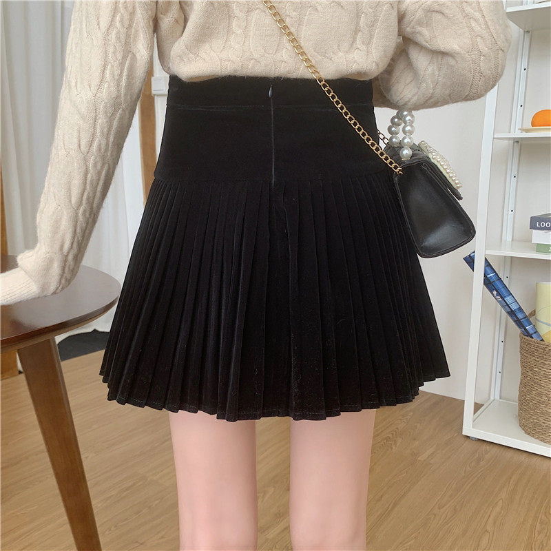 Бархатная демисезонная юбка в складку, черная мини-юбка, большой размер, плиссированная юбка, юбка-пачка, высокая талия, А-силуэт