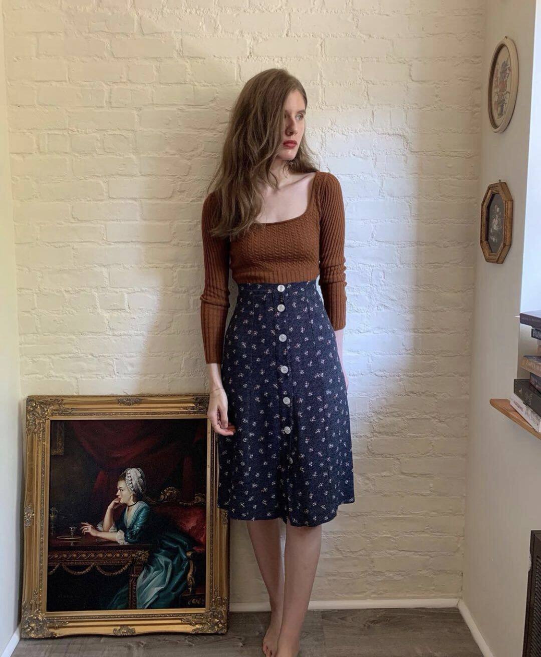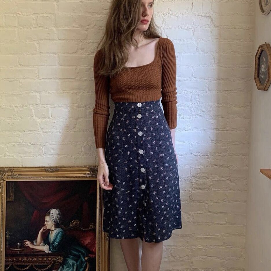 Весенняя ретро юбка с бантиком, французский стиль, цветочный принт, высокая талия, А-силуэт