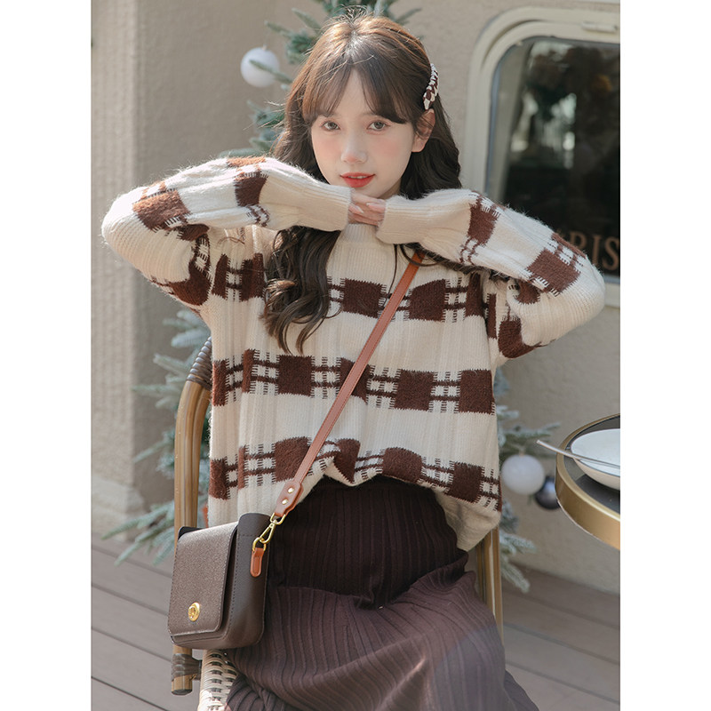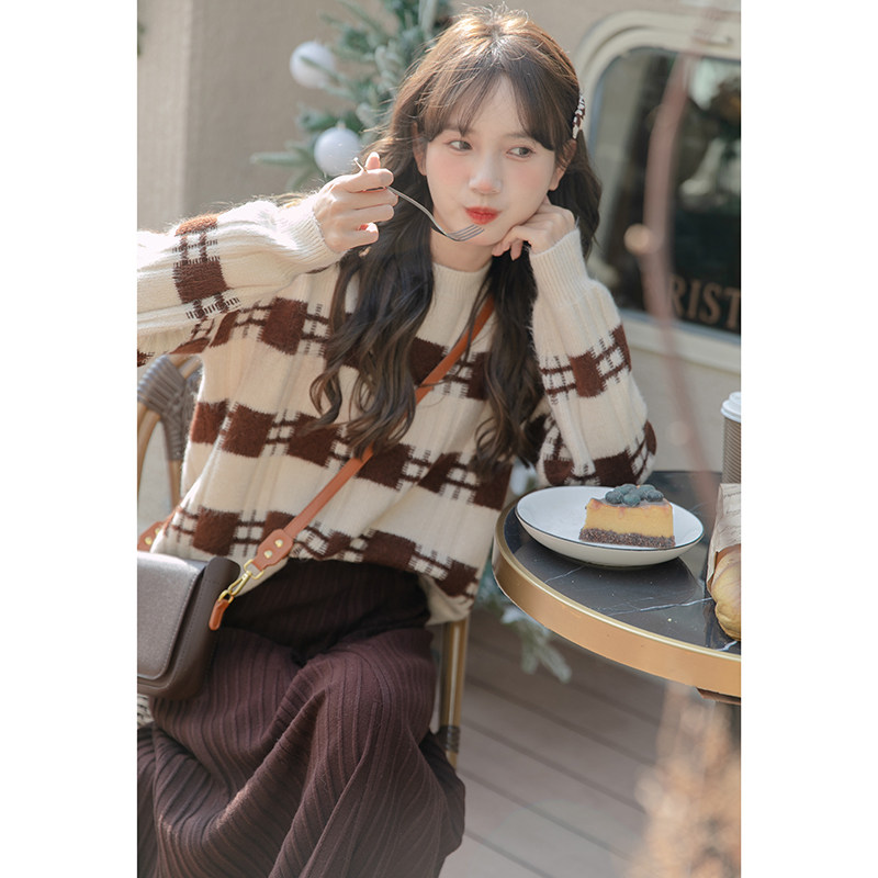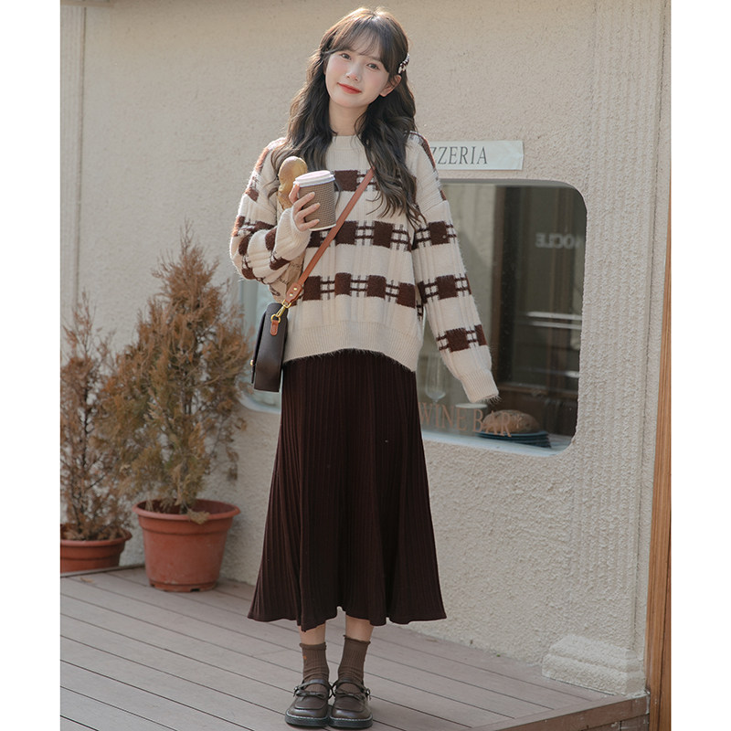 Осенний цветной трикотажный свитер, термобелье, длинная юбка, высокая талия, коллекция 2022, подходит для подростков