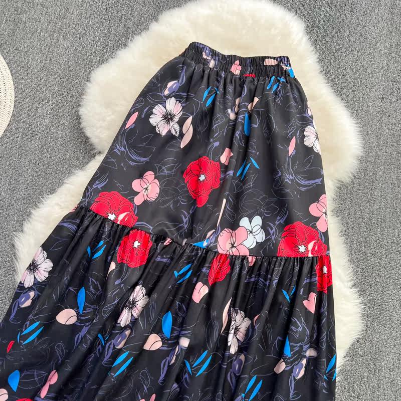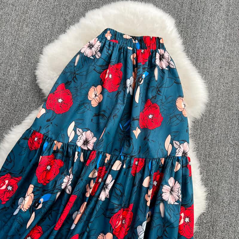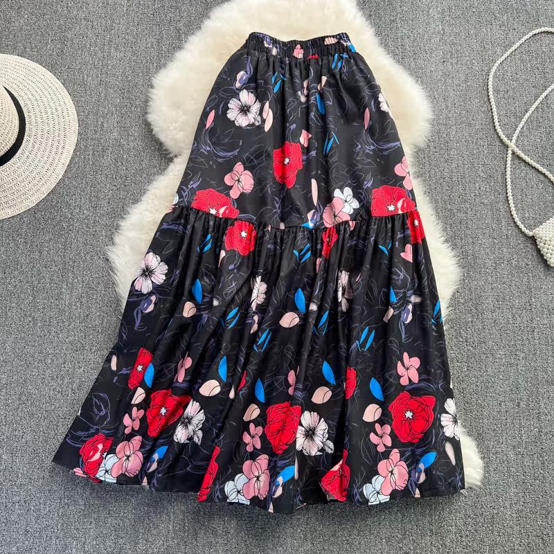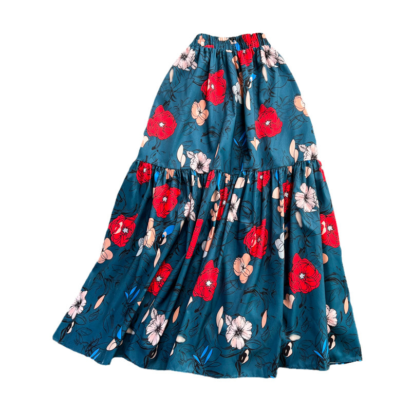 Ретро приталенная длинная юбка, эластичная талия, А-силуэт, высокая талия, средней длины