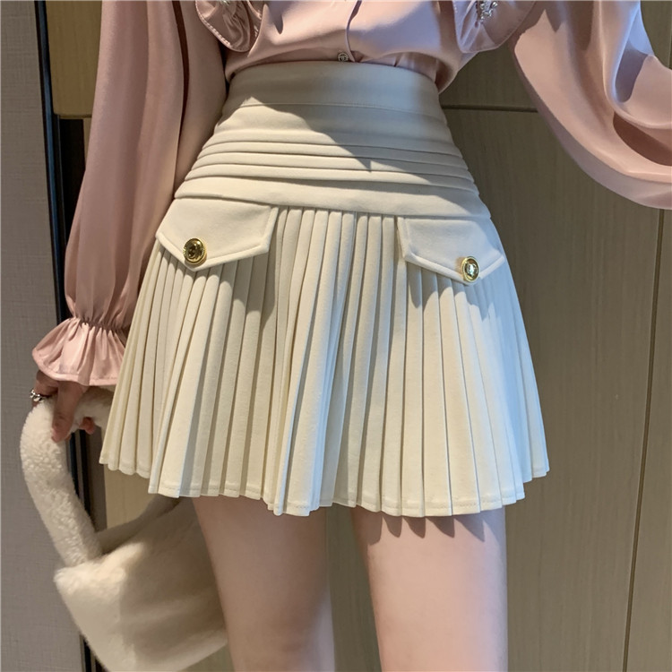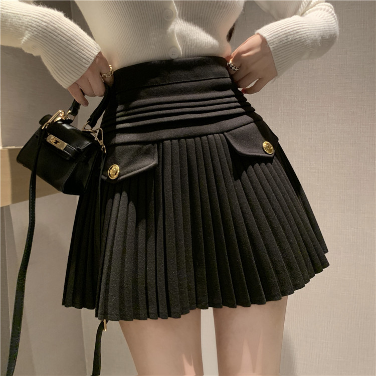 Мини-юбка, демисезонная юбка, шерстяные черные штаны, высокая талия, по фигуре, подходит для подростков