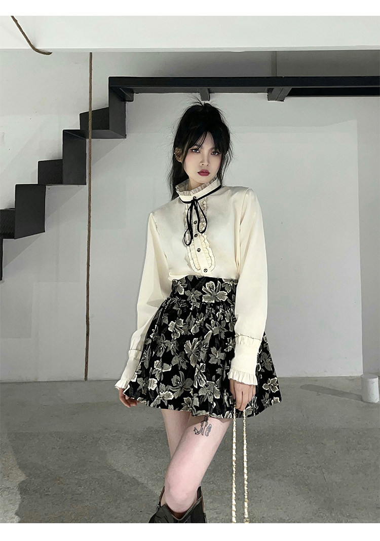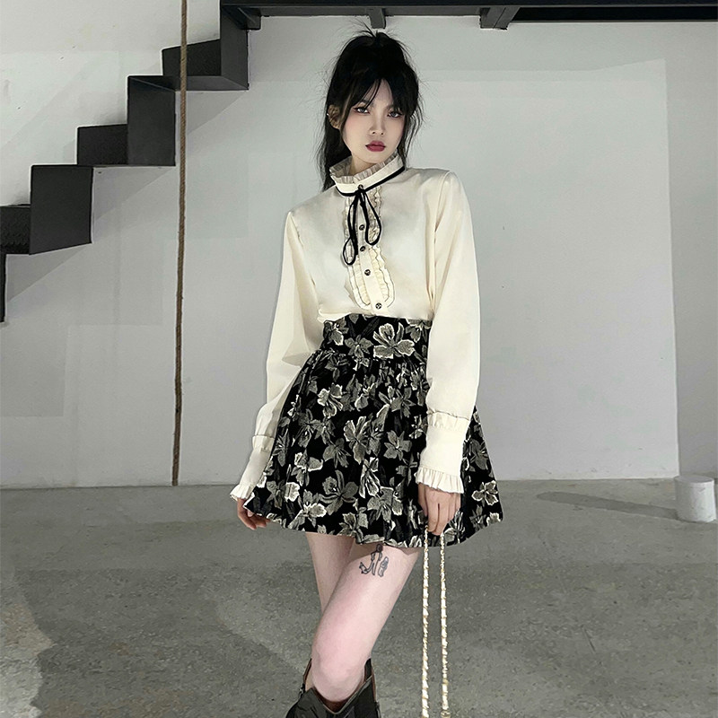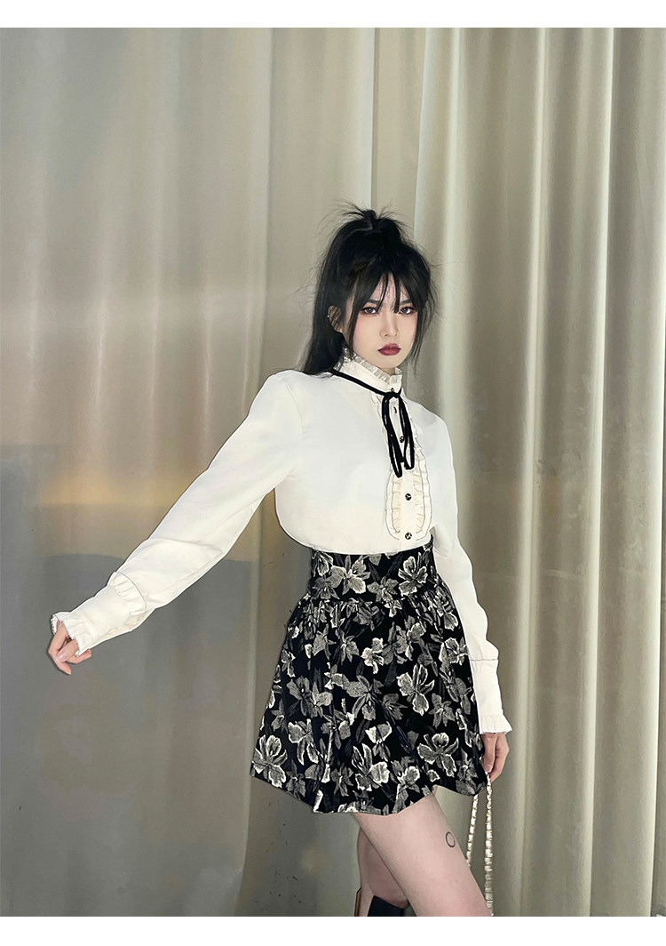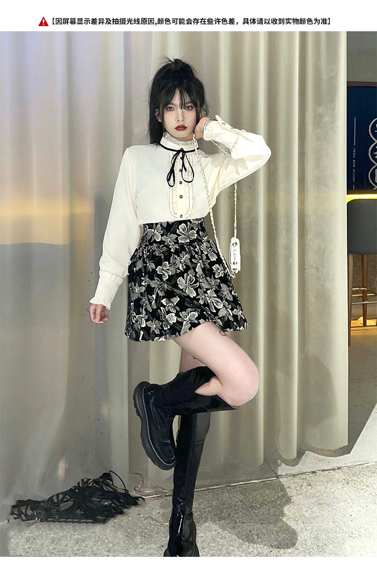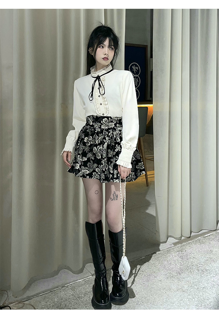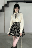 Милый комплект, юбка с бантиком, рубашка, мини-юбка, А-силуэт