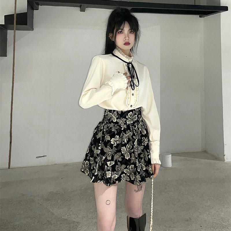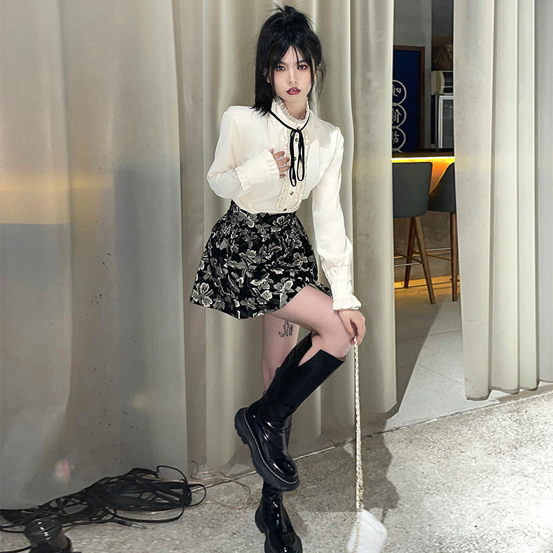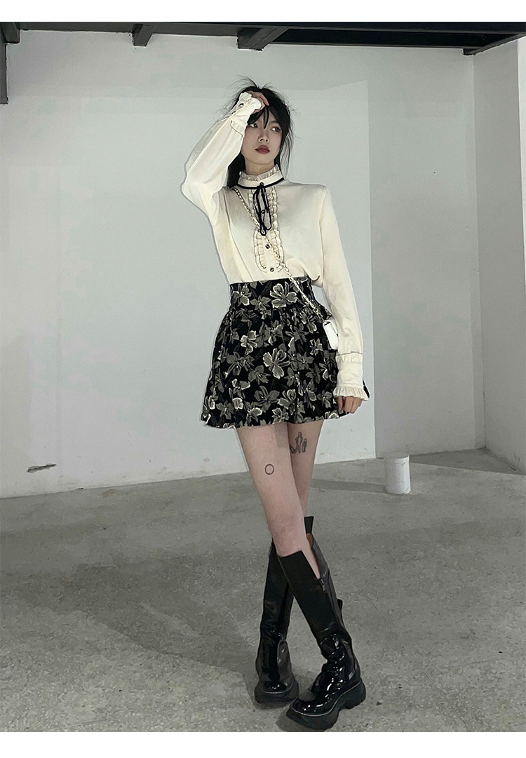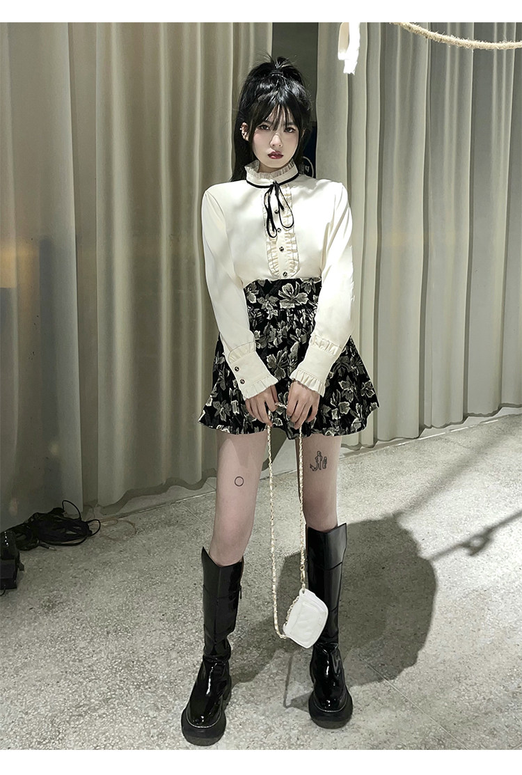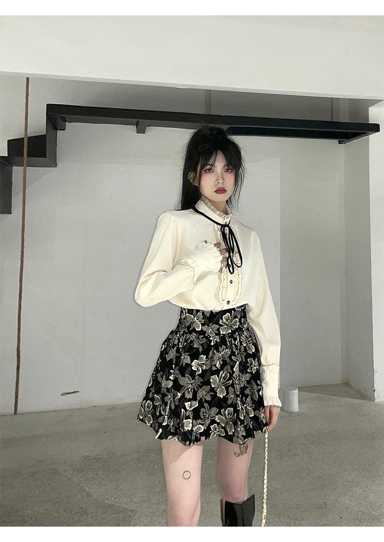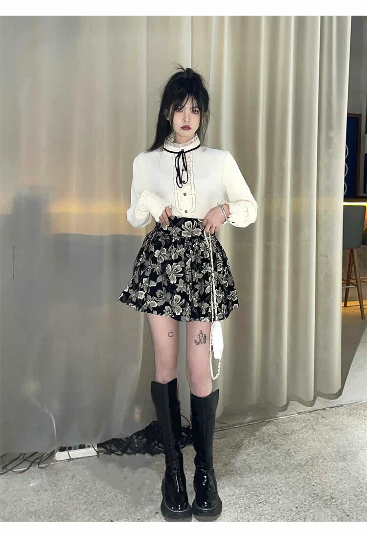 Милый комплект, юбка с бантиком, рубашка, мини-юбка, А-силуэт