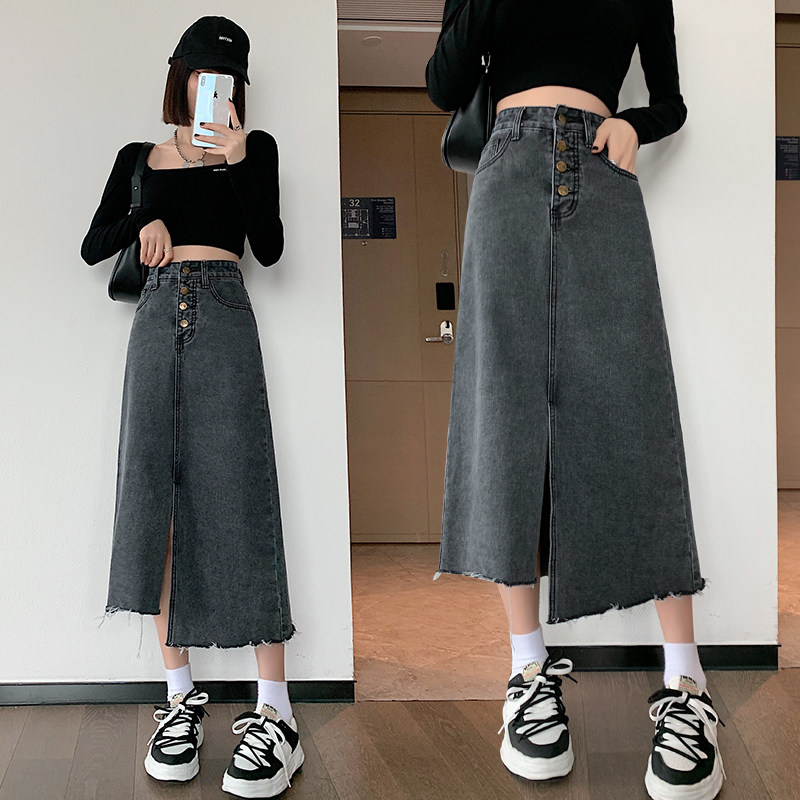 Осенняя длинная дизайнерская джинсовая юбка, большой размер, высокая талия, тренд сезона, А-силуэт