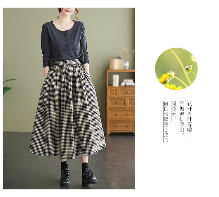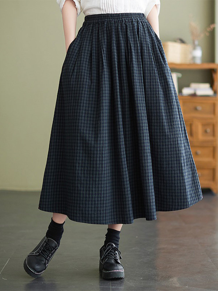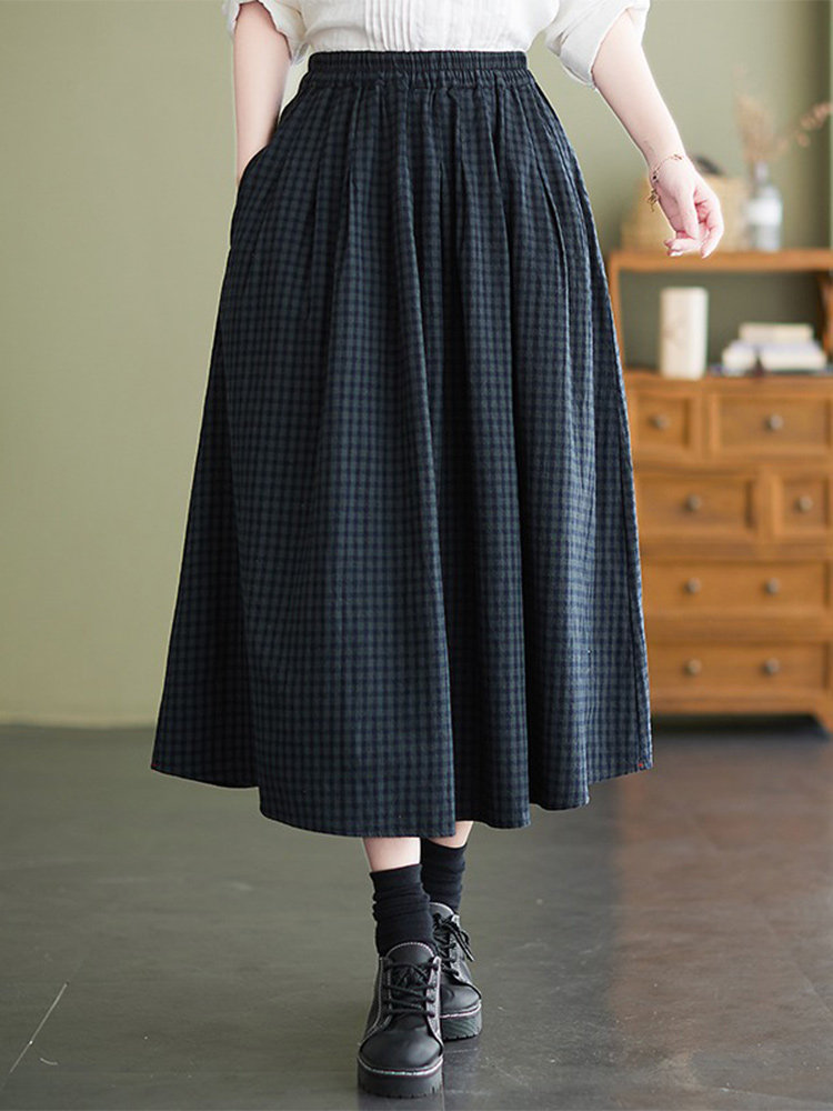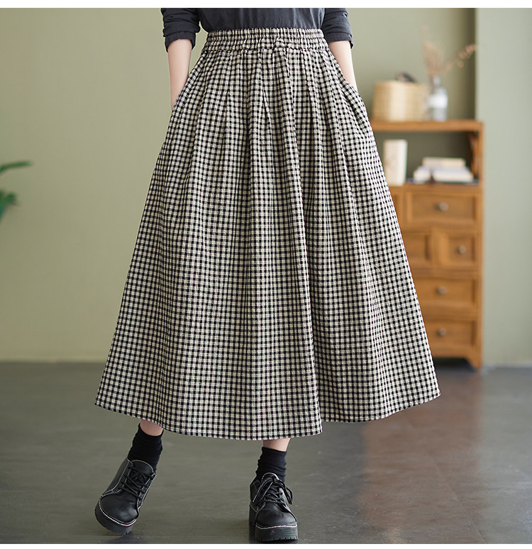 Ретро летняя длинная юбка, из хлопка и льна, оверсайз, высокая талия, средней длины, А-силуэт