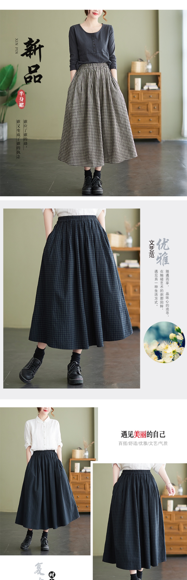 Приталенная длинная летняя клетчатая ретро длинная юбка, из хлопка и льна, А-силуэт, длина макси