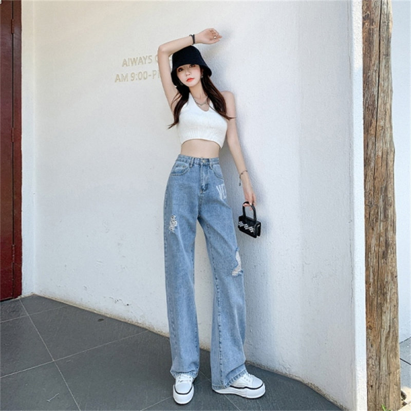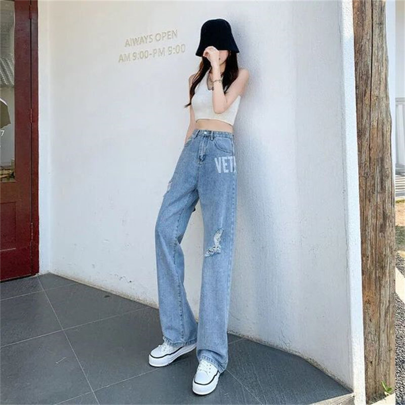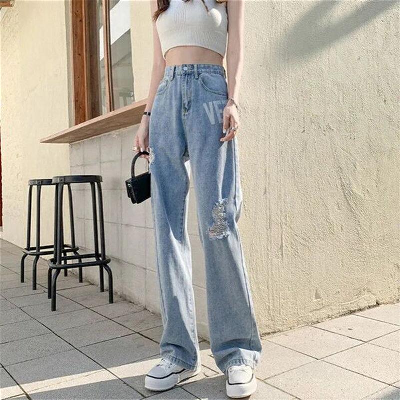 Осенние джинсы, тонкие штаны, коллекция 2023, высокая талия, свободный прямой крой