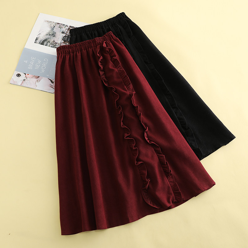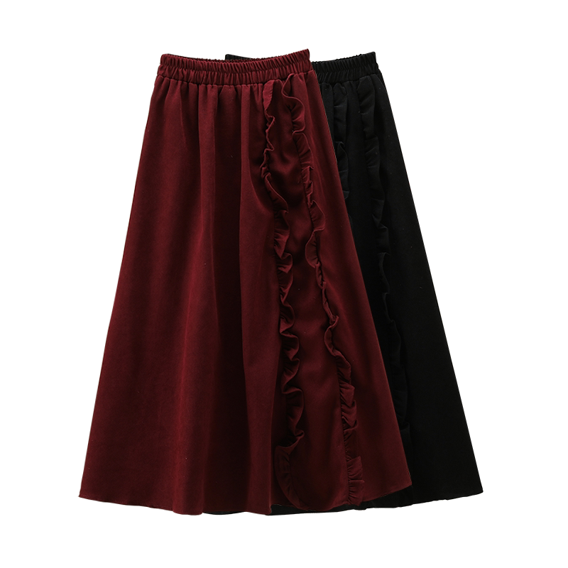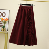 Ретро красная вельветовая весенняя длинная юбка, большой размер, коллекция 2022, А-силуэт