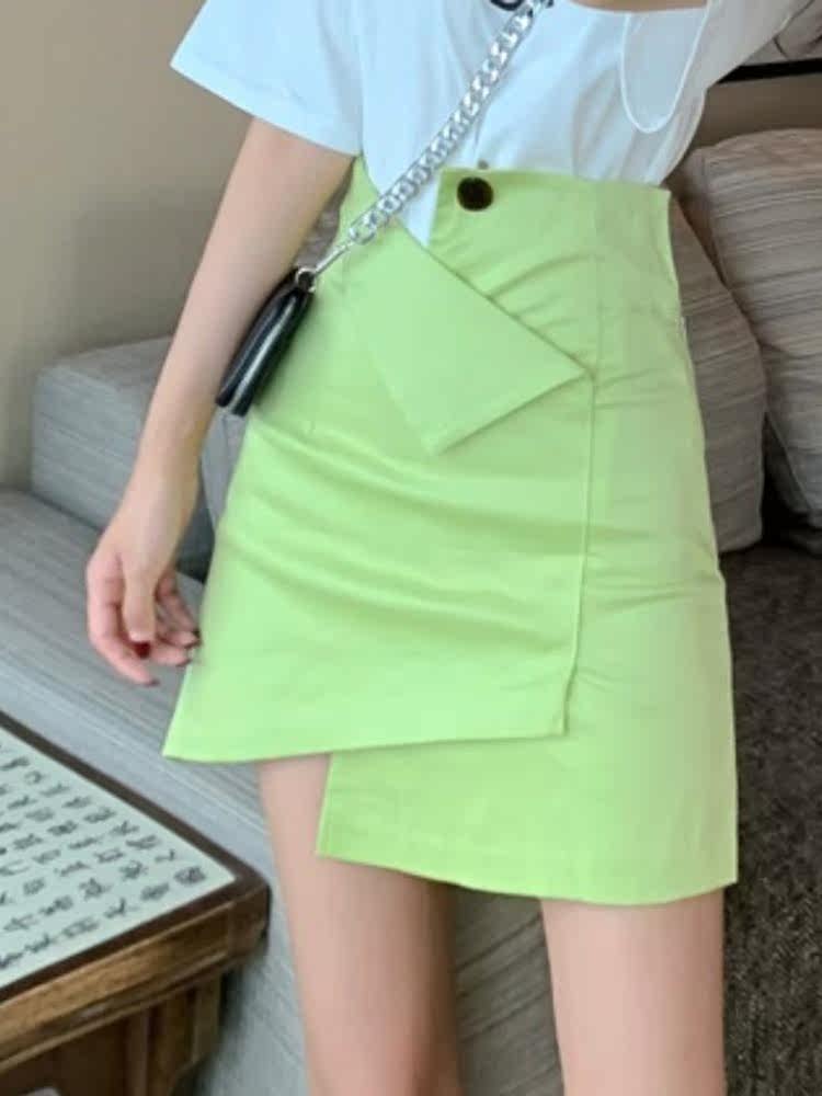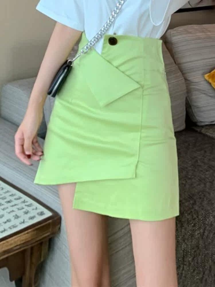 Дизайнерская приталенная осенняя юбка, тренд сезона, высокая талия, в корейском стиле, А-силуэт